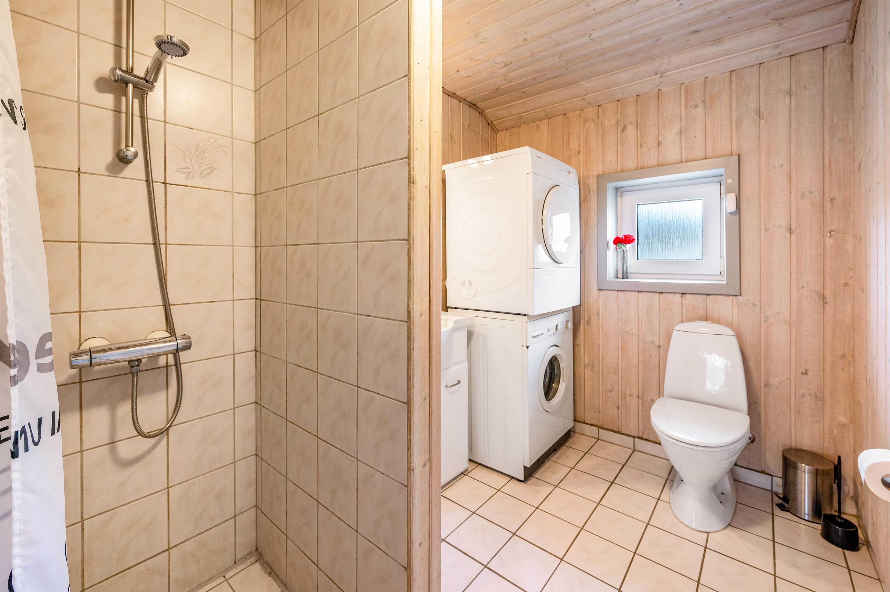 Træder I er par trin op fra stuen, kommer I direkte op til en hyggelig spiseplads, der ligger i direkte forbindelse med køkkenet. Omkring bordet kan I nyde morgenkaffen og rundstykkerne eller spille en omgang kort sammen. Køkkenet er lyst og velindrettet med blandt andet mikroovn, vaskemaskine og køleskab med en fryser på 59 liter.