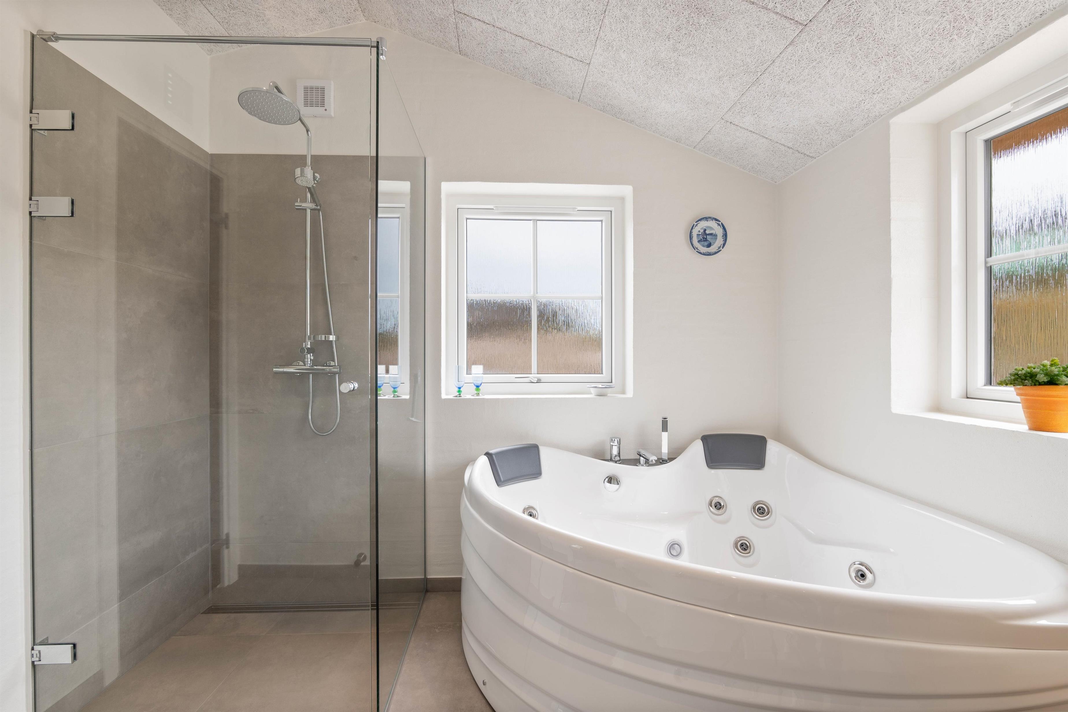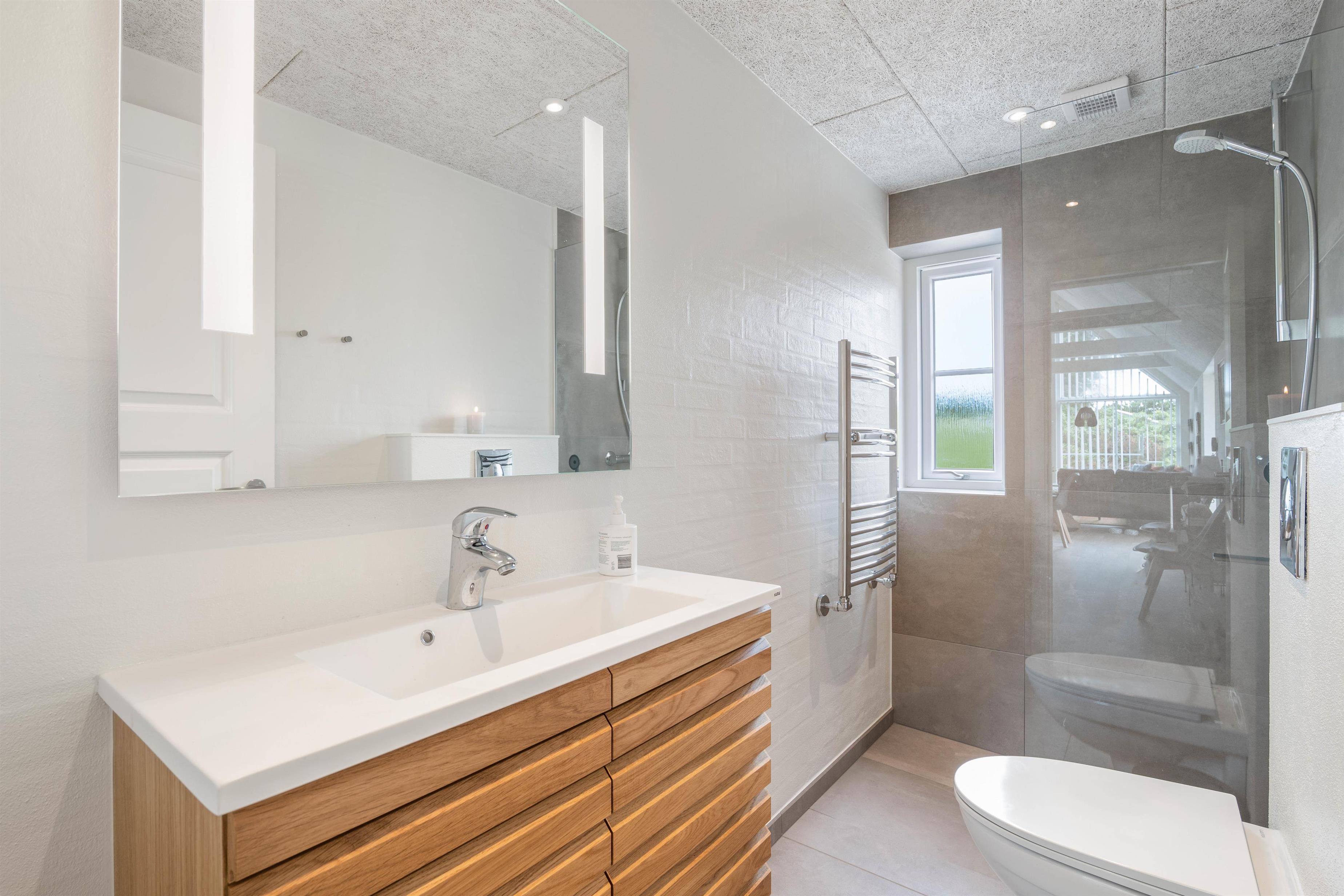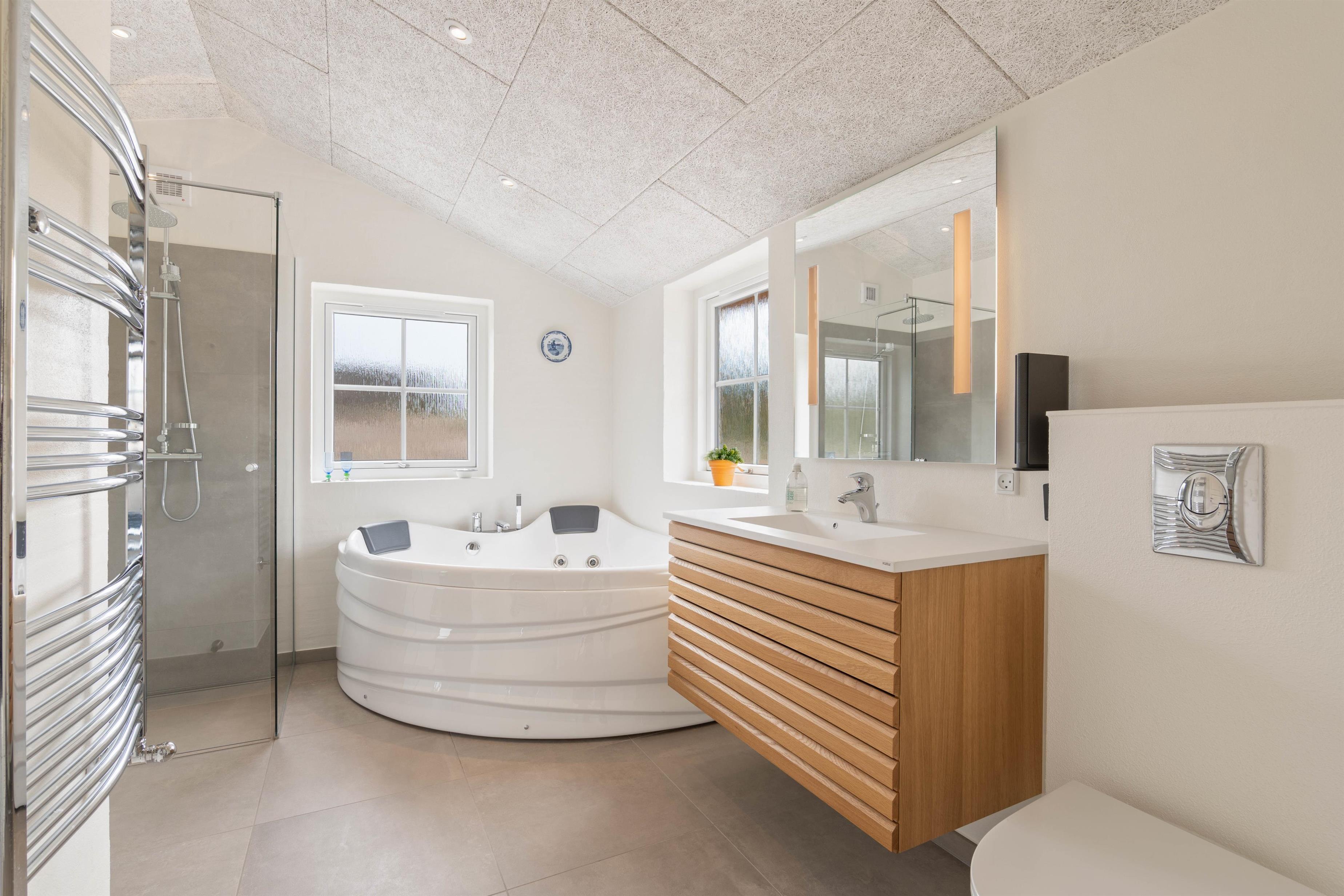 Sommerhuset har desuden hele 2 badeværelser, så hver familie kan have sit eget, hvis I er to familier, som holder ferie sammen. Begge badeværelser er selvfølgelig med gulvvarme. Desuden indbyder sommerhuset til lidt ekstra i form af en spa og sauna, hvor I virkelig kan slappe af og få jeres batterier genopladt. Med andre ord er der virkelig kræset for jer som feriegæster.