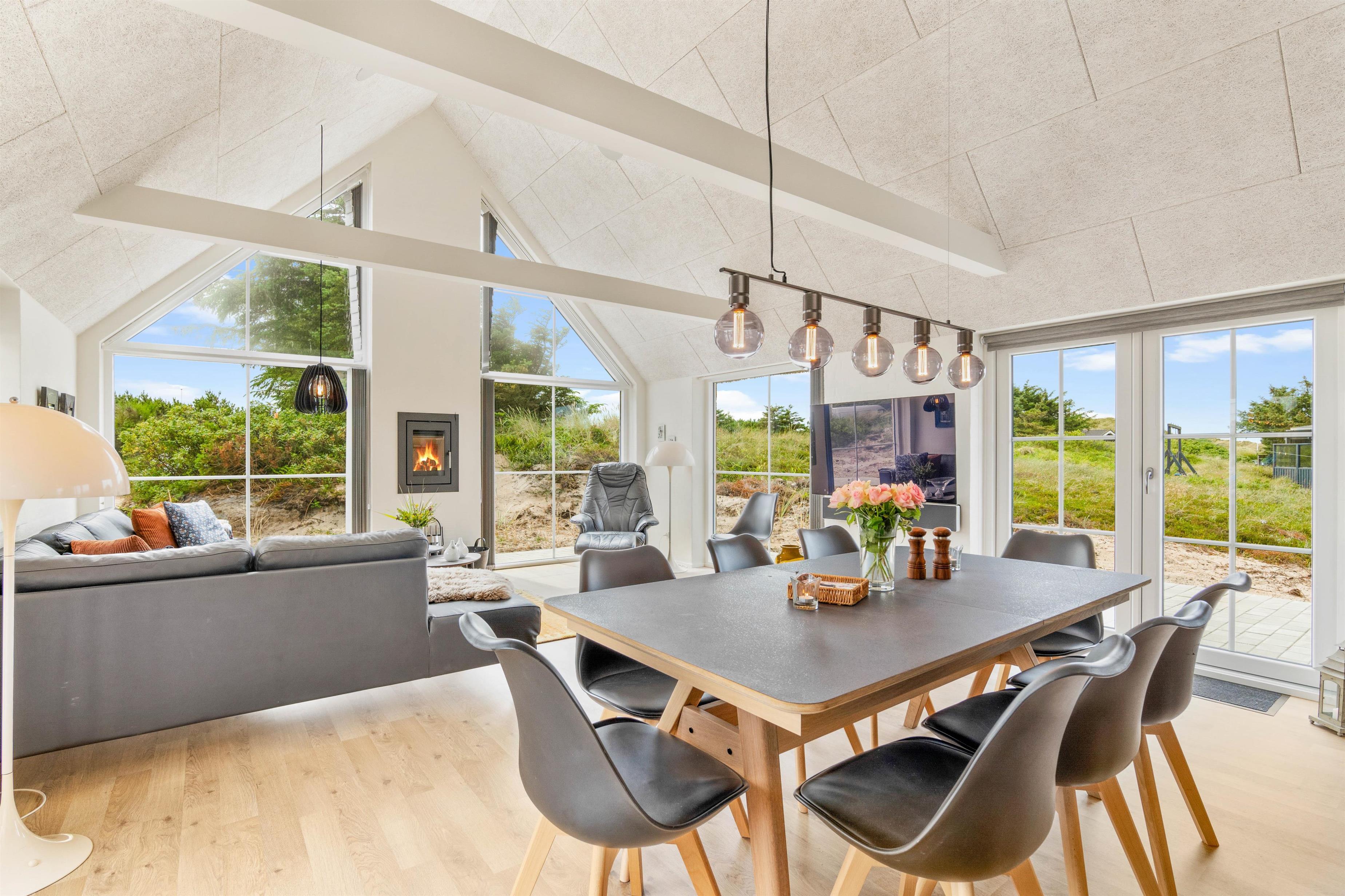 Sommerhuset blev bygget i 2022, og I kan derfor være sikre på, at der er styr på alle detaljerne. Her er det højt til loftet med loft-til-kip, og sammen med det flotte lysindfald skabes der rummelighed og plads til alle 8 familiemedlemmer. Ydermere giver de hvide lofter og vægge, og ikke mindst det store vinduesparti forenden af stuen, lyse omgivelser, hvor I straks vil føle jer hjemme.