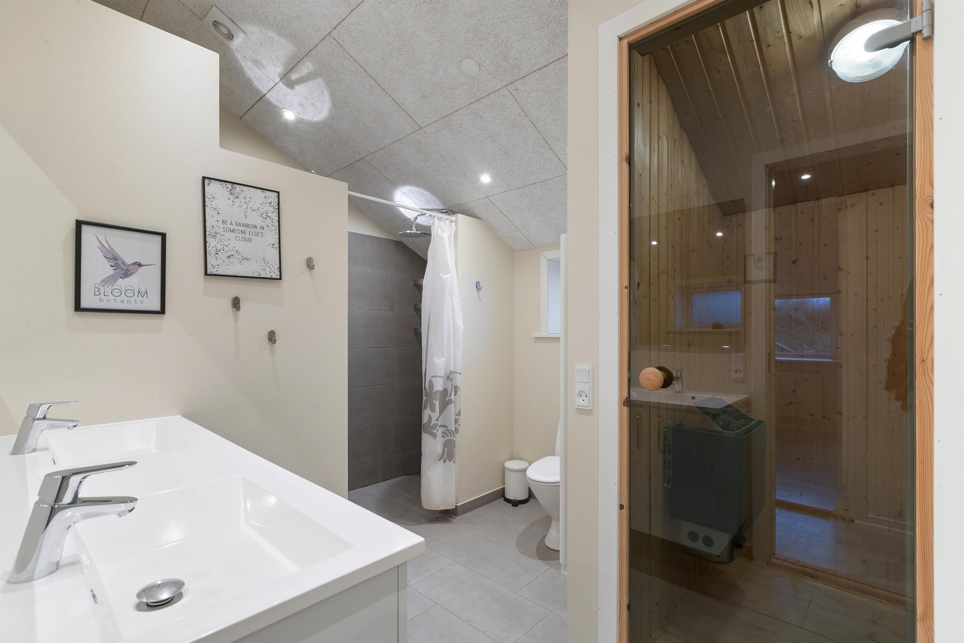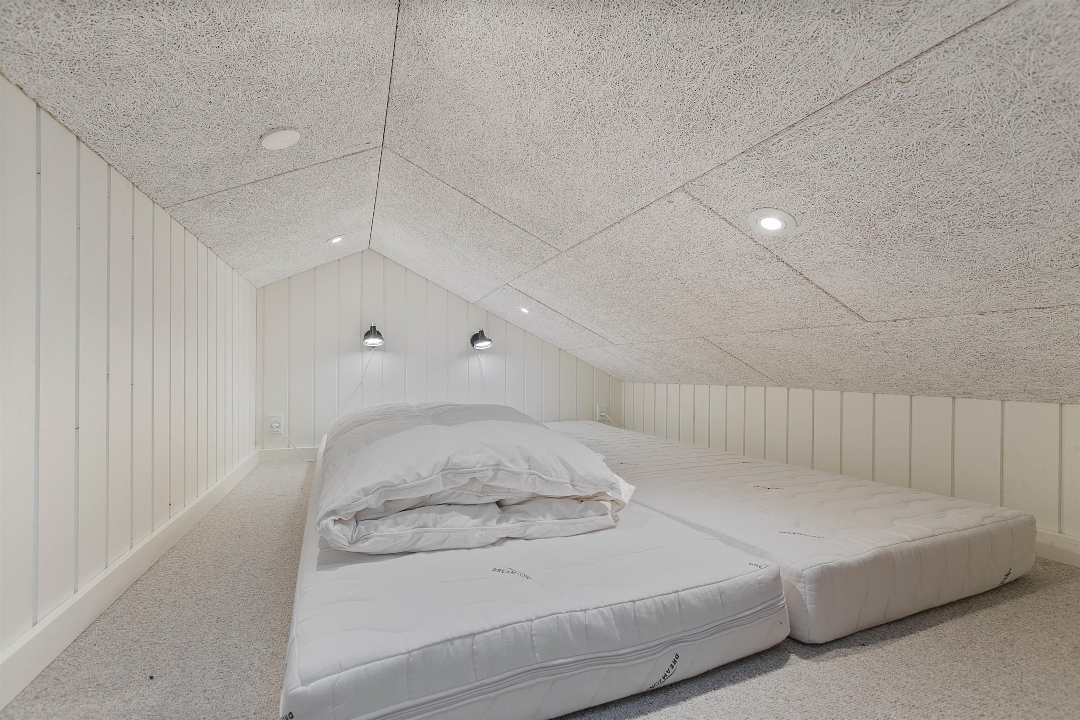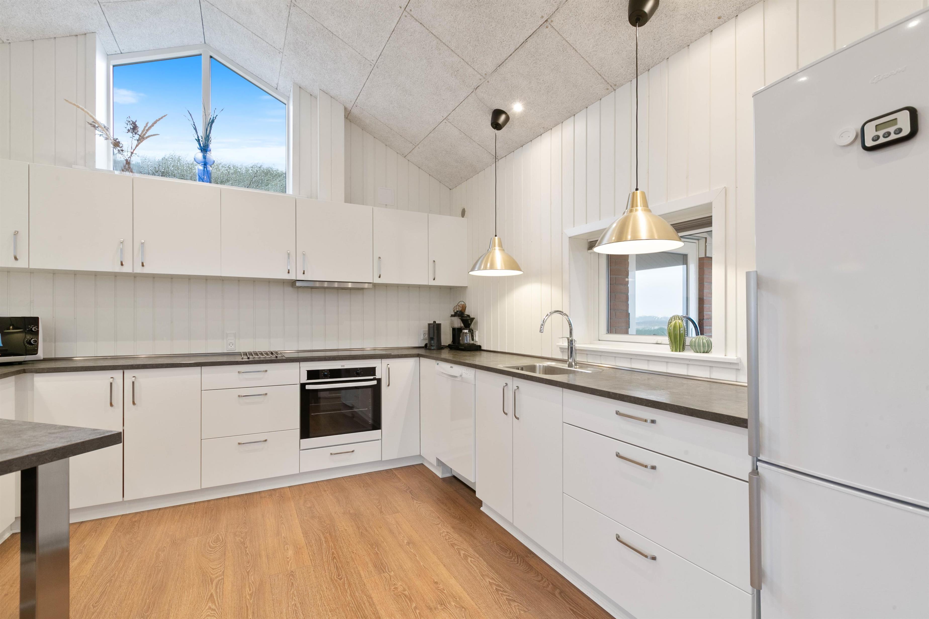 Sommerhuset er med sine 120 m2 stort og rummeligt. Her er god plads til familien eller vennerne, og hunden må gerne være med. I det moderne og godt indrettede køkken kan I sammen tilberede lækre måltider. Her står der også en opvaskemaskine til rådighed, som står klar til at tage opvasken for jer. De 2 badeværelser er begge udstyret med gulvvarme. Derudover indeholder det ene badeværelse en sauna, hvor I rigtig kan blive varmet igennem. Feriehuset rummer i alt 3 soveværelser med dobbeltsenge. Har I børn med, vil de elske at sove på hemsen.