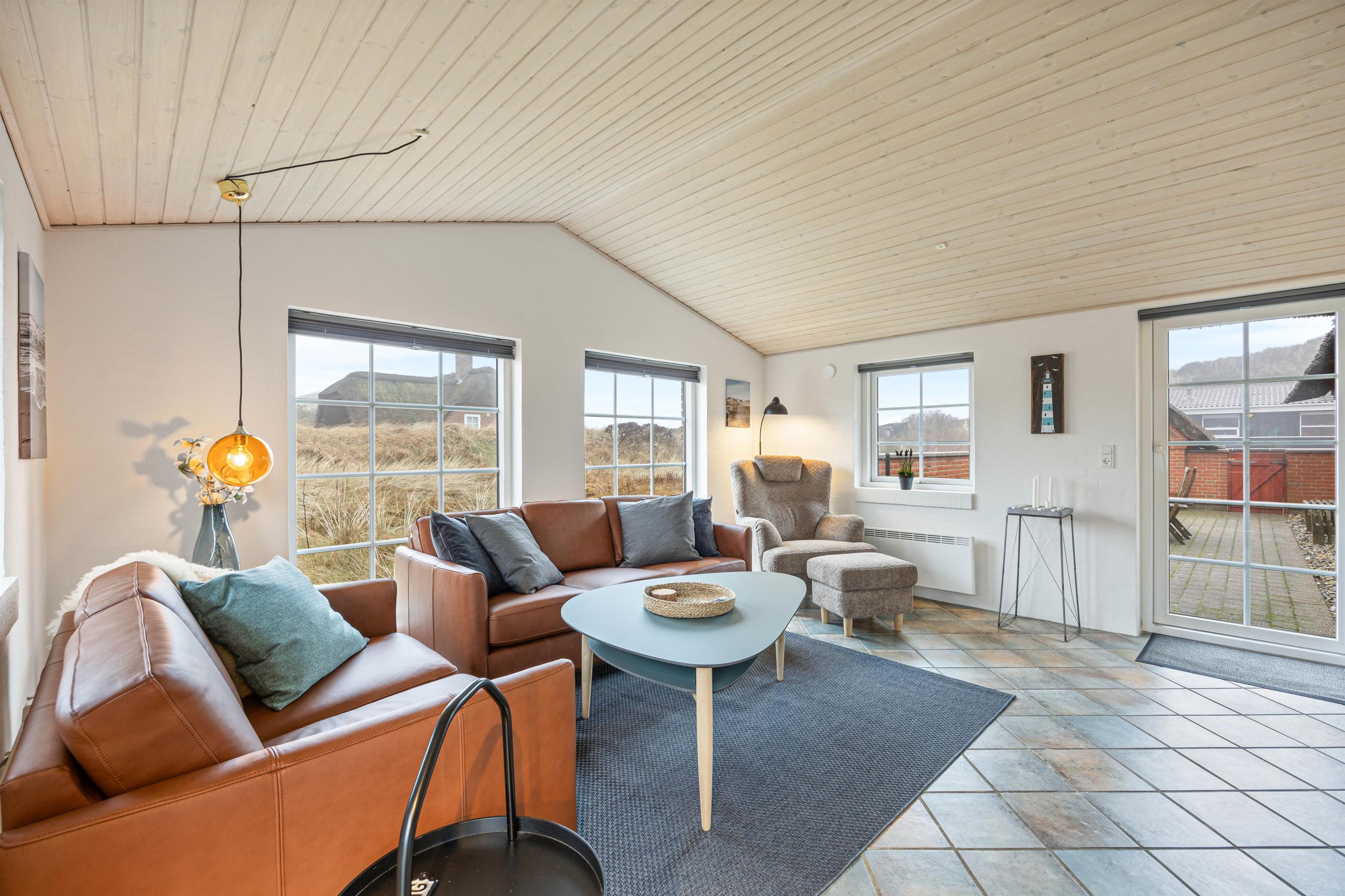 Sommerhuset er placeret i et roligt ferieområde tæt på badebyen Søndervig. Når vinden blæser i den rigtige retning, kan I dufte saltvandet i luften. I kan med fordel lade bilen stå, da der blot er 450 meter til den brede sandstrand og 1,6 km til nærmeste indkøb.