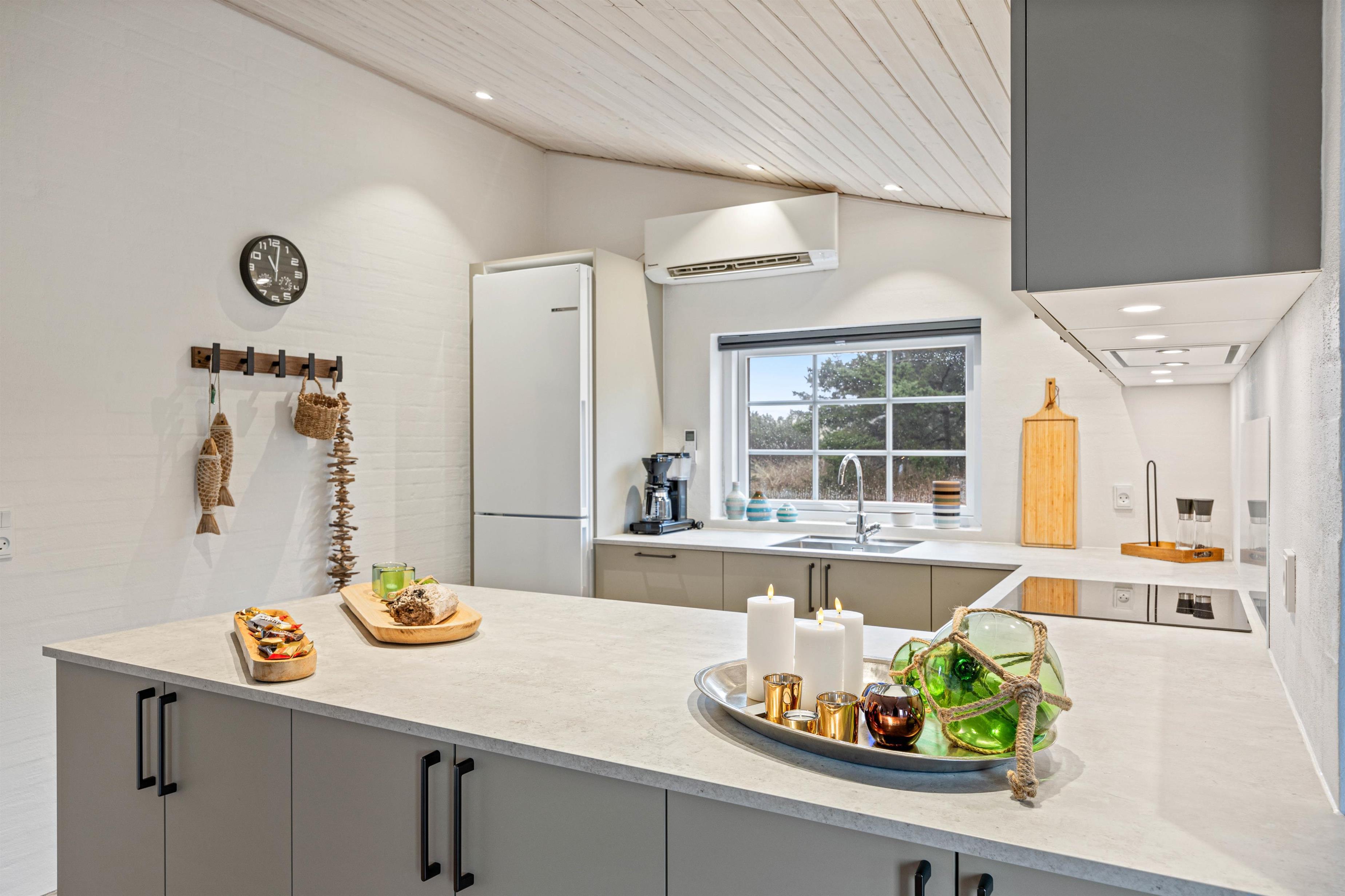 I stuen er mulighederne mange. Her kan I sætte jer godt til rette imens I nyder varmen fra den knitrende brændeovn. I kan også sætte jer foran fladskærms TV’et, hvor der ikke blot er kanaler, der er også en chromecast. Her kan I streame netop de film og serier, som I ønsker at se. Hvis I har nogle streamingtjenester. Det funktionelle køkken har plads til, at I kan lave mad i fællesskab. Derudover er der også mulighed for, at I kan tilberede jeres mad på grillen.