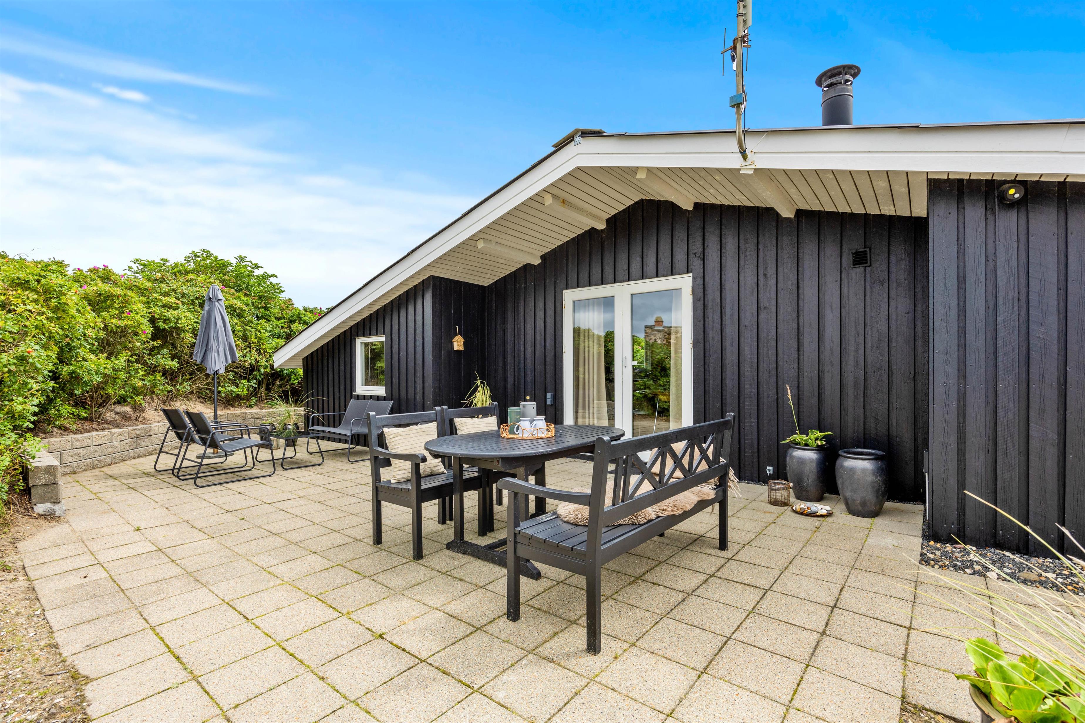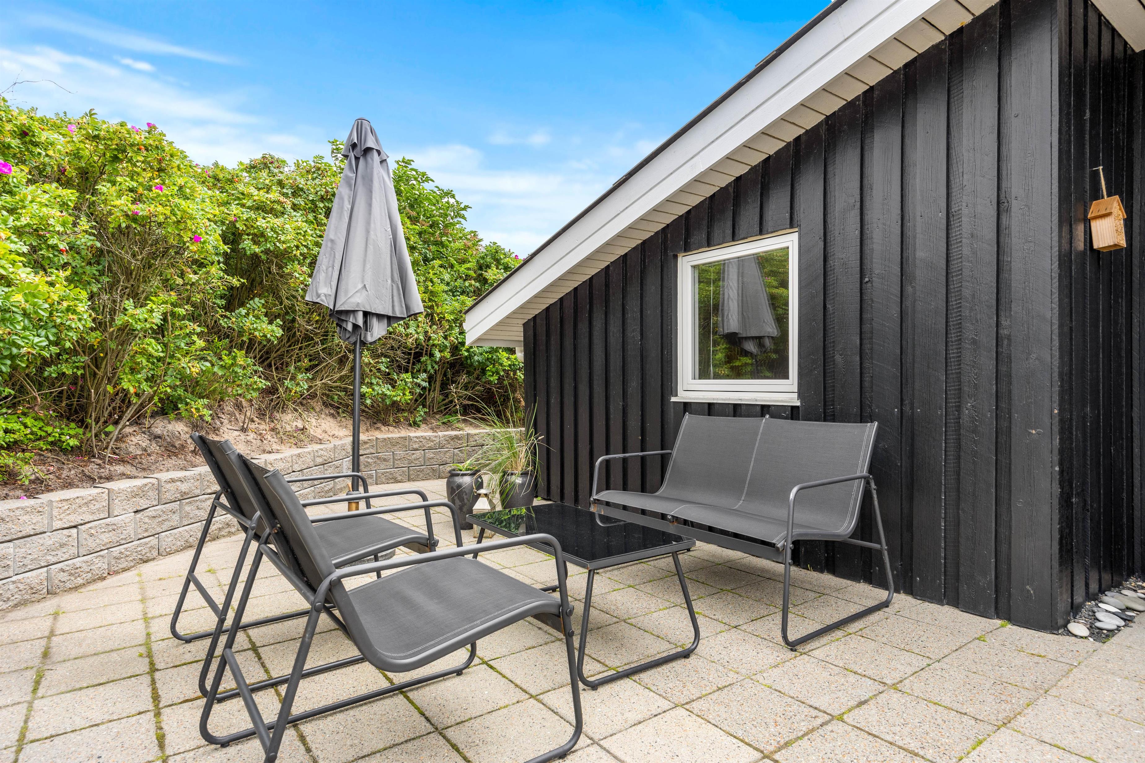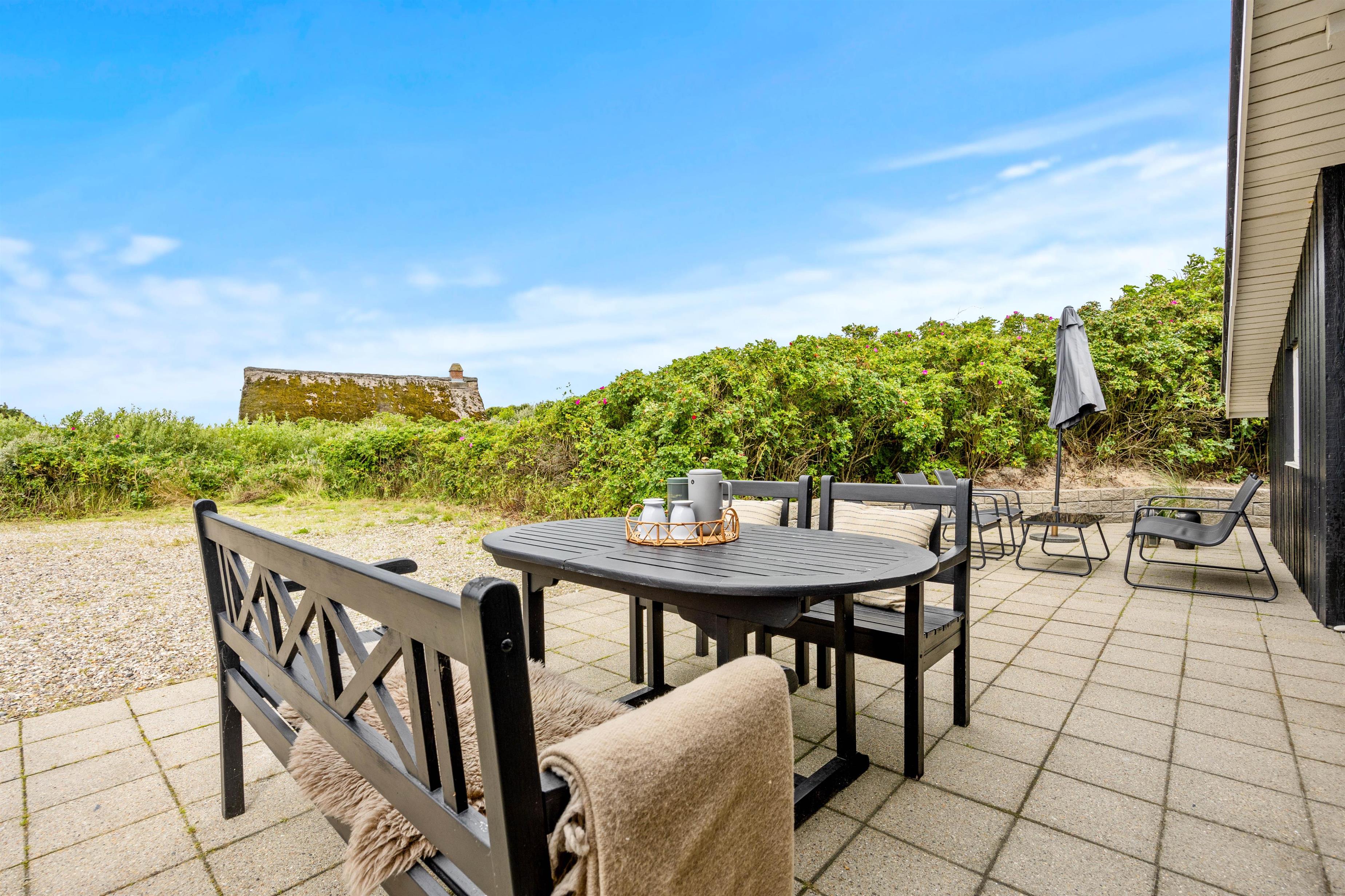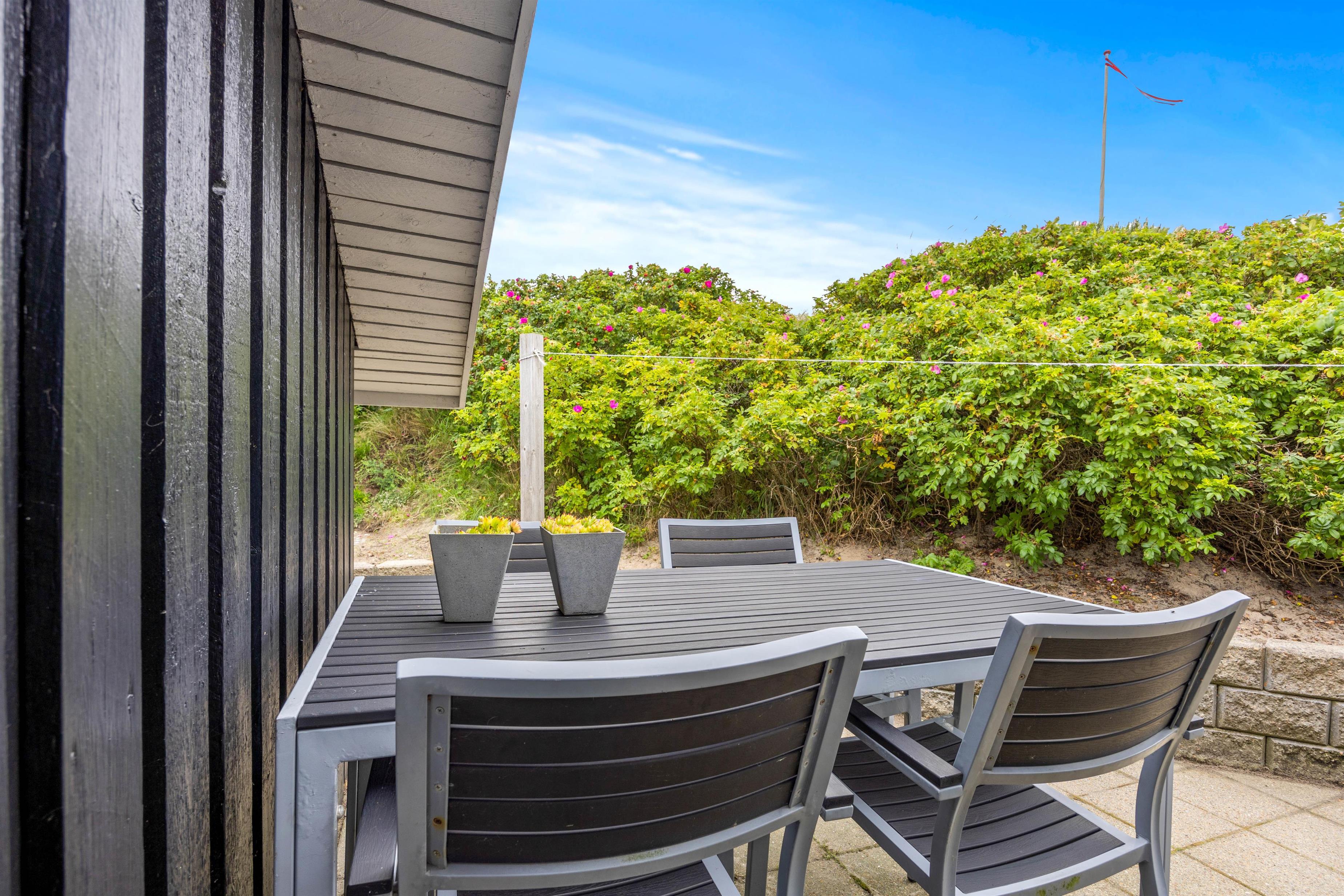 Det brusende Vesterhav ligger blot en kort spadseretur væk, og kun 500 meter skiller jer fra den nærmeste strandopgang. Har i været en tur på stranden og fødderne er fulde af sand, kan i bruge udendørsvandhanen til at skylle sandet af. Den er også effektiv til at skylle hunden ren efter en god og aktiv feriedag.