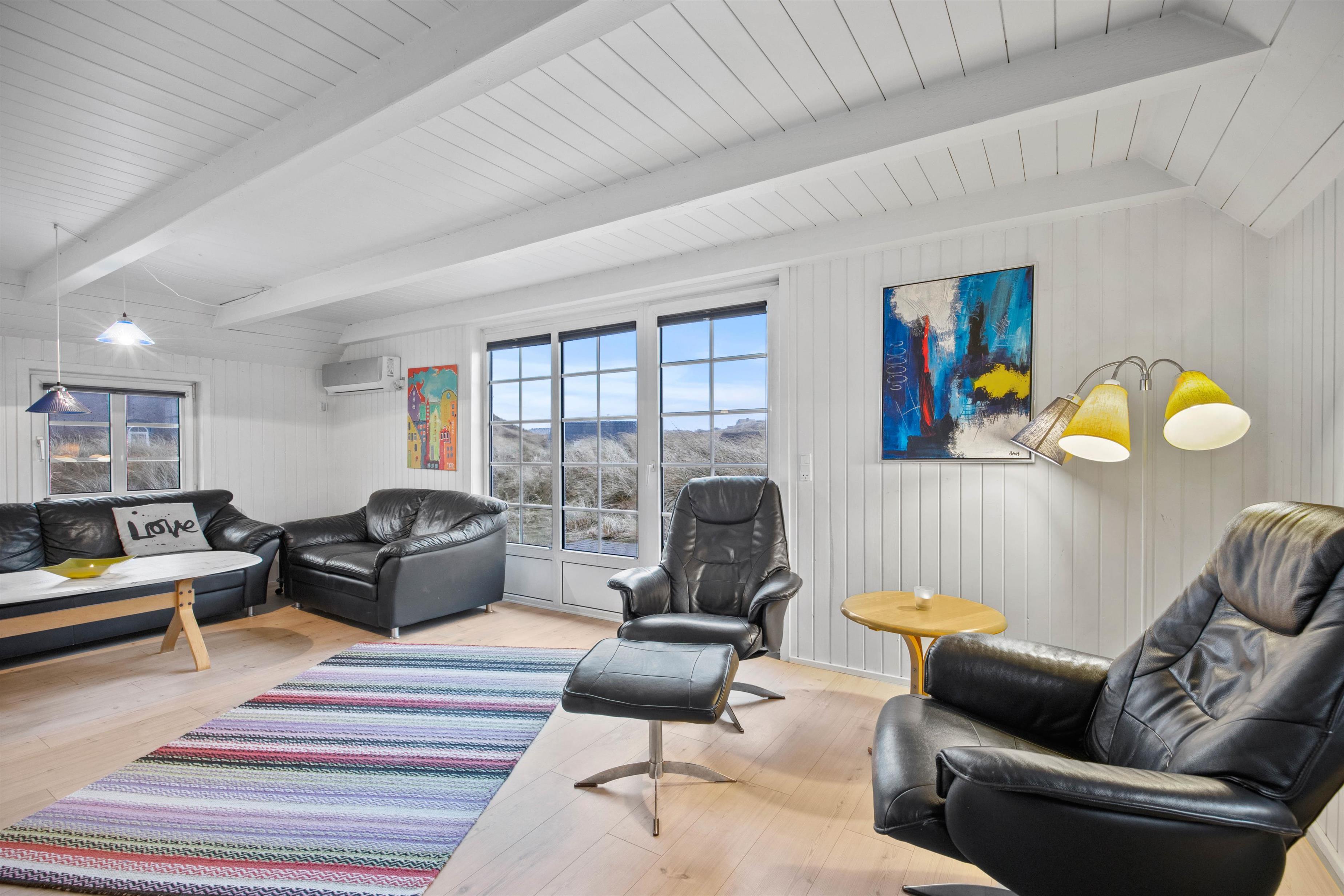 Med en fantastisk skøn beliggenhed i den alleryderste klitrække kun 125 meter fra Vesterhavet finder I dette dejlige, stråtækte sommerhus. Huset har bl.a. en dobbelt carport og en god, afskærmet terrasse med smuk udsigt over området. Her er plads til 6 personer og 3 hunde på de i alt 100 m².