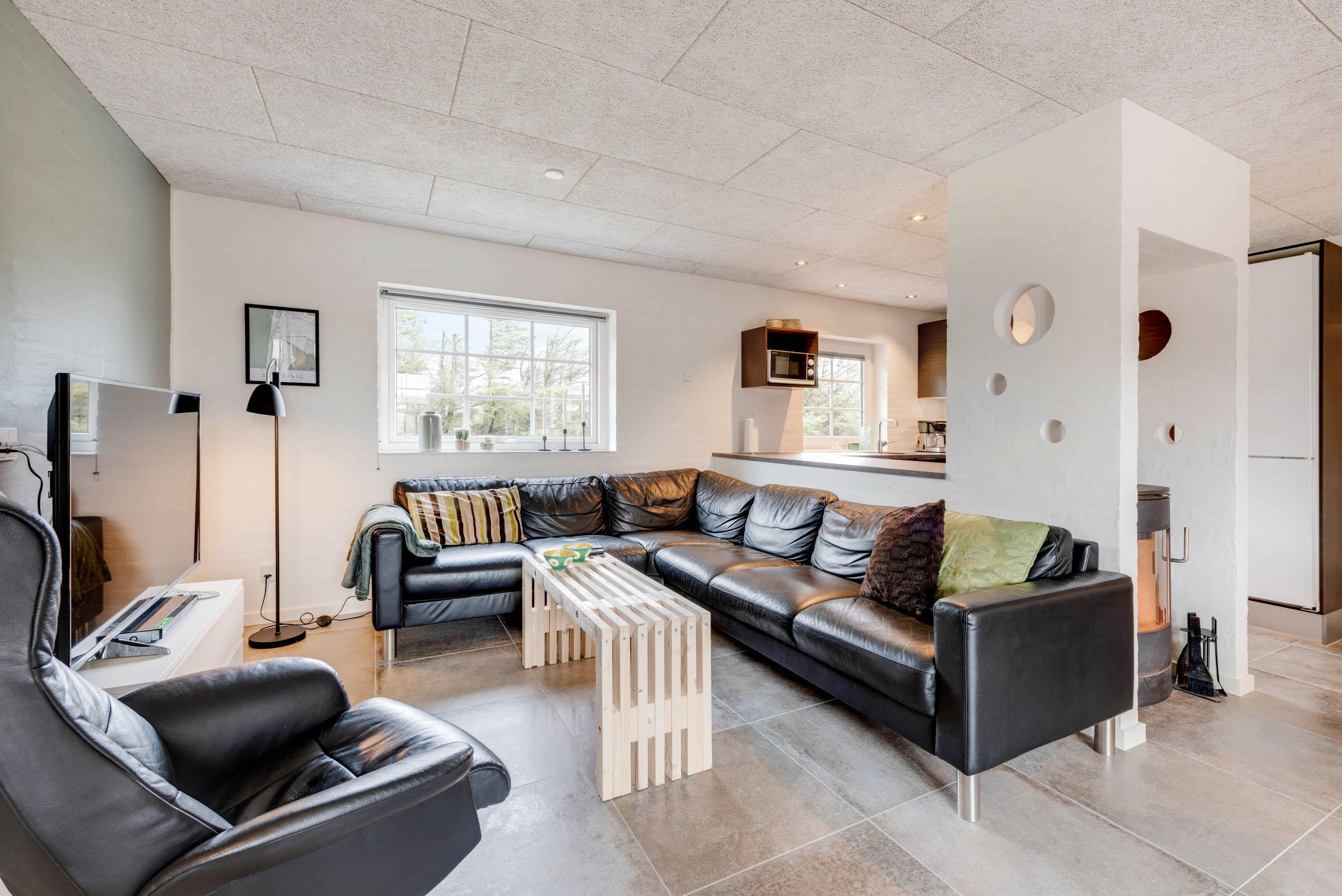 Troldedalen 36 har med sine 185 m2 plads til 10 personer. Feriehuset rummer alt hvad der er brug for, for at I kan holde en dejlig ferie. Sommerhuset har et funktionelt og åbent køkken, som ligger i direkte forbindelse med husets stue. Her er der plads til, at I alle kan samles om en god film på fladskærms-tv'et eller et brætspil. Samtidig kan I med fordel tænde op i brændeovnen og nyde varmen og den knitrende lyd fra ilden. Feriehuset er indrettet med gode soverum med både dobbeltsenge og enkelmadssenge.