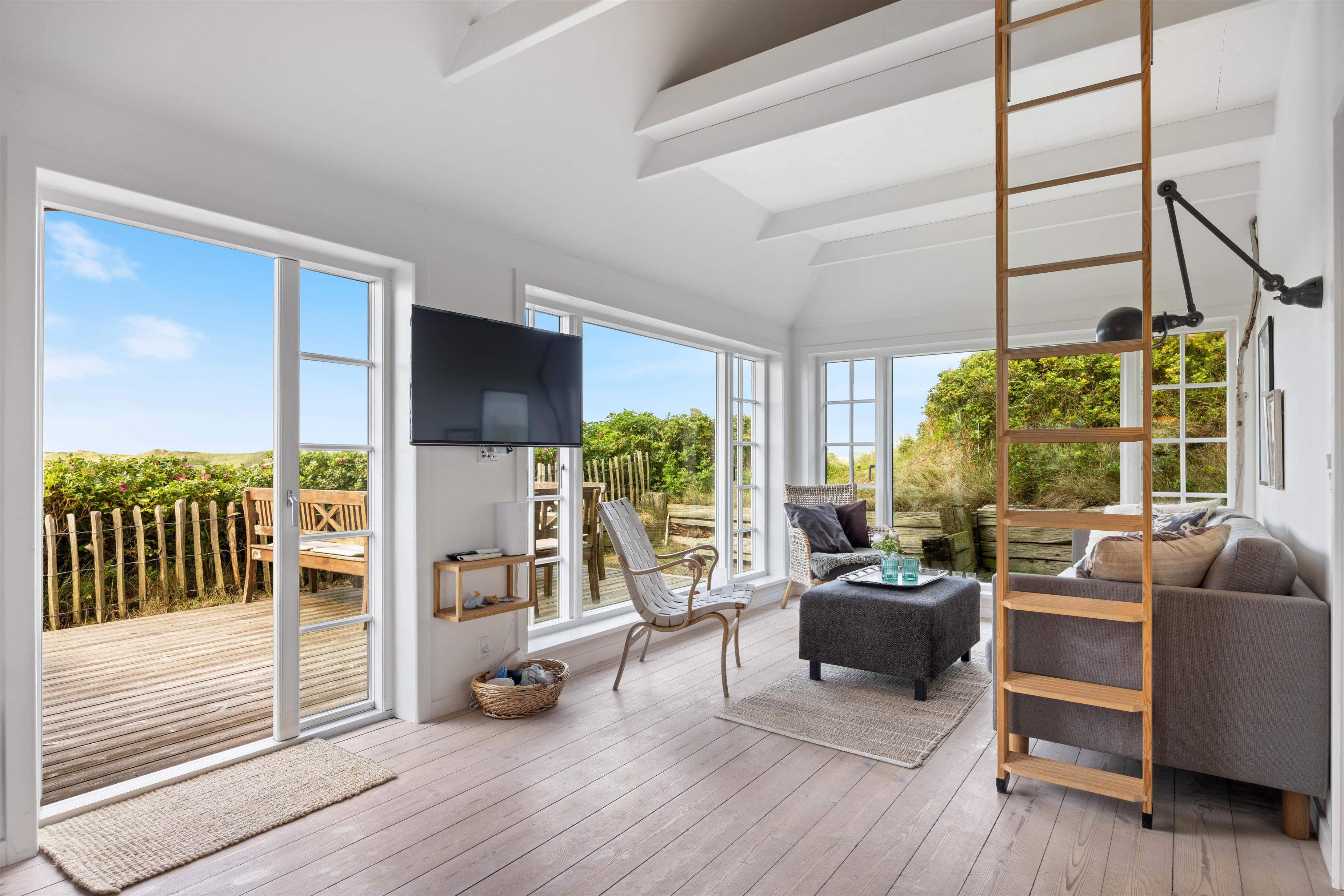 Fra stuens store vinduespartier er der faktisk kig over Vesterhavet. Brændeovnen sørger for en behagelig varme og en hyggelig atmosfære på de køligere aftner. Her kan I slappe af sammen eller sætte jer godt til rette og nyde en spændende film. For at sikre den hjemlige følelse, er sommerhuset også udstyret med en chromecast i stuen, der tillader jer at se lige netop det I vil, når det passer jer. Her kan I nemlig streame jeres yndlings film og serier, hvis I har nogle streamingstjenester. Mere hjemligt bliver det altså ikke.