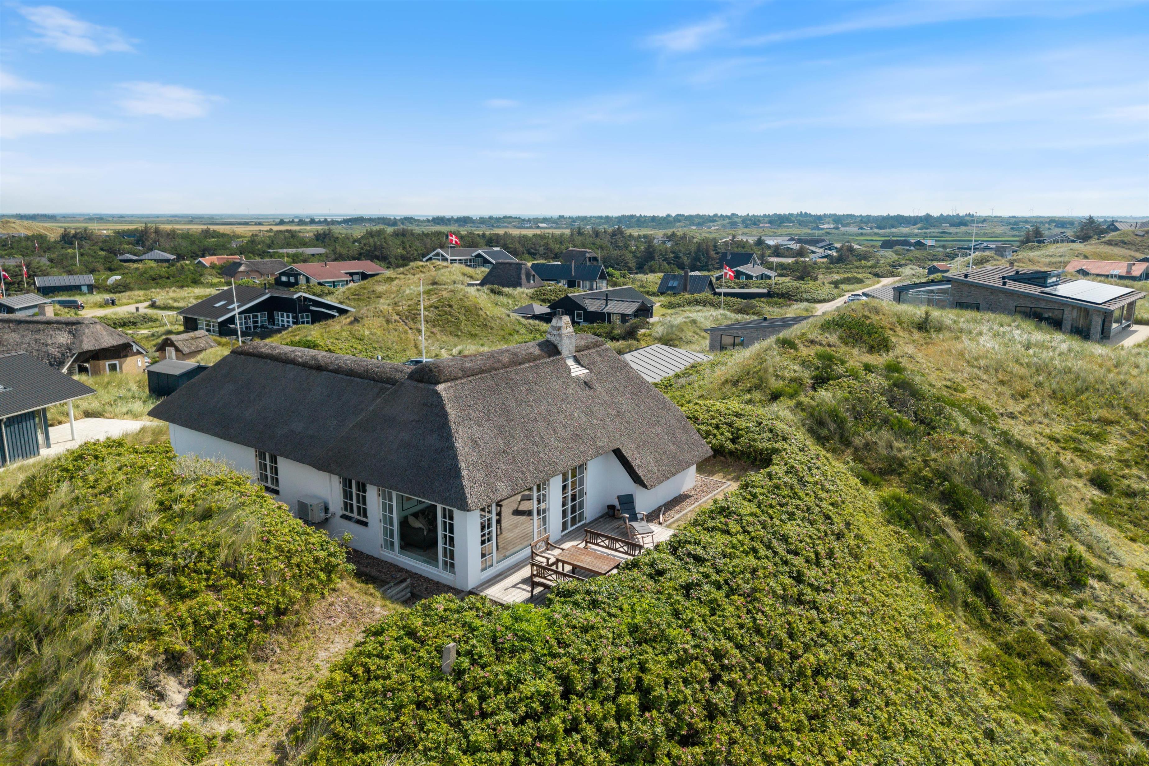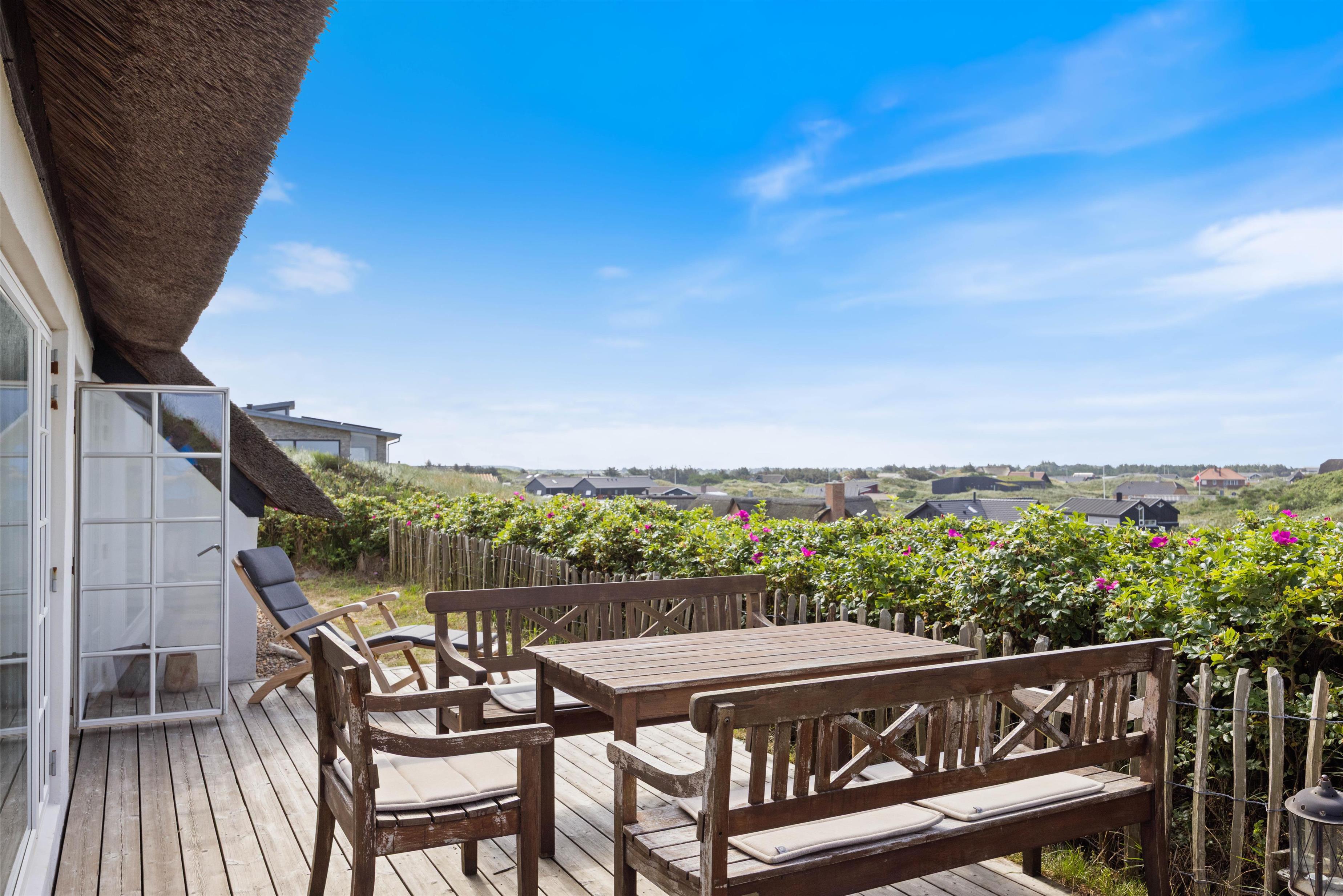Udenfor på den afskærmet terrasse, har I et dejligt og fantastisk panoramaudsigt over klitterne i området og der er selvfølgelig sørget for havemøbler til at slænge jer i. Der er også en grill, som kan hjælpe med at tilberede en fantastisk grillmiddag på de dejlige sommeraftenener. Tæt på sommerhuset er der en garage, som I må parkere i.