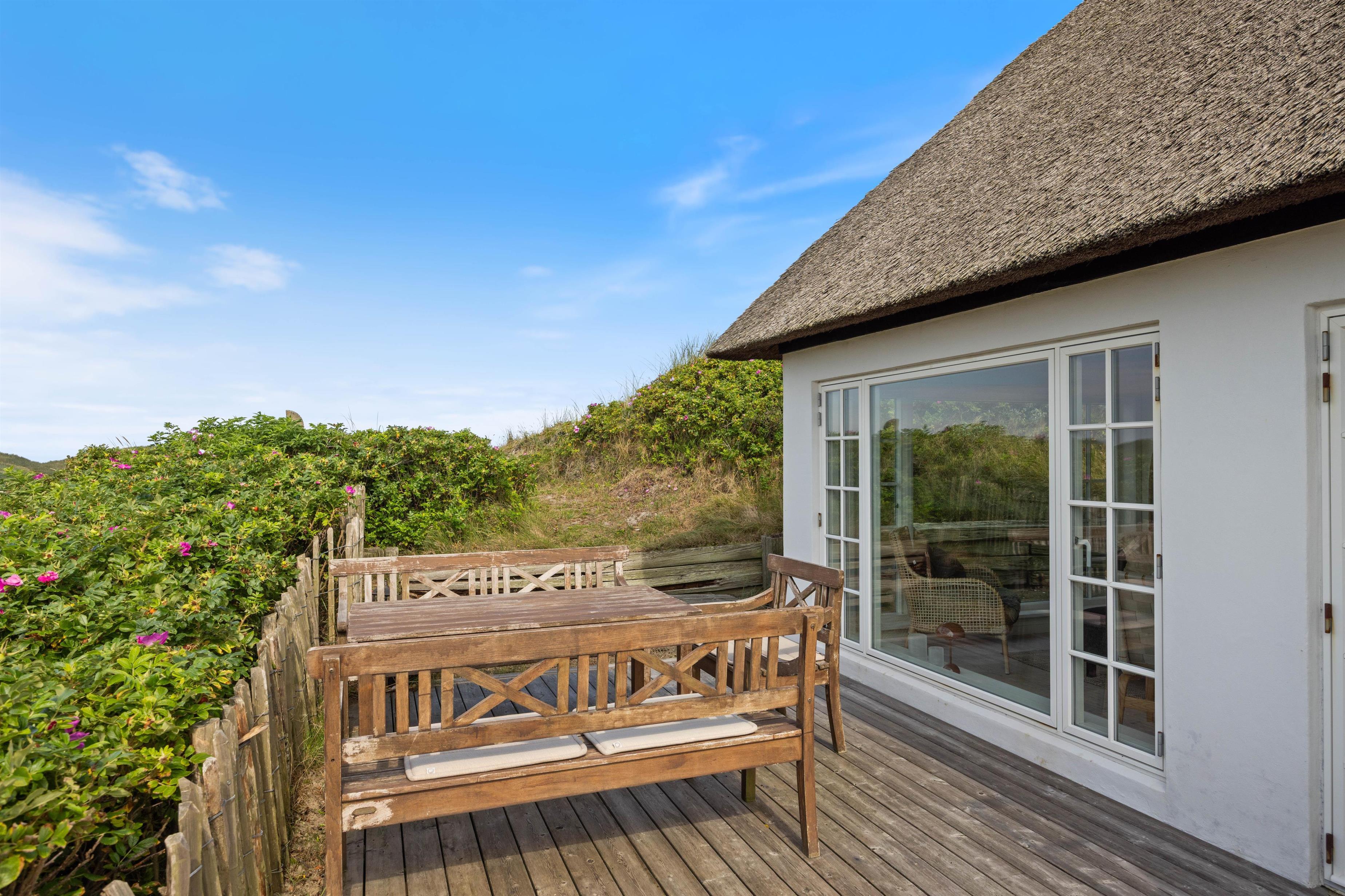 Det hyggelige sommerhus er fra 1947 men er renoveret i 2022 og fremstår særdeles lyst og lækkert - Her er virkelig tænkt på detaljen. Det stråtækte tag falder i ét med det omkringliggende klitlandskab, og vidner om et hus med en helt unik historie og charme, som I ikke finder i et hus af nyere dato. Indretningen i huset er en kombination af moderne komfort og nostalgiske møbler. Der er hvide træbjælker i loftet, som også går op i kip. Gulvet er også et flot trægulv. Det giver en god, hjemlig hygge i rummene, som er perfekt til en afslappende ferie ved vandet. Fra stuens store vinduespartier er der faktisk kig over Vesterhavet.