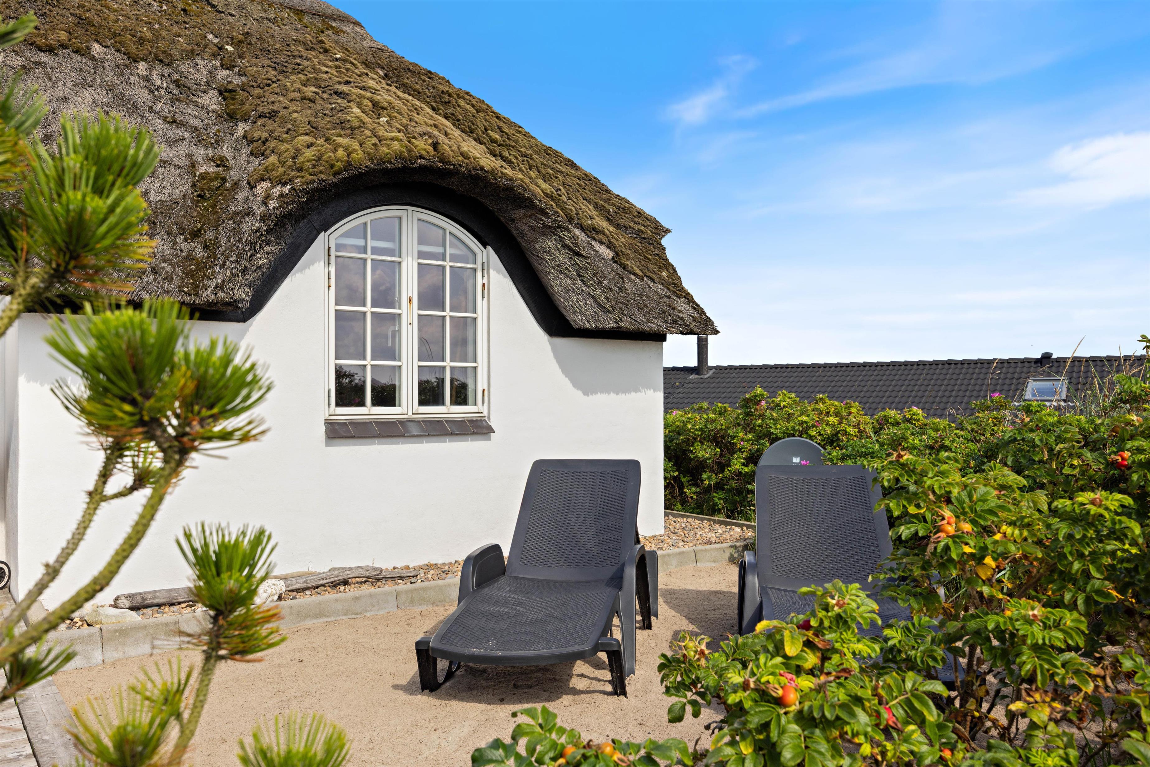 Udenfor på den afskærmet terrasse, har I et dejligt og helt uforstyrret udsyn ud over klitterne i området og der er selvfølgelig sørget for havemøbler til at slænge jer i. Der er også en grill som kan hjælpe med at tilberede en fantastisk grillmiddag på de dejlige sommeraftenener.