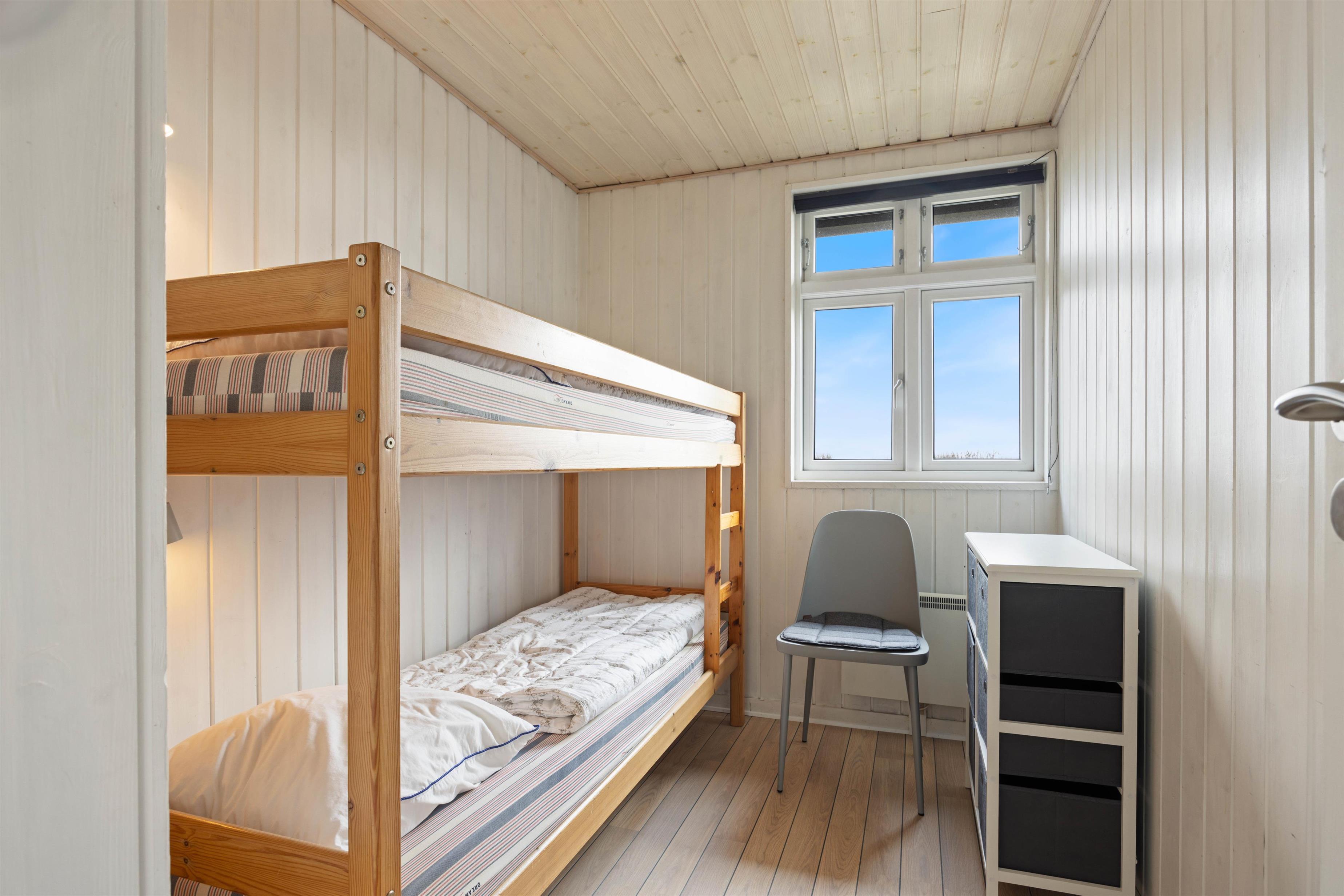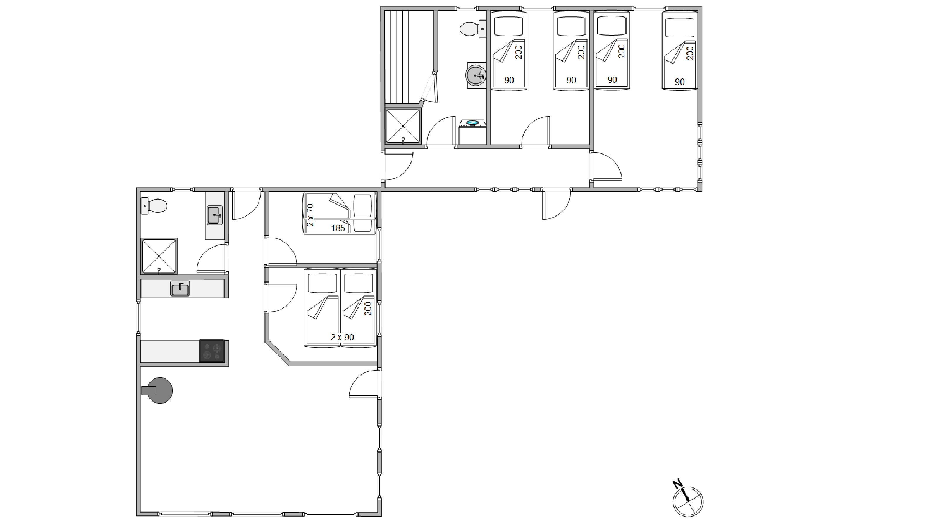 Sommerhuset råder over 8 sengepladser, der er fordelt mellem hovedhus og anneks. I det 60m2 store hovedhus er der to værelser med henholdsvis dobbeltseng og køjeseng, mens der i det 37m2 store anneks er 2 værelser – begge indrettet med hver 2 enkeltsenge. I annekset er der også et badeværelse. Det gør sommerhuset ideelt, hvis I er 2 familier, der ønsker at holde ferie sammen.