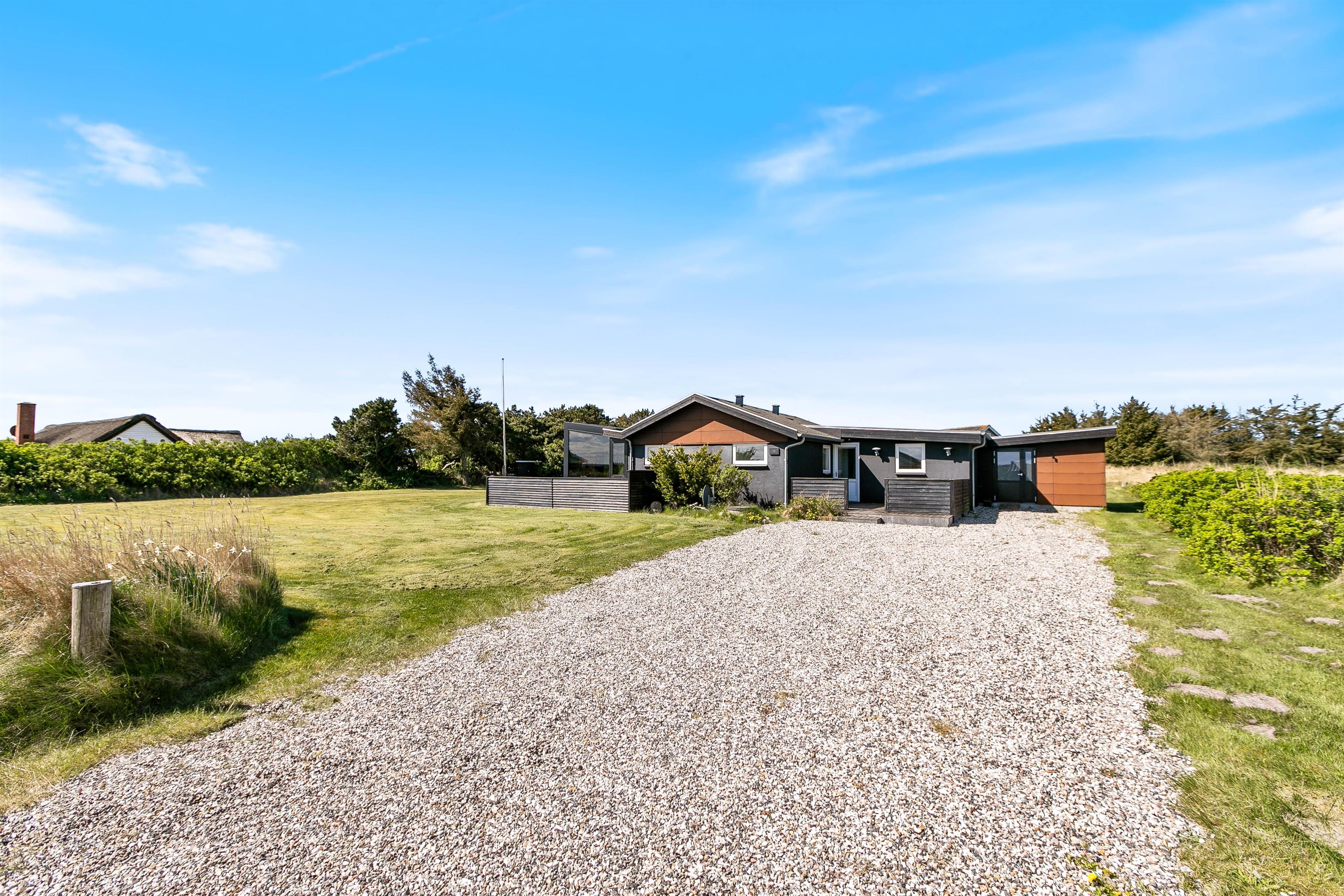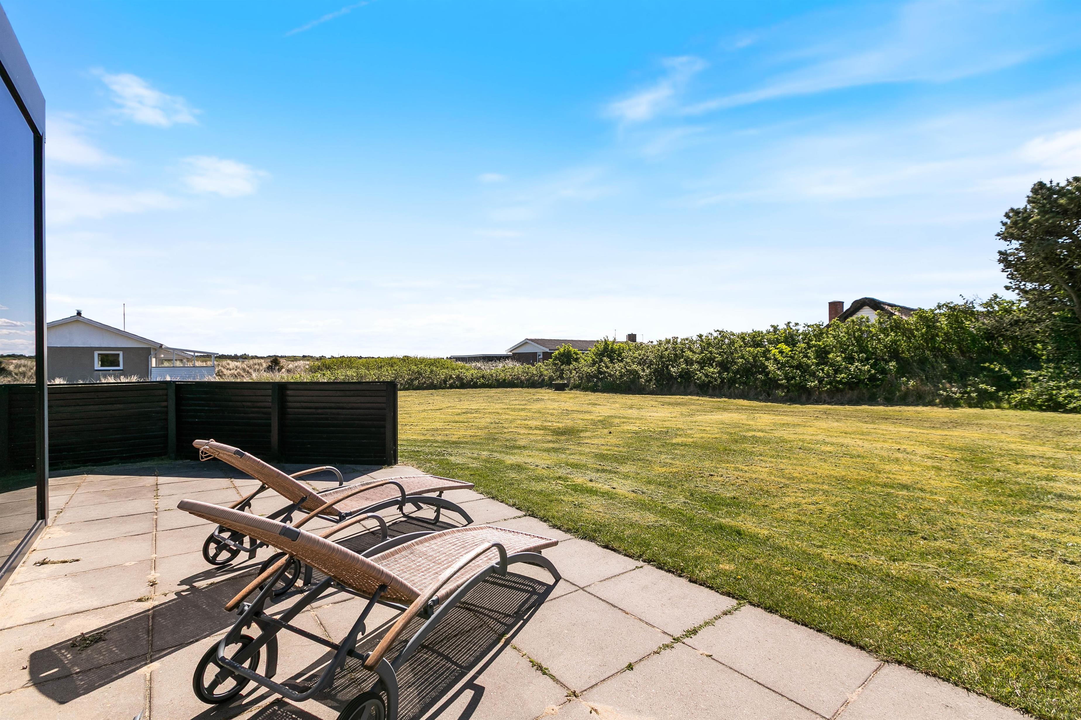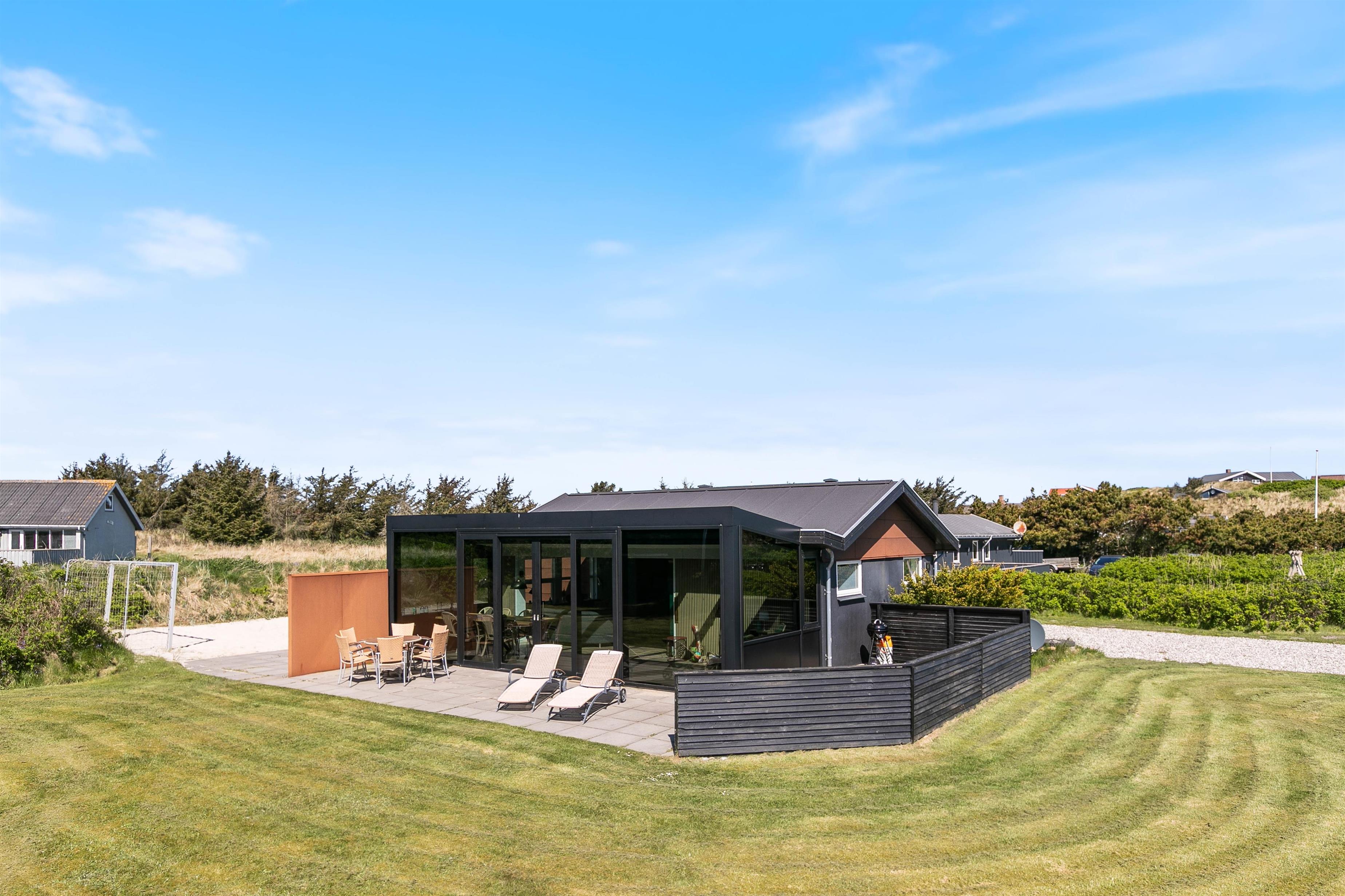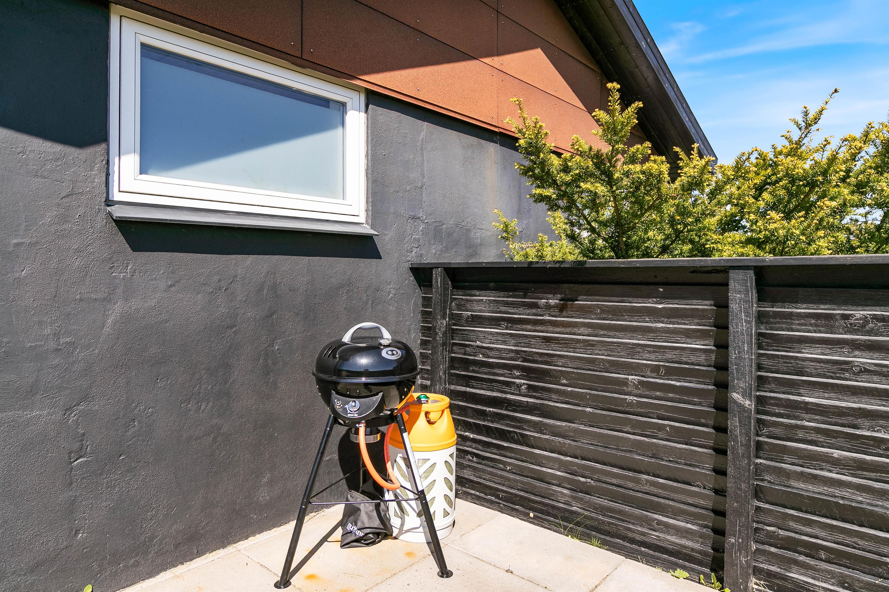 Omgivet af en skøn naturgrund finder i et ideelt miljø til afslapning. Sandet på sommerhusets grund giver de små gæster mulighed for at slå sig løs med at bygge et sandslot, mens I voksne kan slappe af i de behagelige havemøbler. Terrassen indbyder til dejlige sommeraftener hvor I kan tilberede lækre måltider på grillen og bare nyde den friske luft. Med en afskærmet del af terrassen har I også mulighed for at nyde den friske luft og slappe af i private omgivelser.