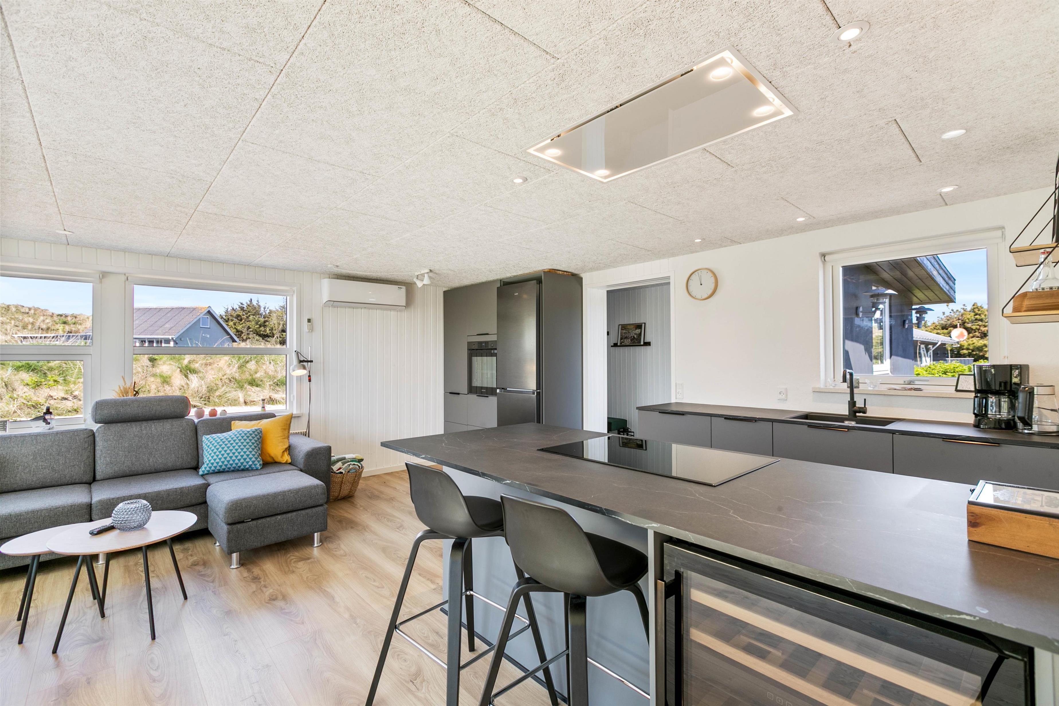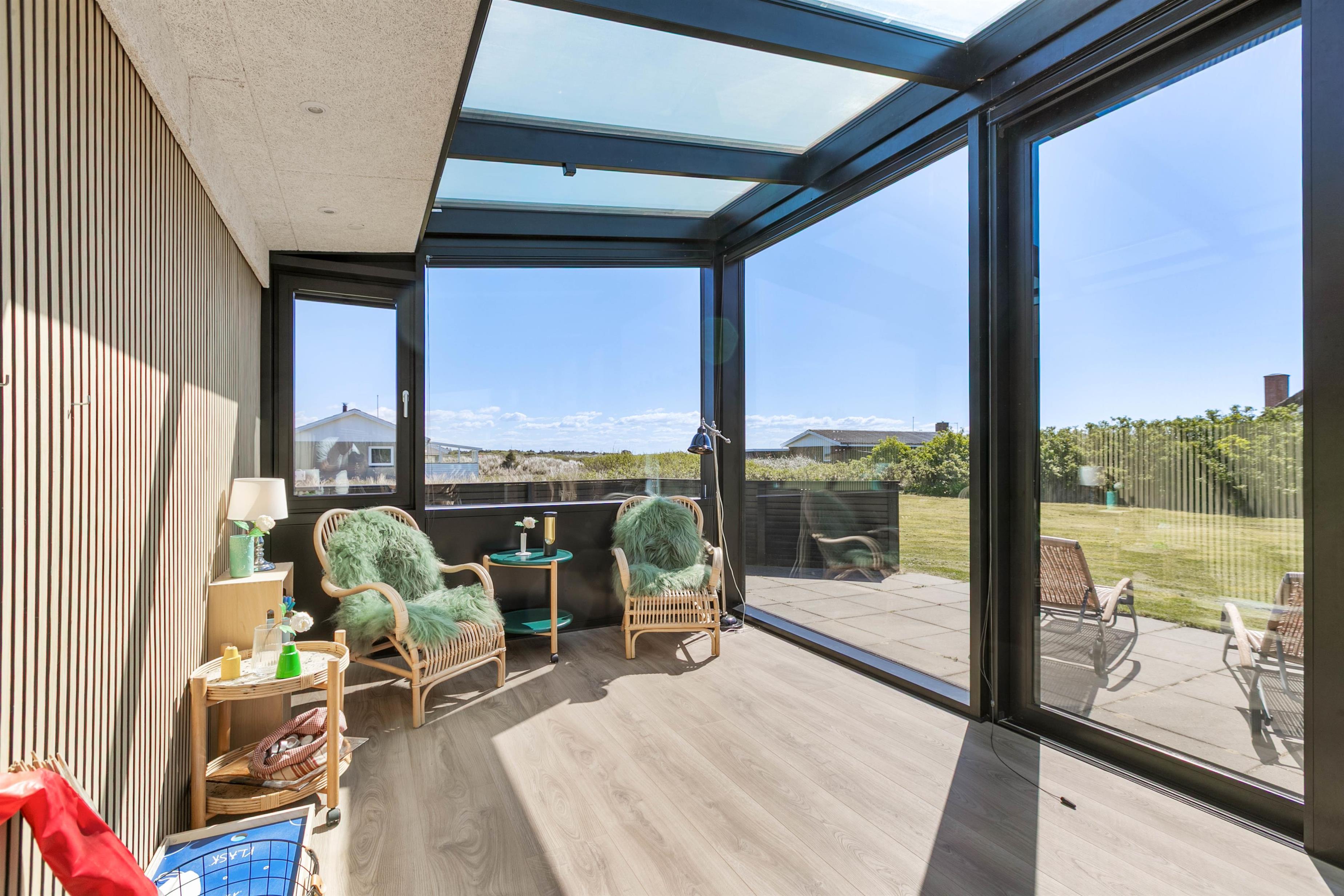 Her på Mågedalen 15 er der virkelig tænkt på jeres komfort, og der er i høj grad budt op til afslapning i lækre omgivelser. I sommerhusets integrerede udestue kan I nyde en masse sollys og ikke mindst en dejlig udsigt ud til klitterne. Her er også godt med plads, og fordi det hele er ét stort rum, kan I nyde masser af kvalitetstid med jeres medrejsende.