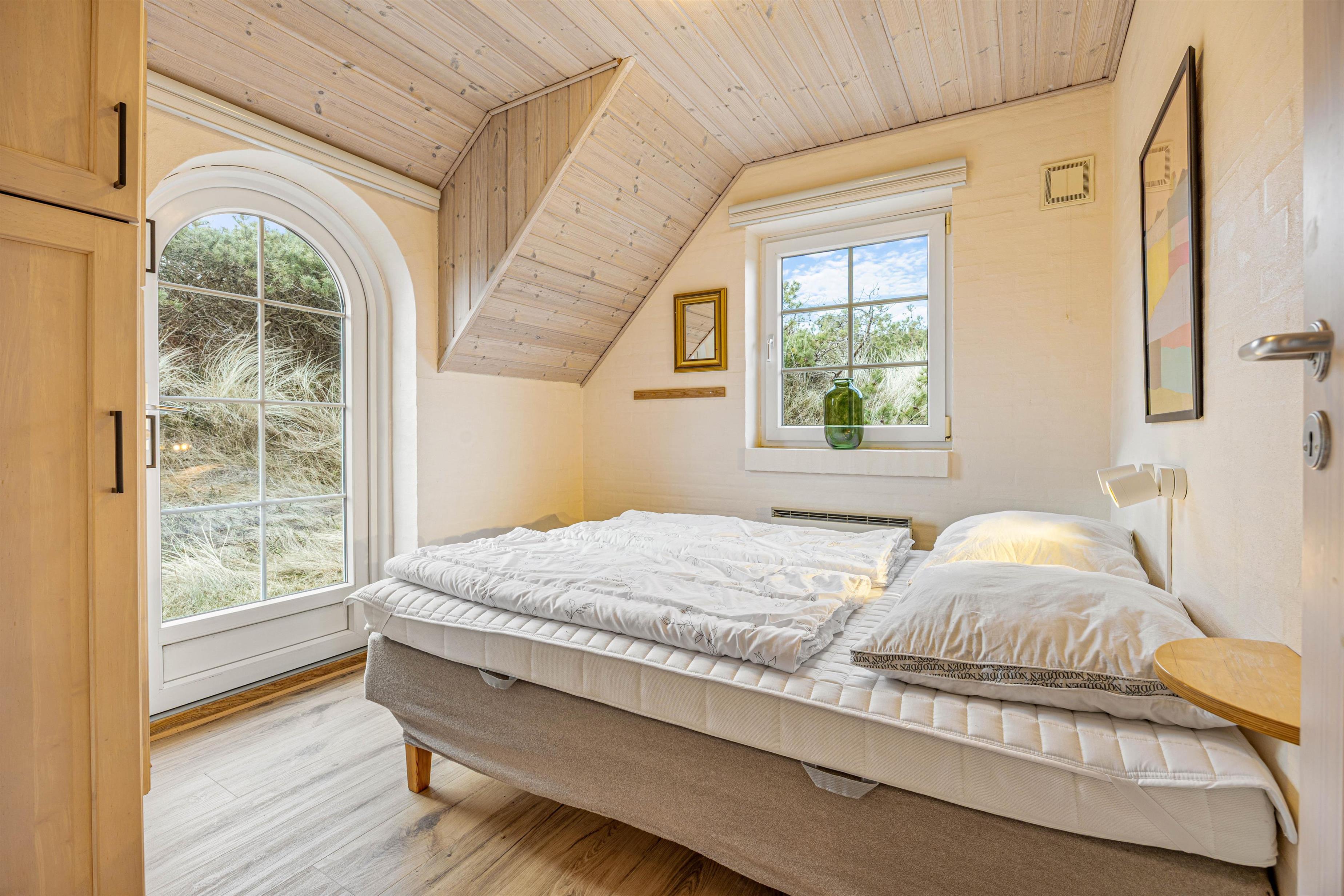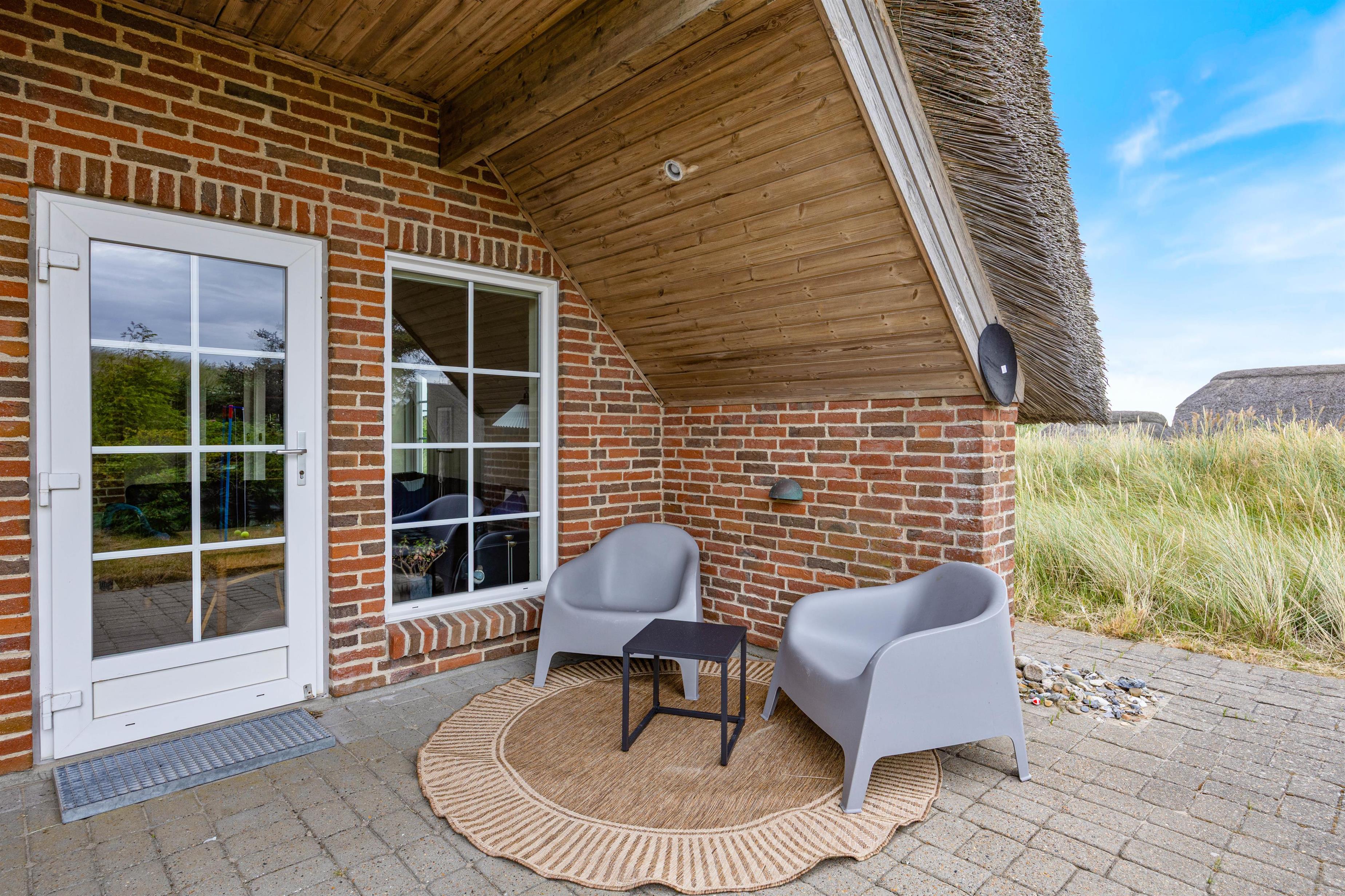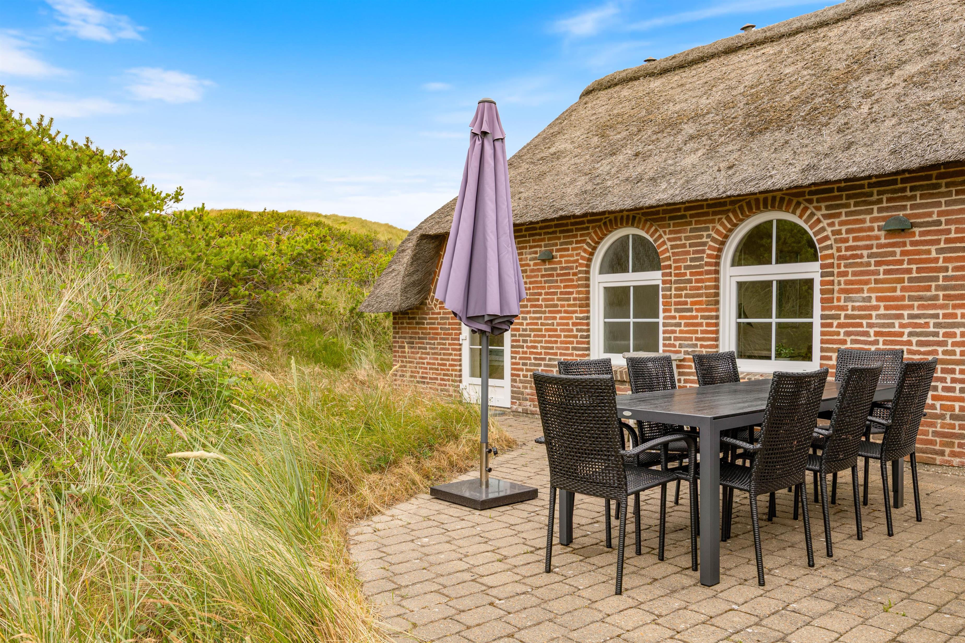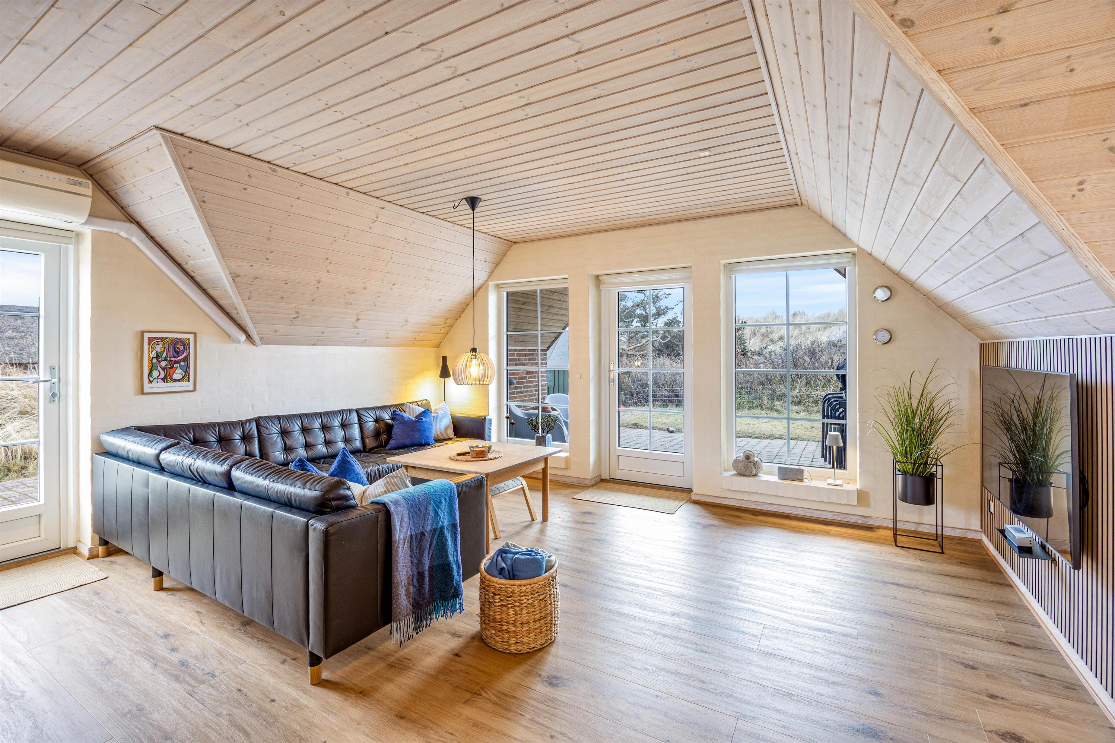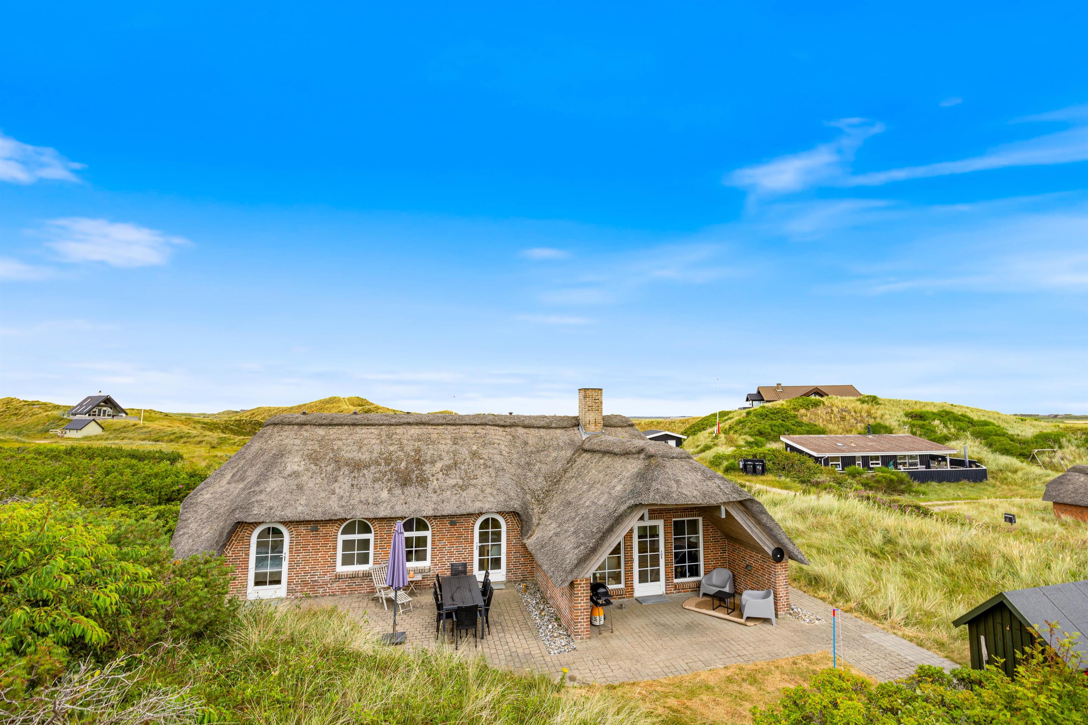 På Esebjergvej 61 kan I nyde masser af frisk luft og skøn natur. Sommerhuset ligger i læ af en stor klit, så der er rig mulighed for at tilbringe meget tid udenfor. Rundt om huset er der flere gode terrasser med havemøbler, og en af terrasserne er helt privat, overdækket og har masser af læ. Fra sommerhuset har I kun 400 meter, før I står på den kilometerlange sandstrand. I burde derfor gøre en daglig gåtur til stranden til et fast ferieritual, da det vilde Vesterhav – uanset årstiden – bestemt er et besøg værd.