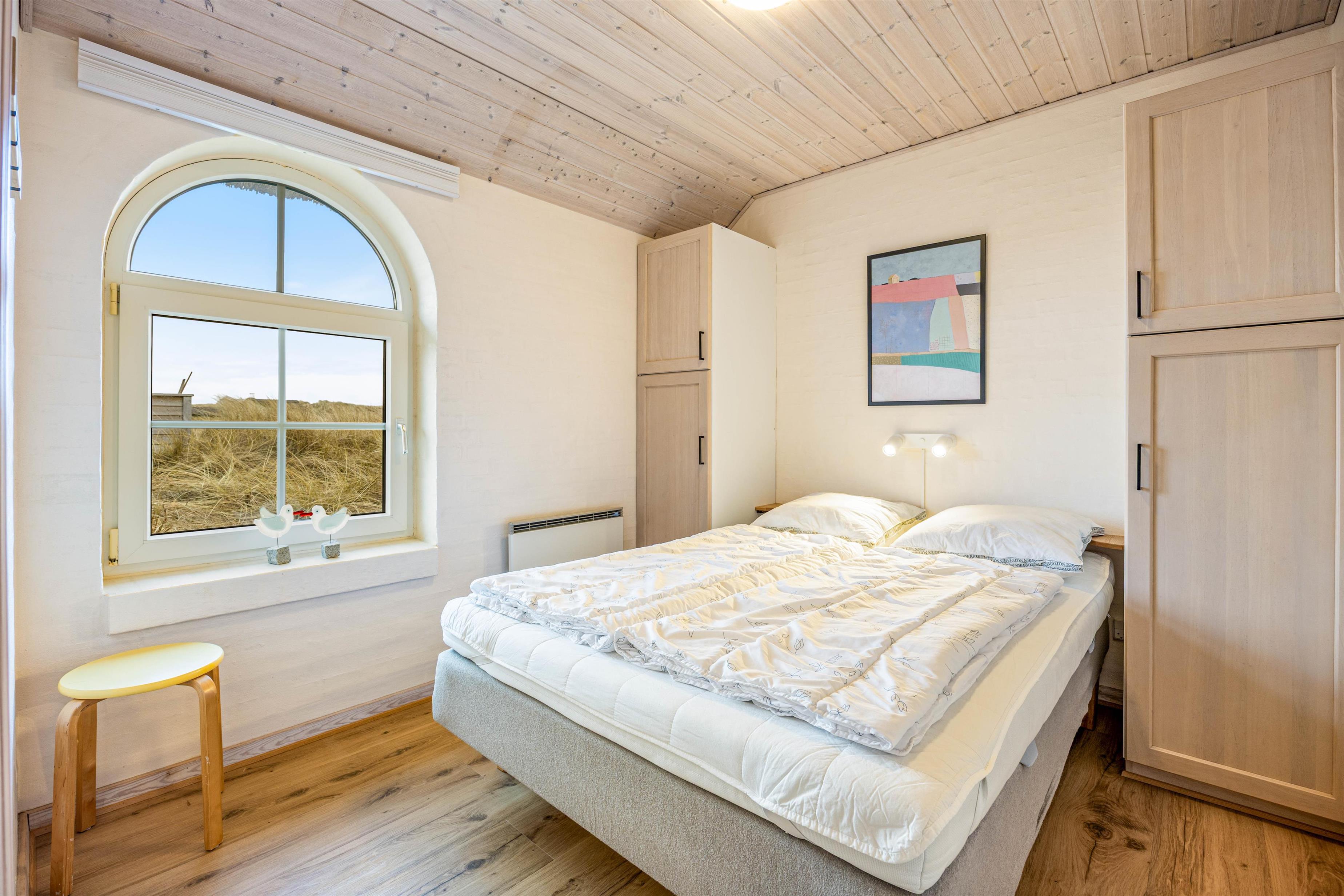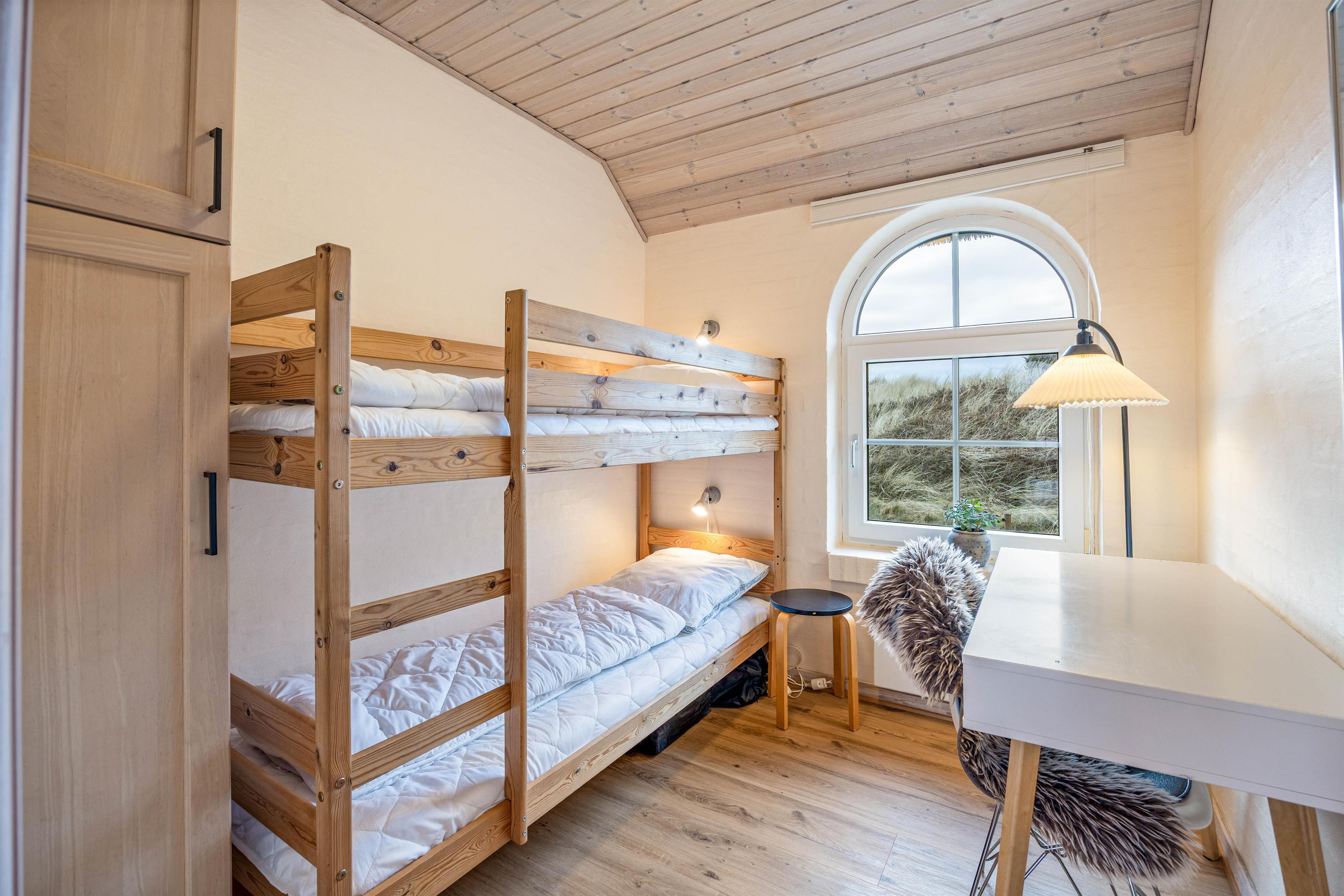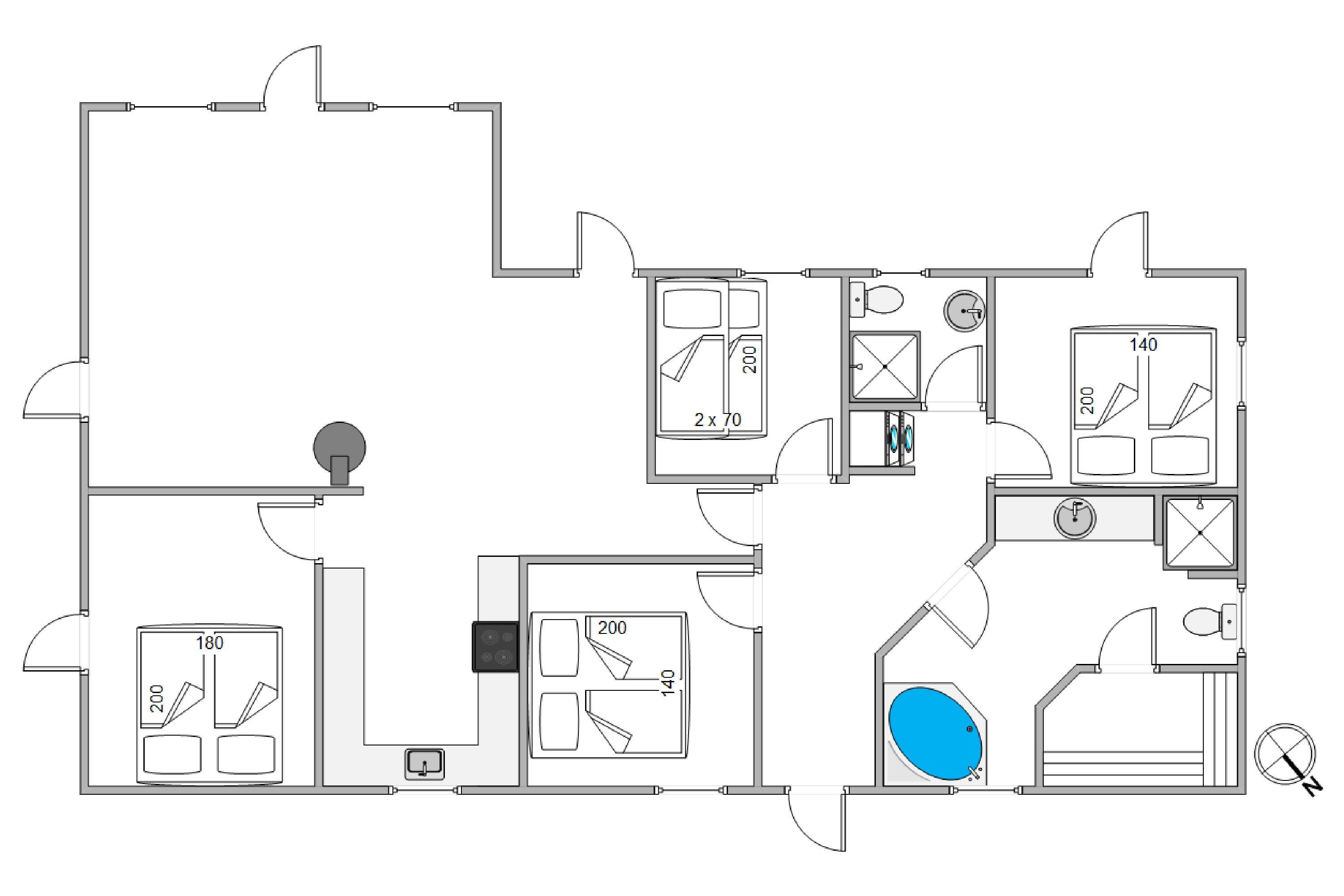 Takket være den gode planløsning i sommerhuset kan I snildt være op til 8 personer og 1 hund i huset. I kan fordele jer på 4 fine værelser, hvoraf 3 af dem er med dobbeltseng, mens det sidste værelse er perfekt til de yngre børn, da de helt sikkert vil elske at sove i køjeseng.