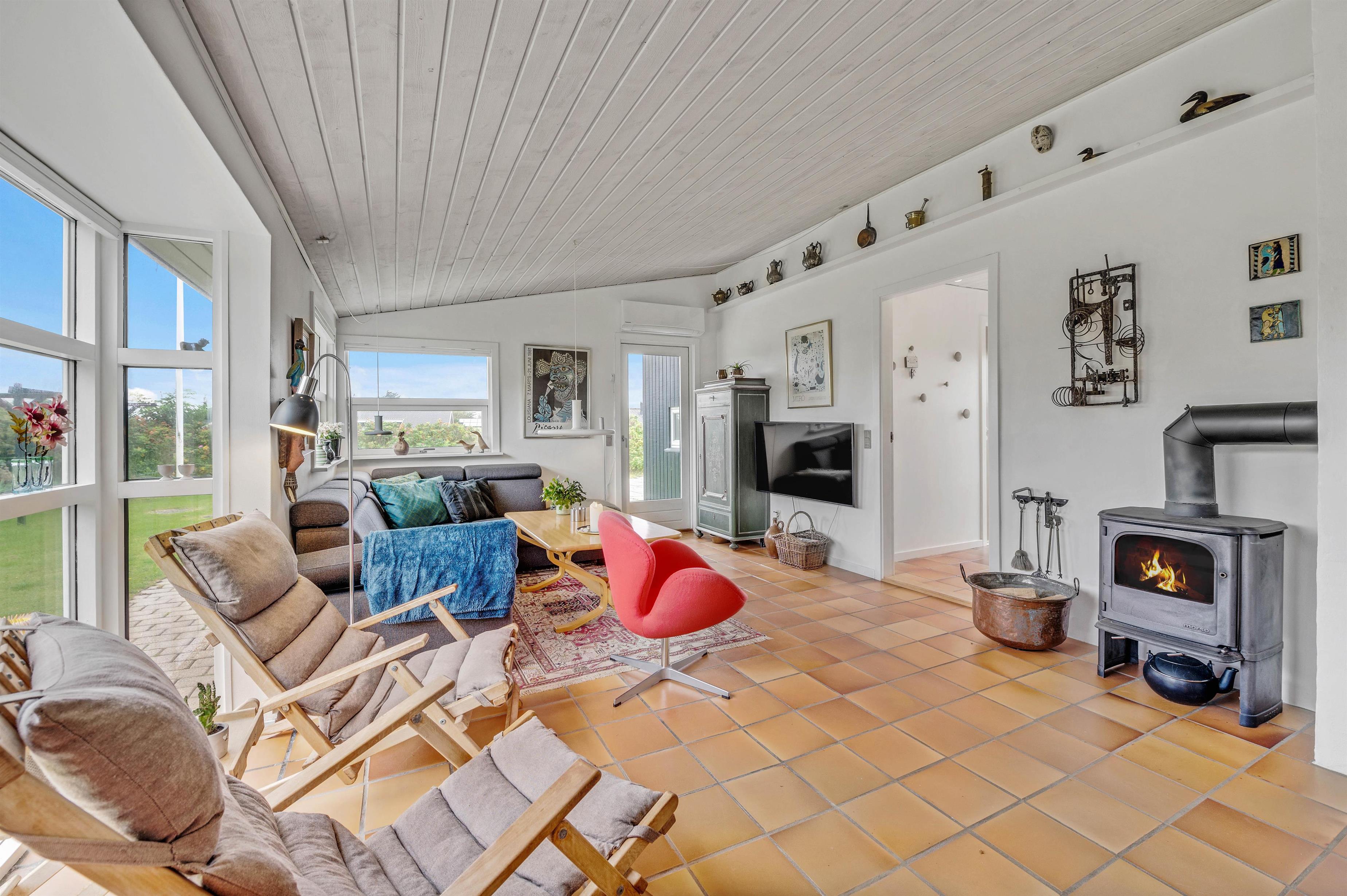 Så snart I ankommer til sommerhuset, der er beliggende på Klitdalen 31, vil I blive mødt af en afslappende og hyggelig atmosfære. I stuen er en brændeovn placeret, som kun øger hyggen til næste niveau. Her kan hele familien samles omkring brændeovnen til et brætspil, eller hvad I nu ellers kan finde på. Sommerhuset har ikke internet, så I kan derfor nyde hinandens selskab fuldt ud.