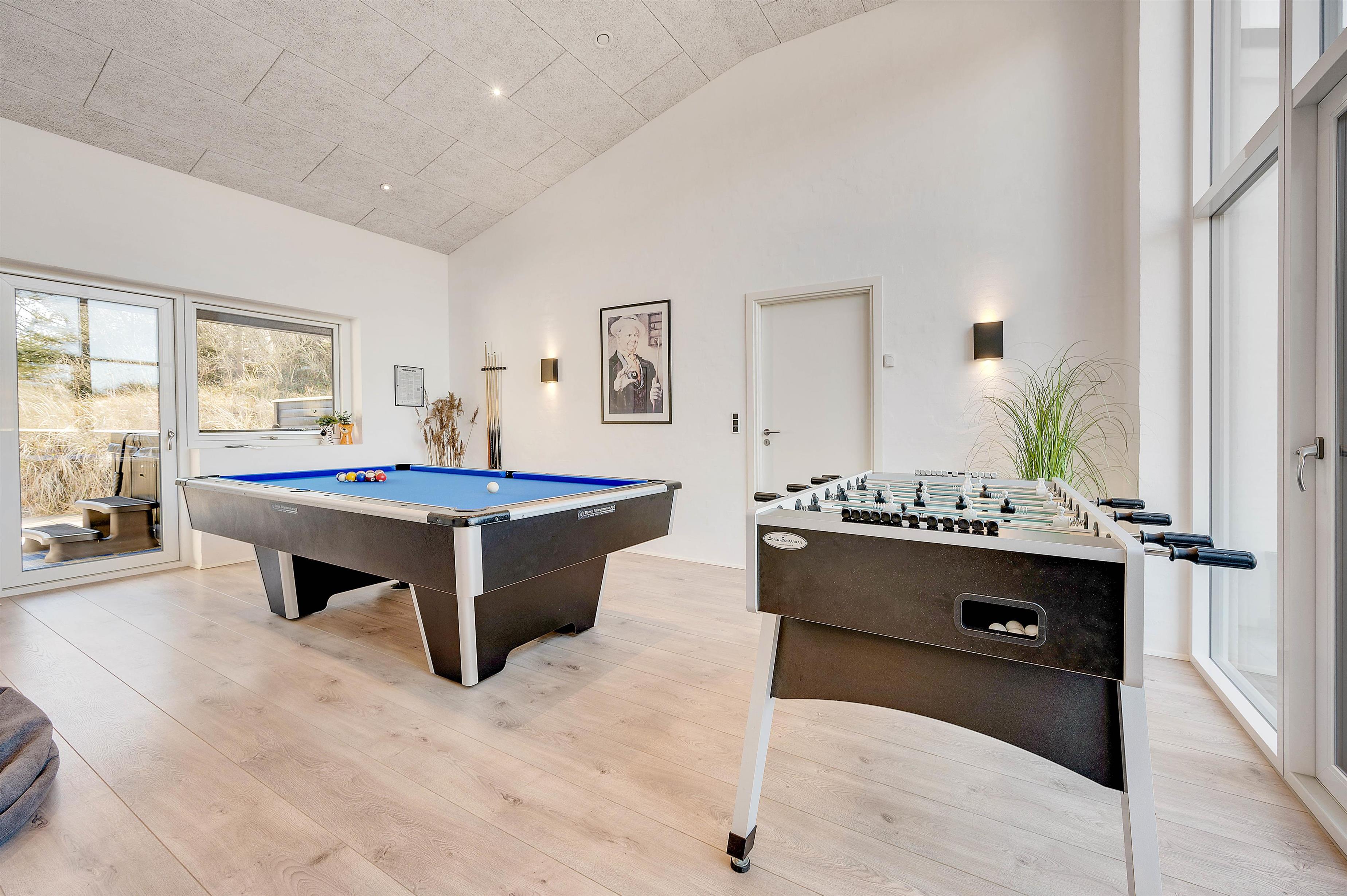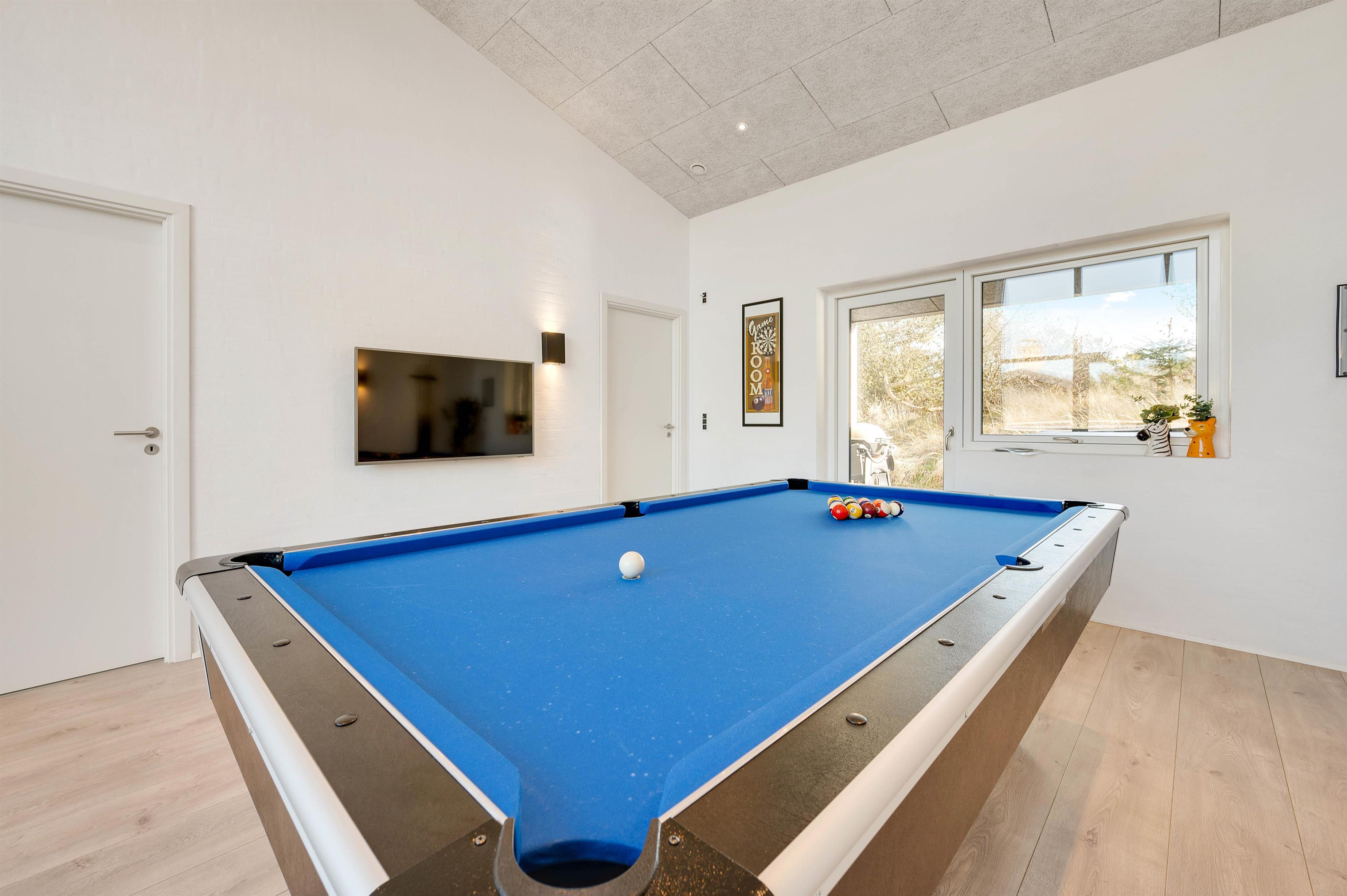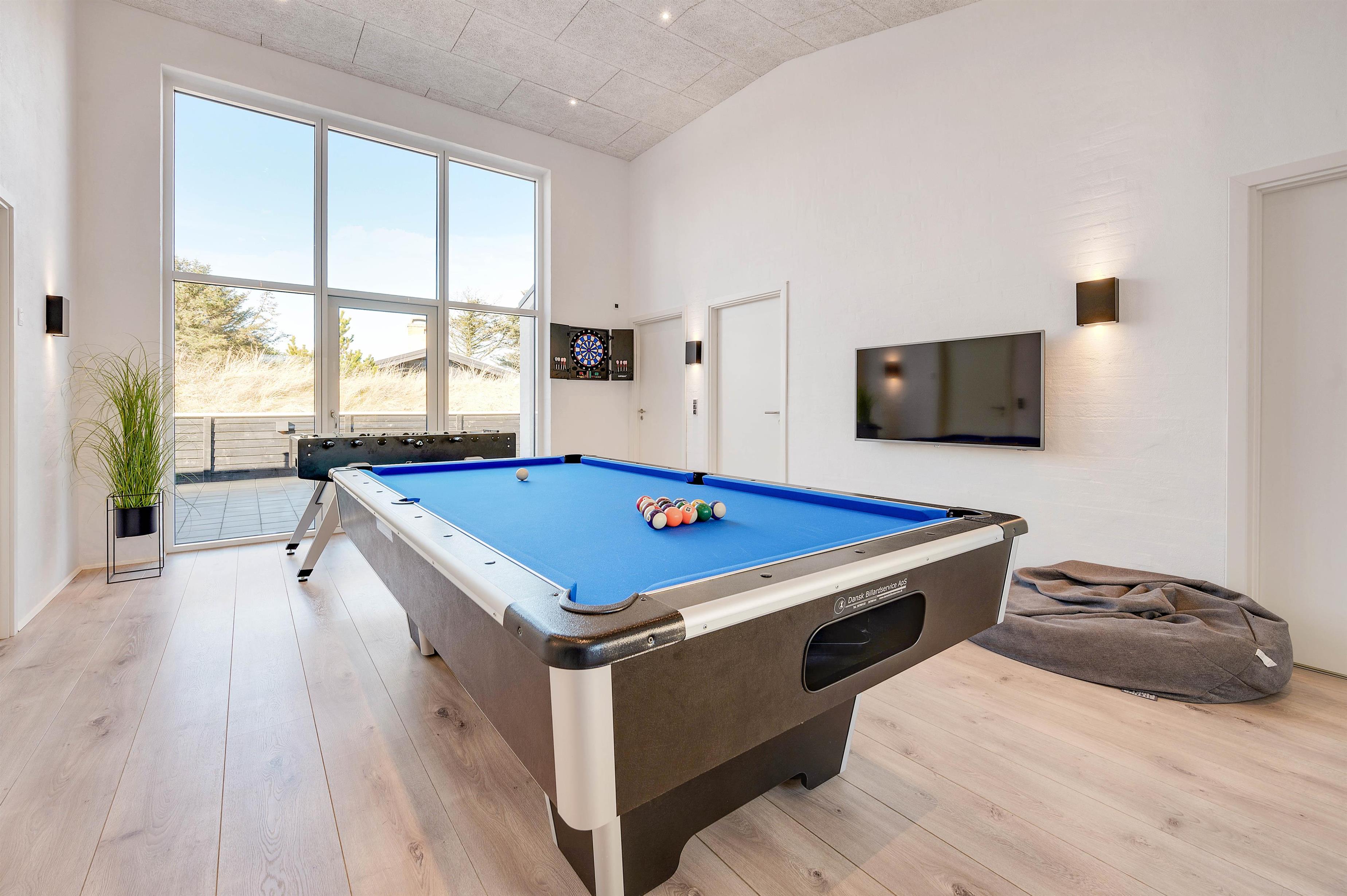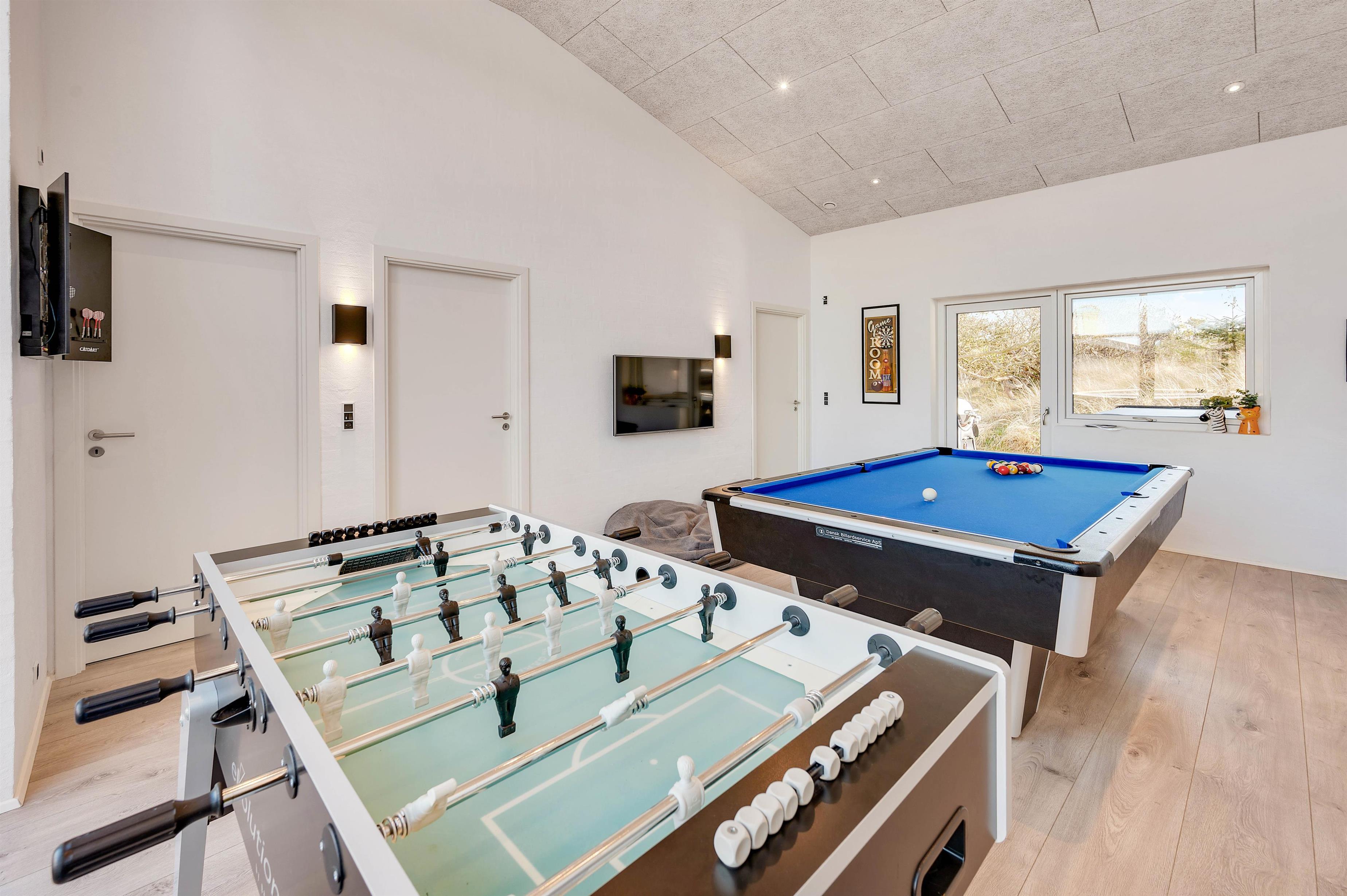 I kommer på ingen måde til at kede jer, mens I opholder jer på Skovdalen 6. Det skal det skønne aktivitetsrum nok sørge for. Her har I alt, hvad I har brug for til at sætte skub i aktiviteterne på jeres ferie. Her kan I forlyste jer med et spil pool eller bordfodbold. Der er ovenikøbet et lille afslapningsområde med fladskærm og sækkemøbler, hvor I kan tilslutte en spillekonsol og snuppe et spil.