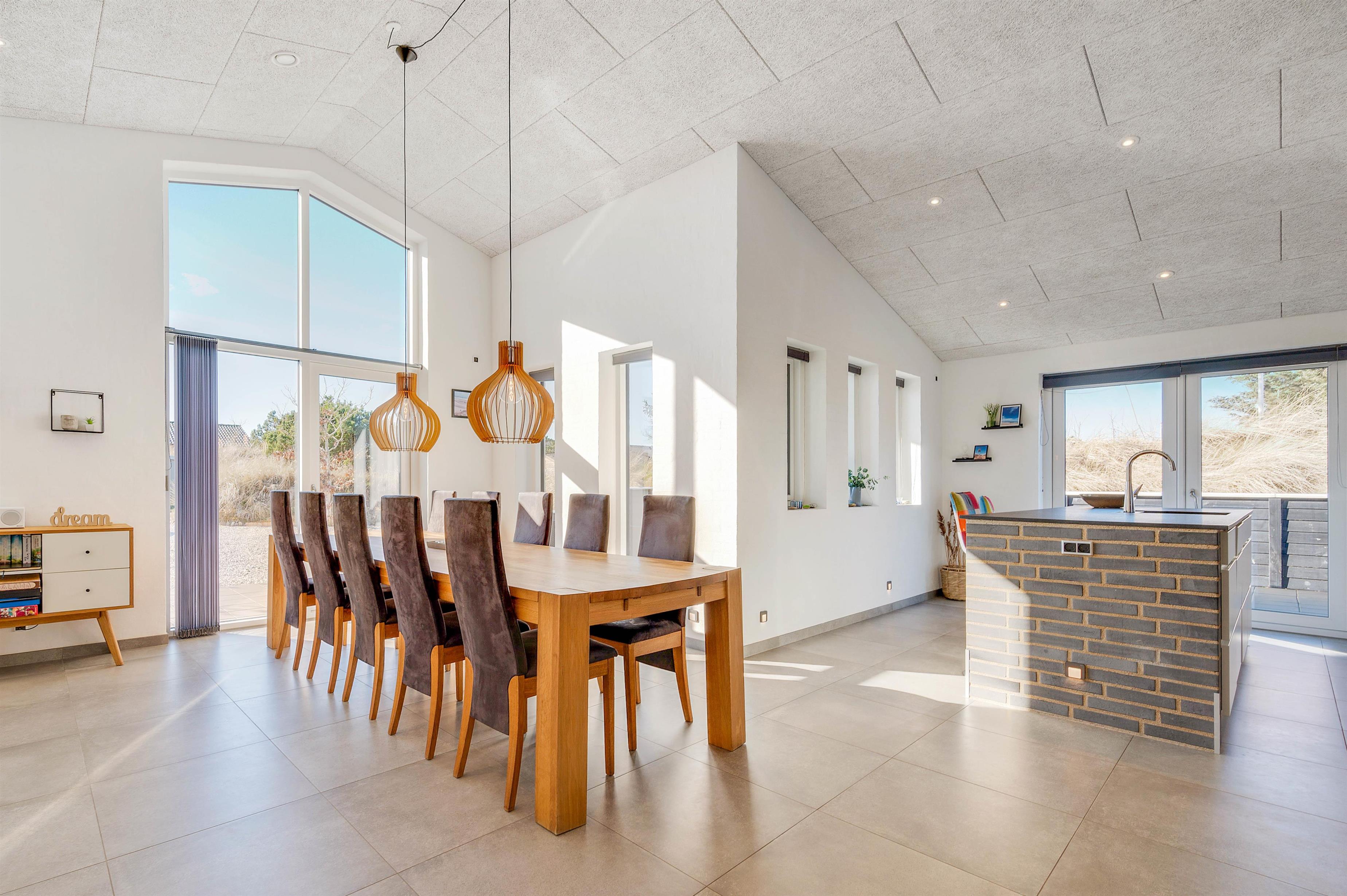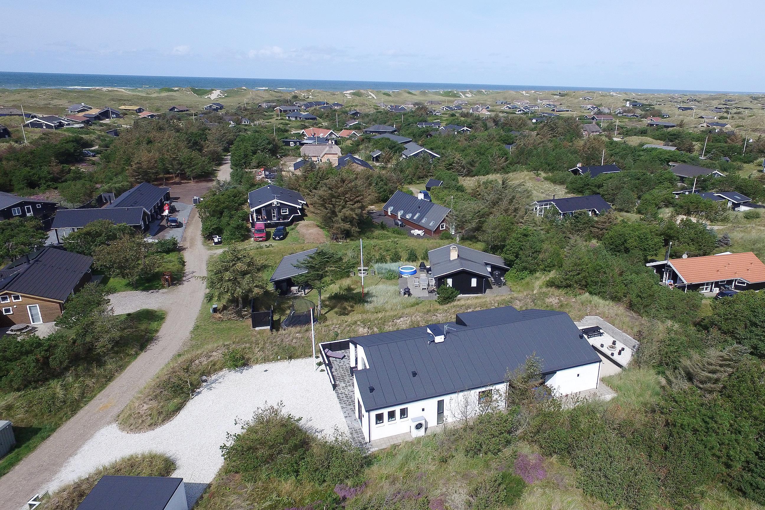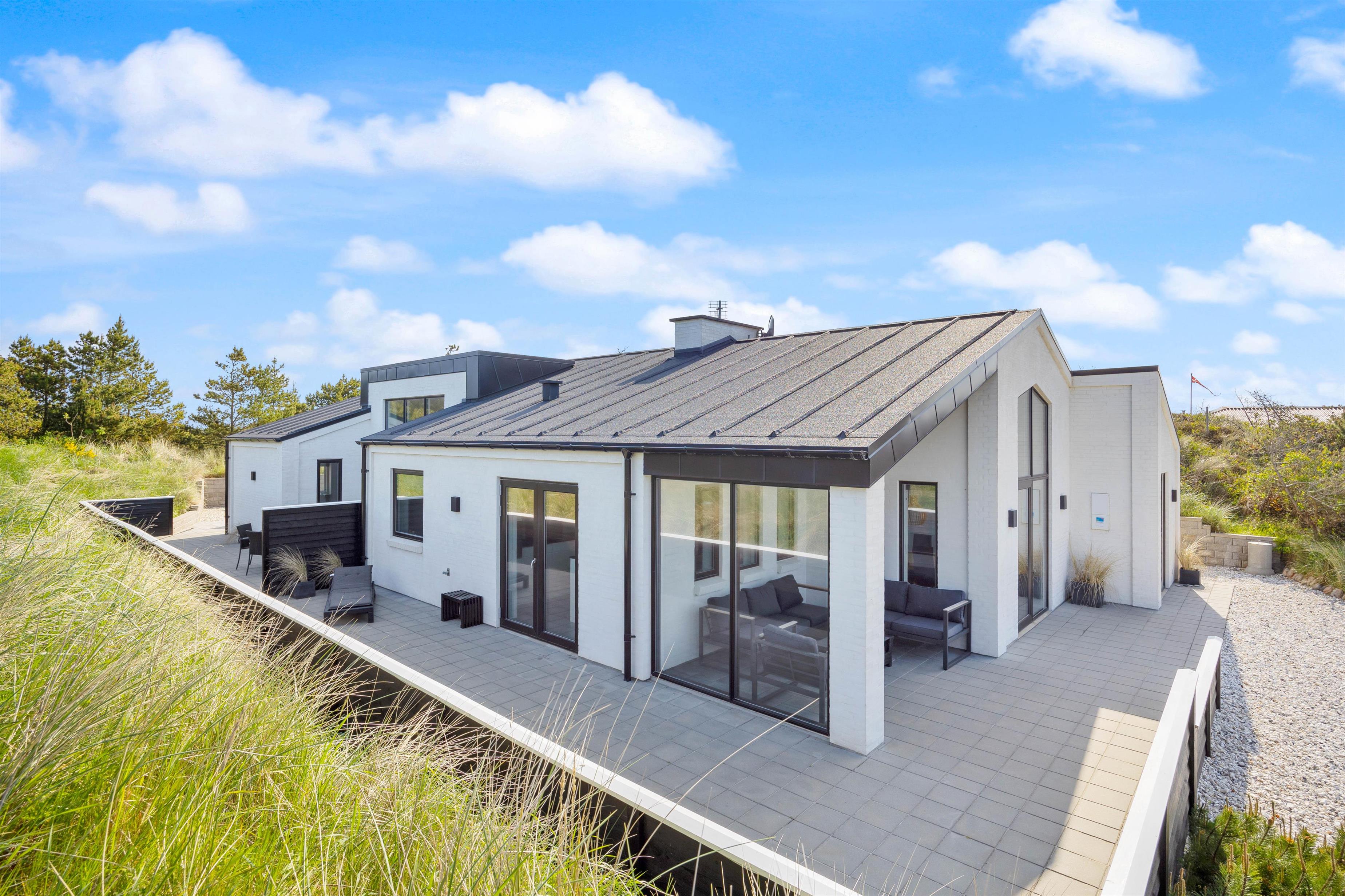 Trænger I til en afslappende ferie i udsøgte omgivelser nær Vesterhavet? Så vil dette feriehus med garanti falde i jeres smag. Her får I eksklusive omgivelser og kan se frem til en ferie med blandt andet badekar, sauna, aktivitetsrum og udespa. For ikke at glemme den lyse og elegante indretning, der præger hjemmet. I huset er der sovepladser til 8 gæster, der drømmer om en ferie lidt ud over det sædvandlige nær havet. Og jeres hund er også velkommen. Kører I i elbil, har I også mulighed for at lade bilen her. Husk at medbringe egen adapter for dette.