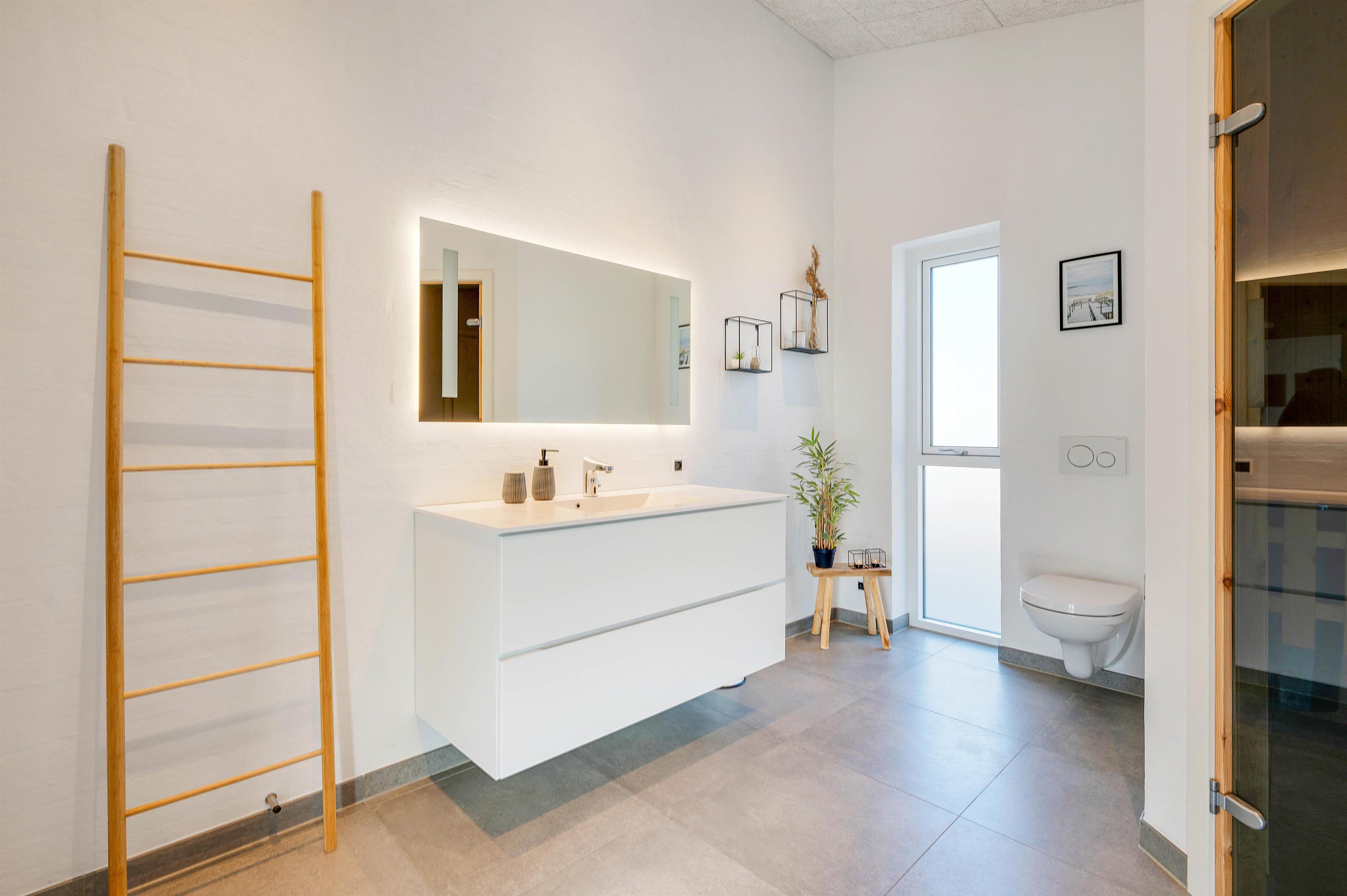 Huset er om noget garant for afslapning og wellness. Så trænger I til en stille stund med selvforkælelse, står huset klar til at indfri jeres ønsker. Det ene af husets 2 badeværelser er nemlig udstyret med både badekar og sauna, der især er velgørende efter en lang dag i den friske luft ved Vesterhavet.