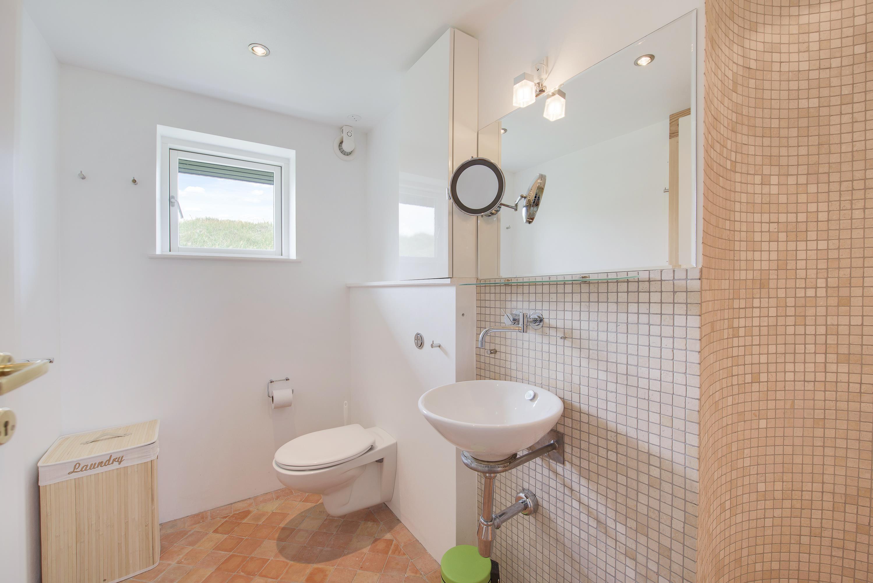 Mens I sidder i sofaen, kan I nyde udsigten igennem vinduerne mod klitterne og marken – det er feriestemning i højeste grad. Soveværelset har sin helt egen indretning, og gennem vinduerne kan I følge med i de smukke solnedgange inden sengetid. I kan få en god nats søvn i de behagelige kvalitetssenge, så I vågner veludhvilede og friske og klar ti lnye eventyr på ferien. Det funktionelle badeværelse rummer et lækkert brusehjørne og har gulvvarme, så I ikke fryser om fødderne på køligere dage.