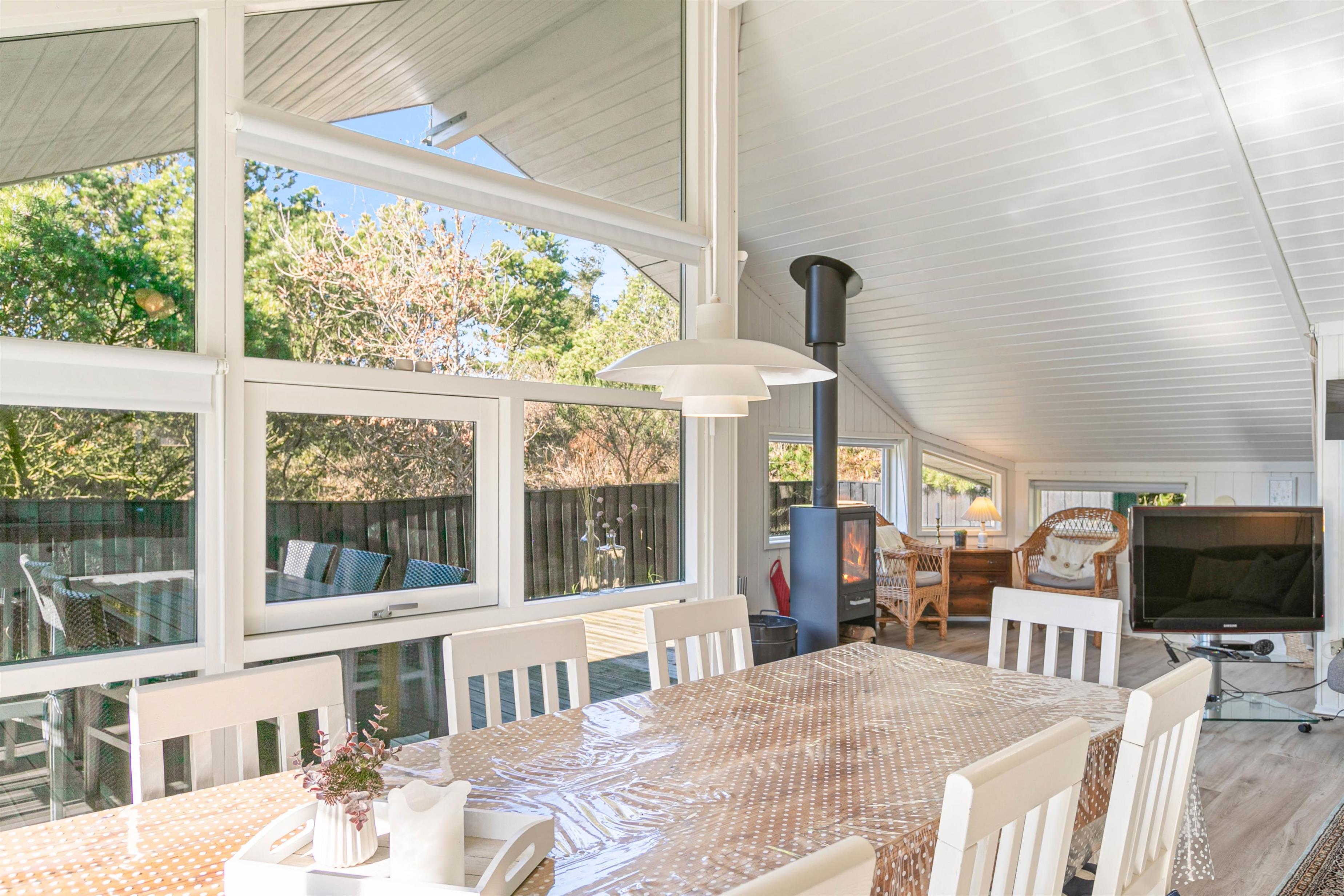Et af sommerhusets højdepunkter er den indbydende brændeovn, der kan være med til at skabe en hyggelig stemning på køligere dage. For jeres bekvemmelighed, er sommerhuset også udstyret med en moderne luft-til-luft varmepumpe, der sikrer et behageligt indeklima året rundt.