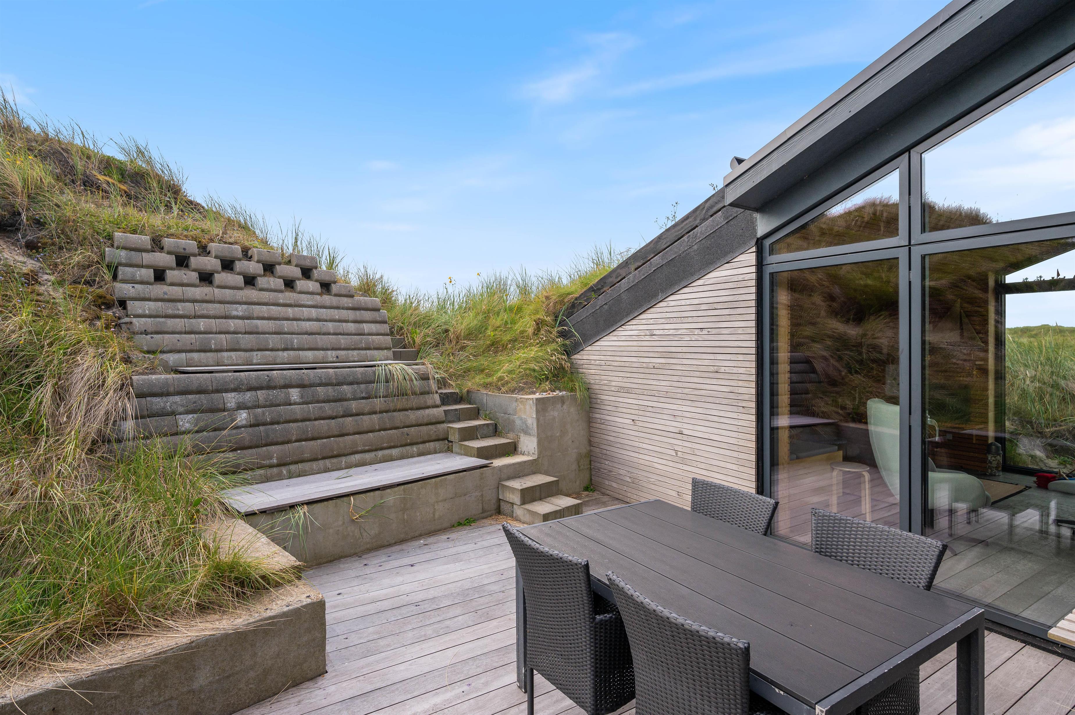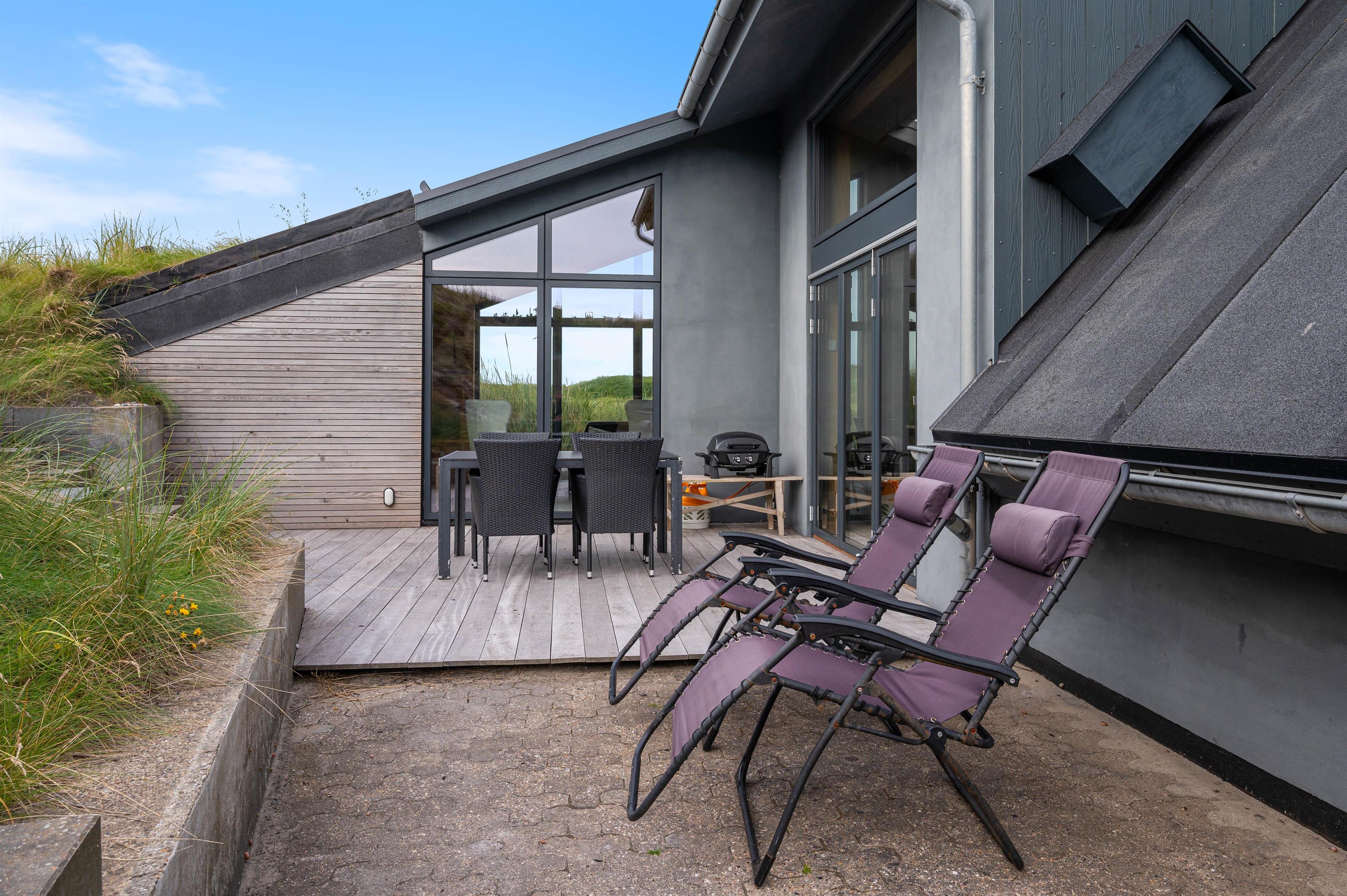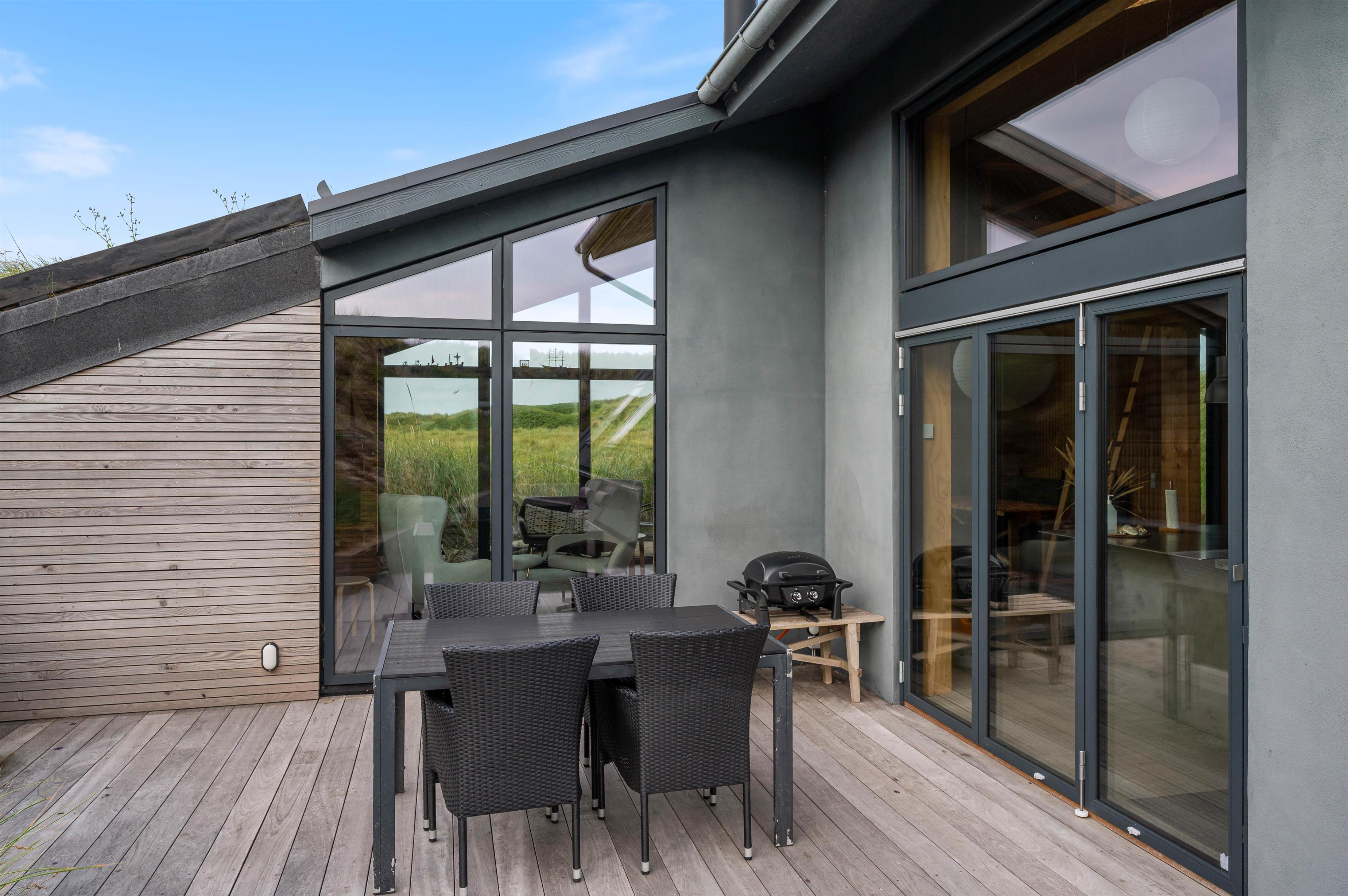Det dejlige udendørs område byder på hygge og nærvær på skønne sommeraftener. Her har I mulighed for at benytte jer af sommerhusets tilhørende havemøbler og liggestole. Desuden finder I her en gasgrill, hvor I hurtigt og nemt kan tilberede et lækkert aftensmåltid med et velsmagende glas vin eller lignende.