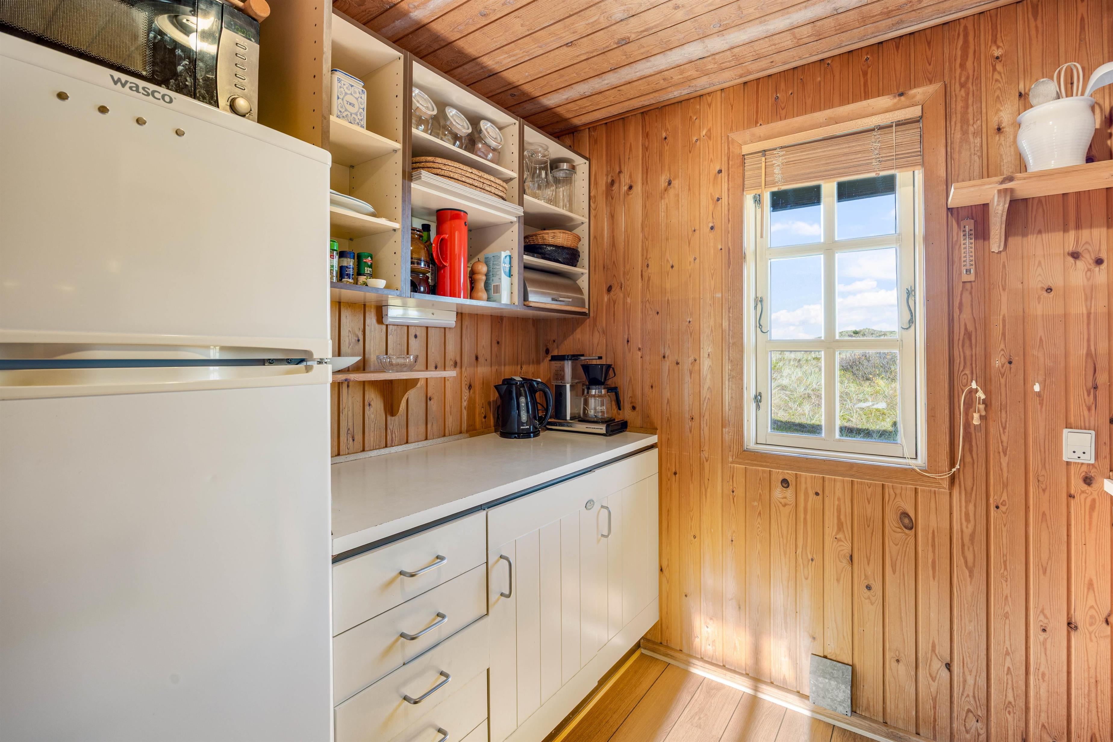 Efter en lang dag i den friske havluft er I hurtigt hjemme igen, og her kan I tanke energi til en ny dag på sofaen med en god bog og den knitrende brændeovn i baggrunden, der spreder masser af varme og hyggelig feriestemning. Huset fremstår velholdt, og vil med sine indvendige træbeklædning giver jer en autentisk sommerhusfornemmelse.
