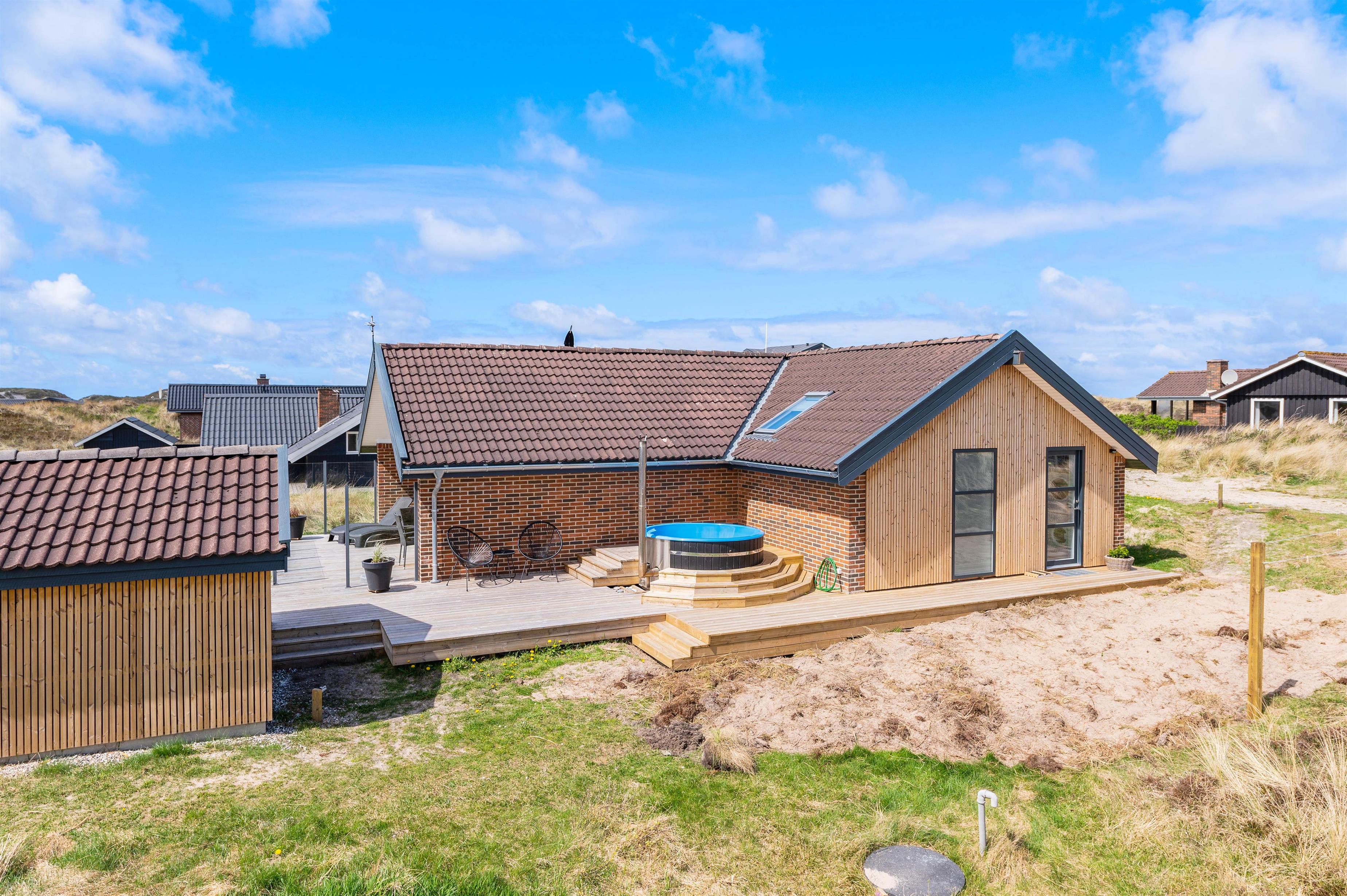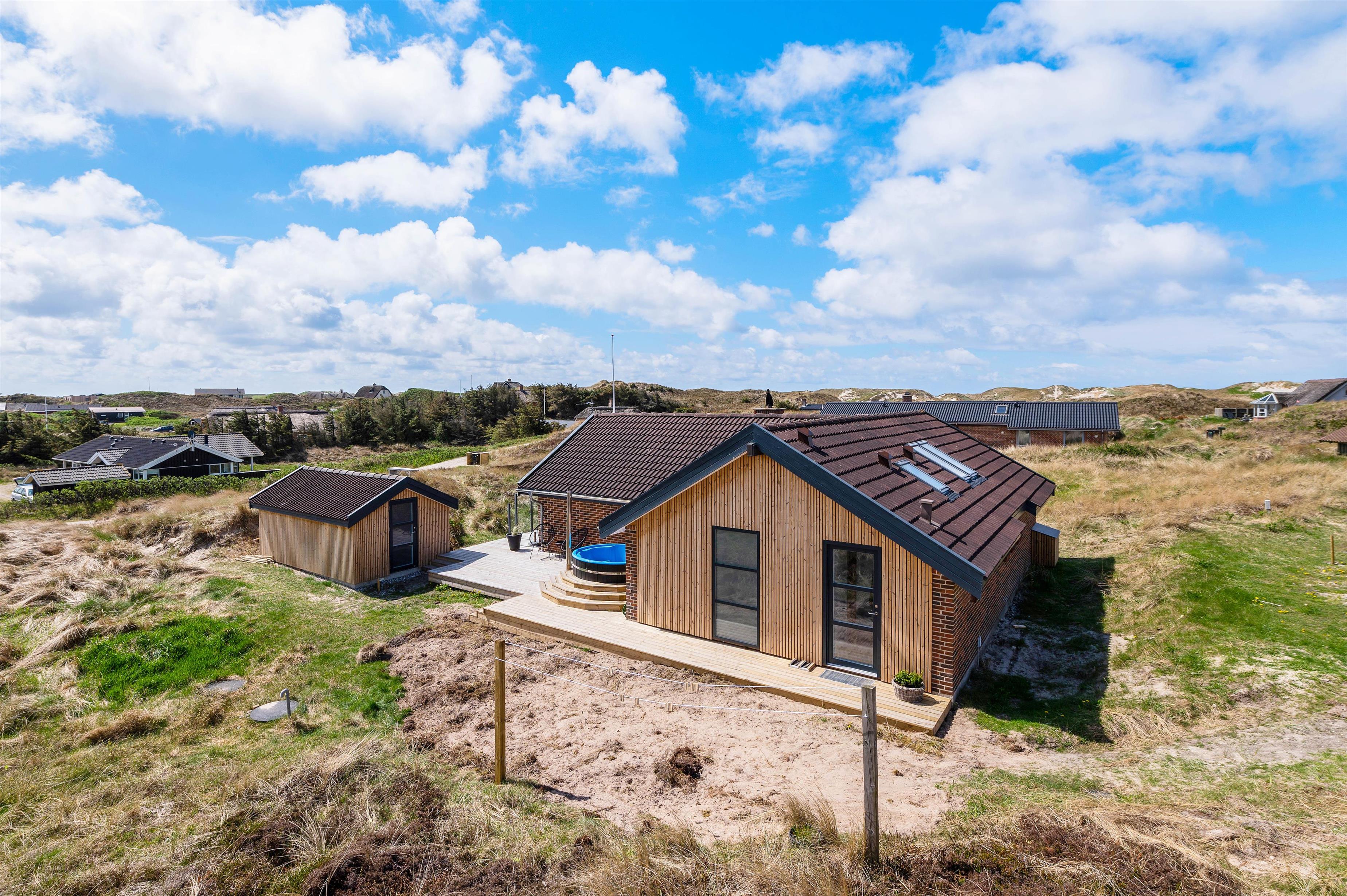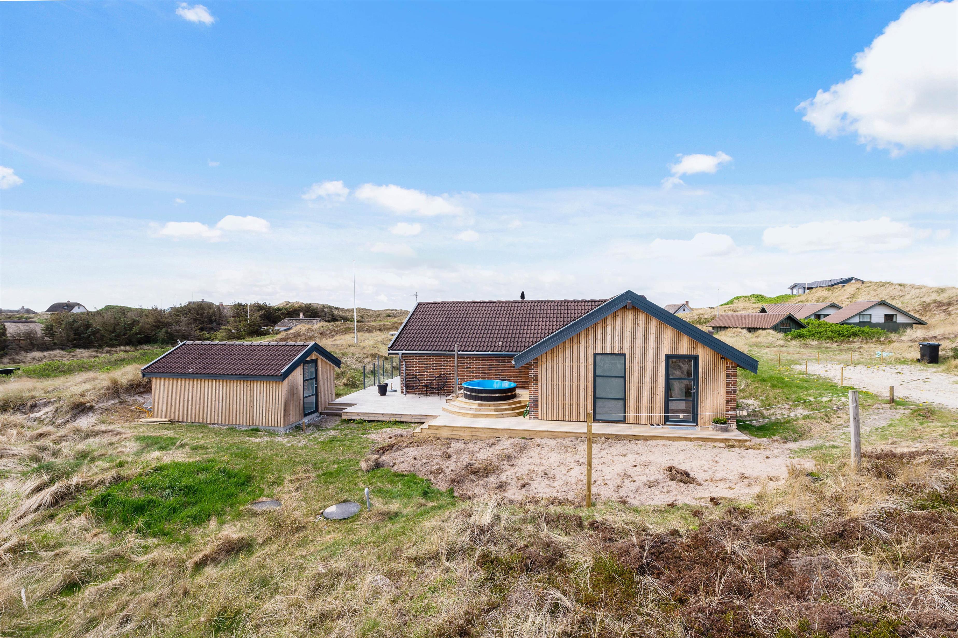 Tank nye kræfter i saunaen efter en forfriskende spadseretur langs vandet, eller nyd udsigten til Houvigs klitlandskab fra det varme vildmarksbad: Det er det perfekte afbræk på ferien!