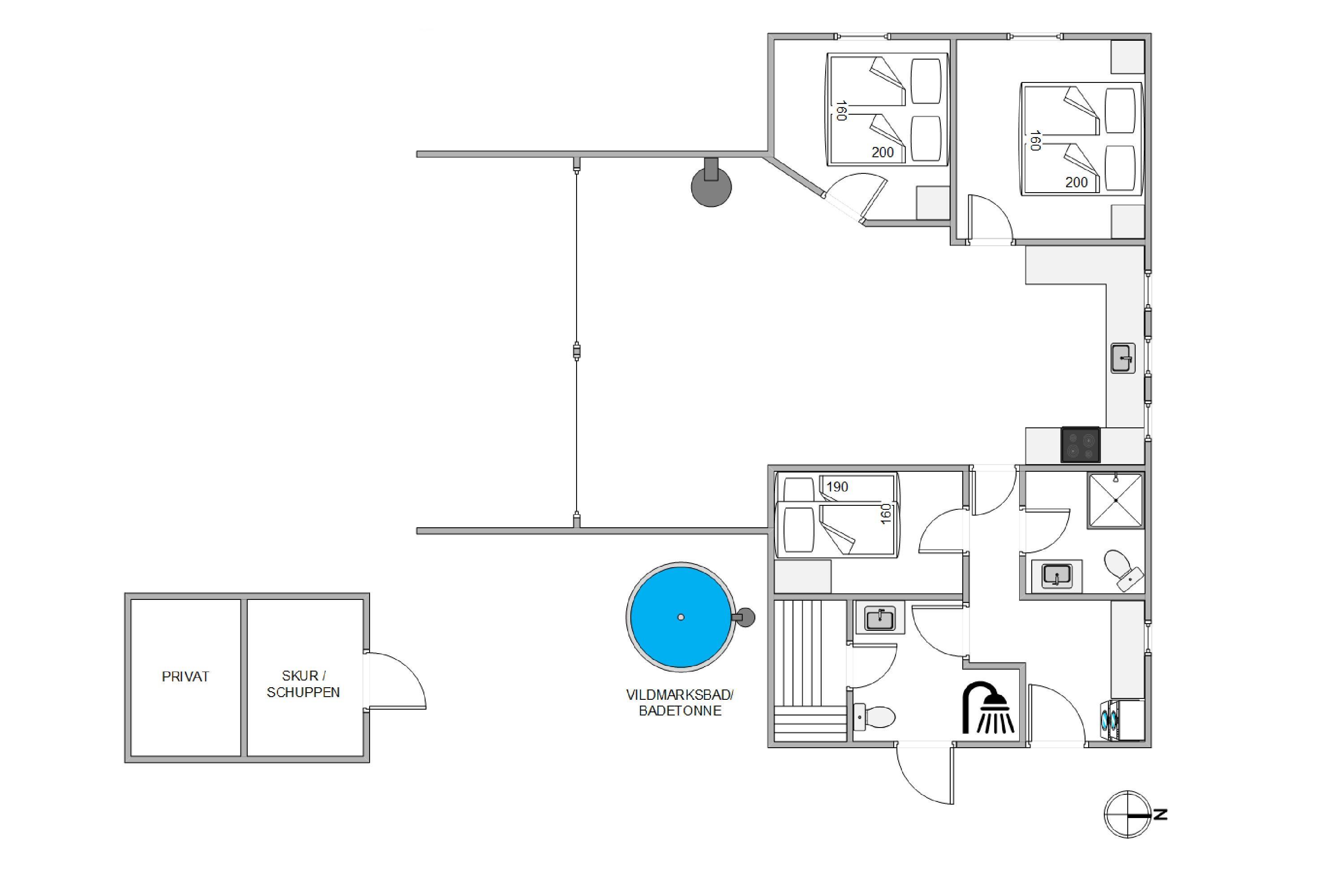 Afslapning og velvære er to af nøgleordene på Regnspovedalen 46. Her kan du nemlig tilføre ferien lidt ekstra wellnessfornemmelse – enten i saunaen, som er tilgængelig fra feriehusets badeværelse, eller i det lækre vildmarksbad på terrassen.