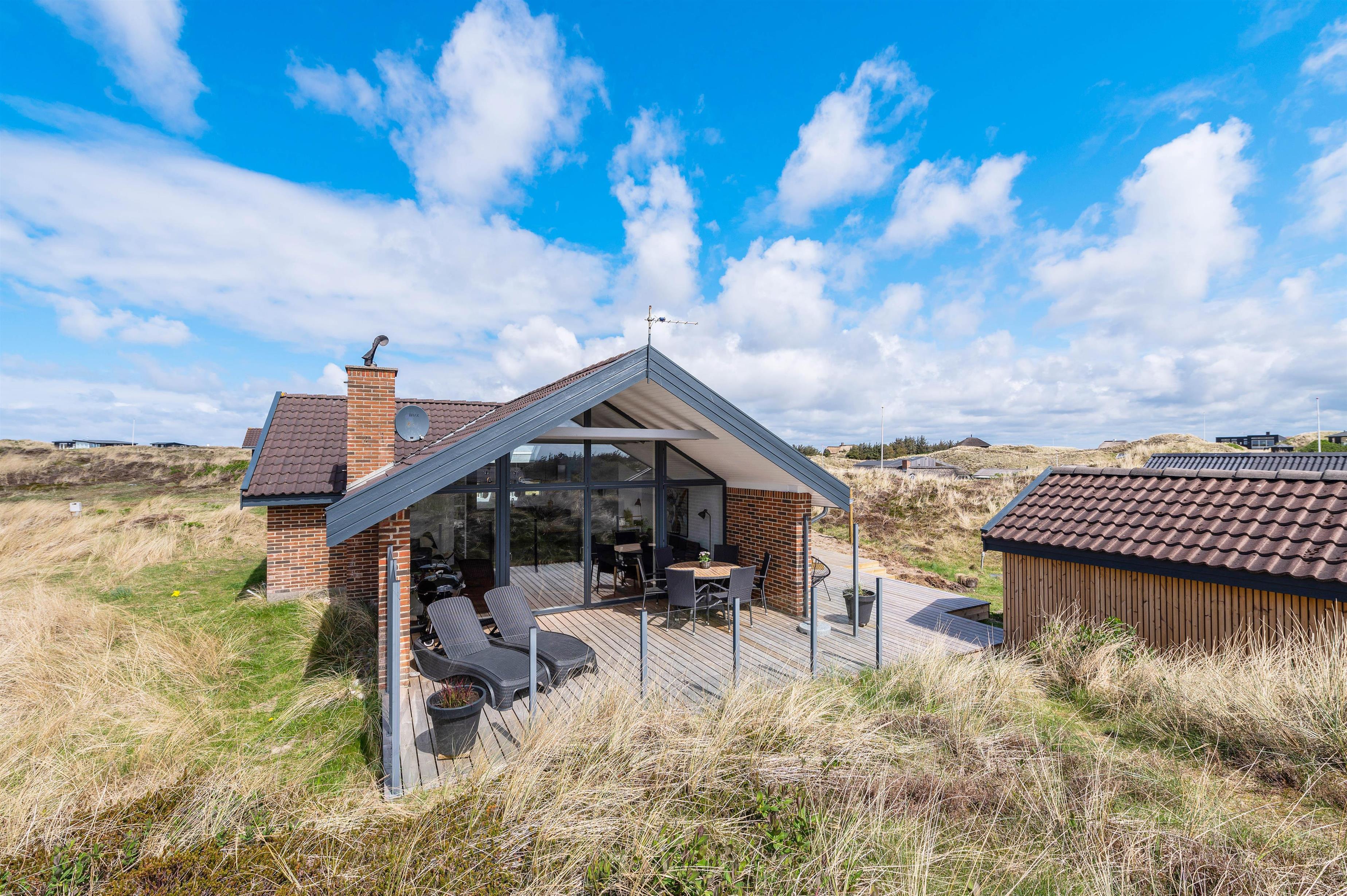 Kun 350 meter fra det brusende Vesterhav finder du dette skønne sommerhus til 6 personer. Her er rammerne i den grad sat for en afslappende ferie i Houvigs naturskønne omgivelser – blandt andet med egen sauna og vildmarksbad på terrassen! Hunden er også velkommen på ferieadressen.