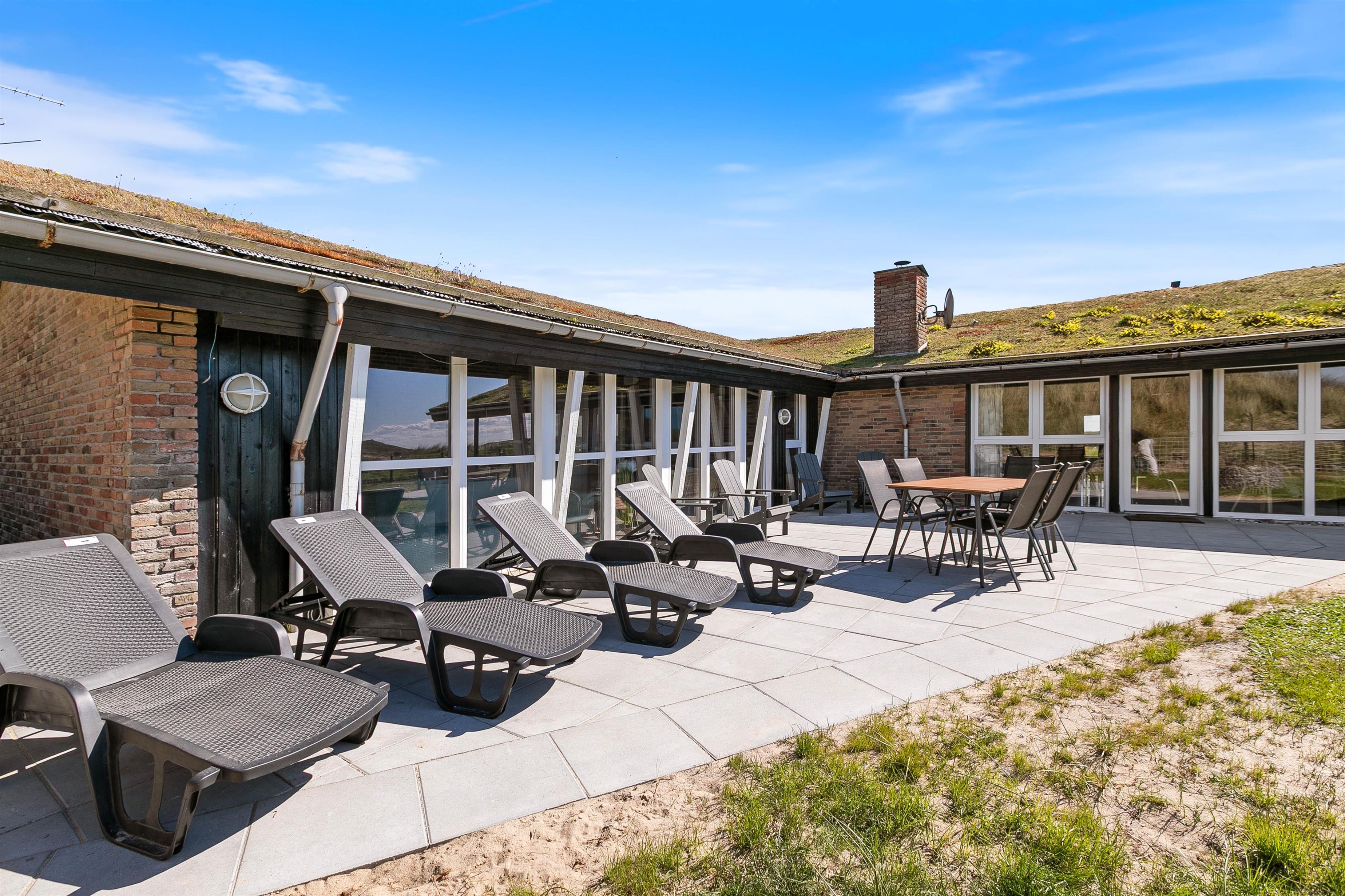 Med direkte udgang fra køkkenet, finder i sommerhusets store terrasse, som er delvis afskærmet, delvis åben og helt overdækket, hvor det er oplagt at sætte sig ud havemøblerne på de varme sommerdage. Det er også her i finder Sommerhusets tilhørende grill, hvor familiens grillmester kan vise sine evner, og tilberede et lækkert grillmåltid til resten af familien. Er I til ekstra afslapning og solbadning, kan I lægge jer ud på en af sommerhusets tilhørende solsenge, og bare nyde at I har ferie.