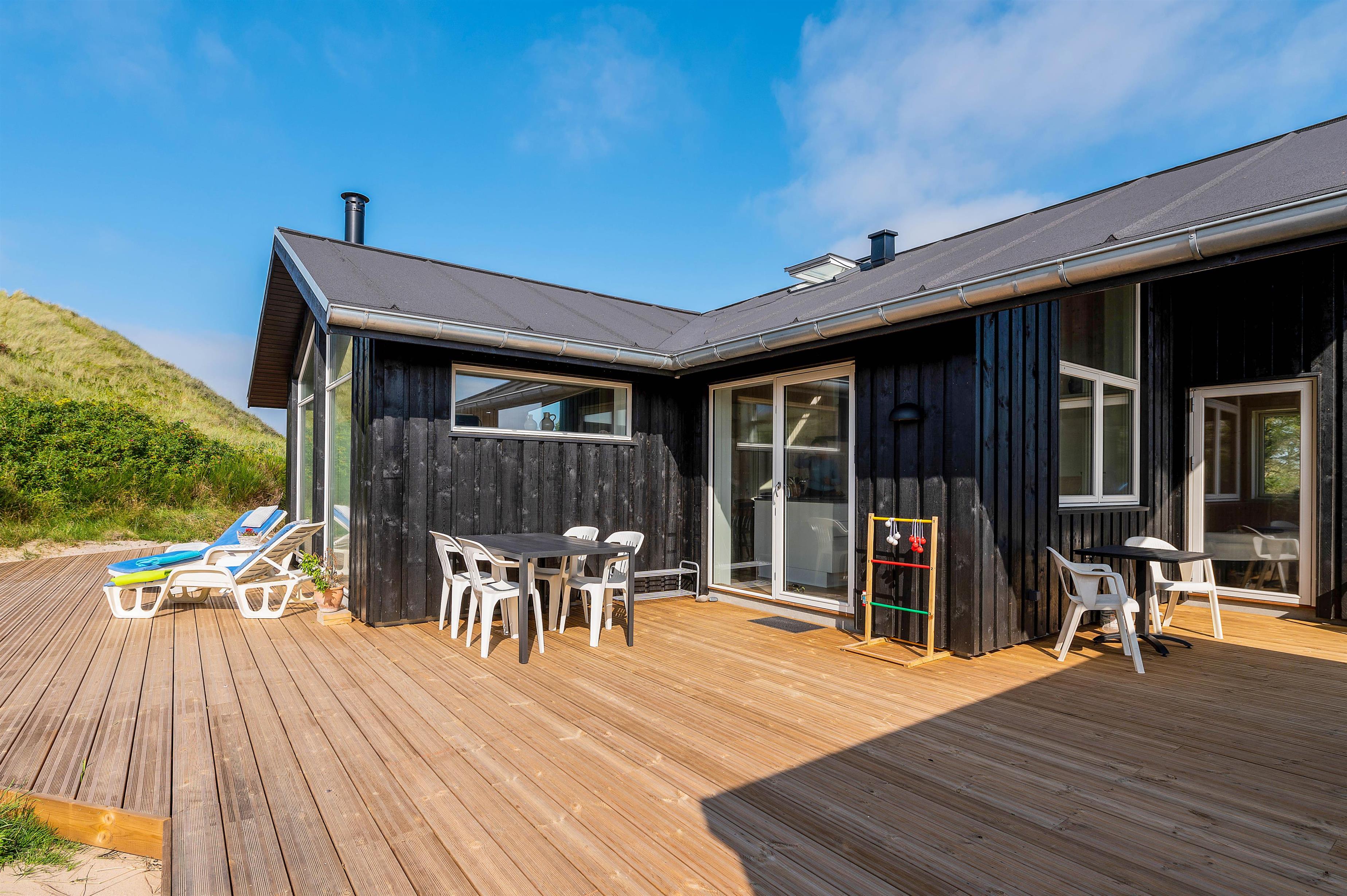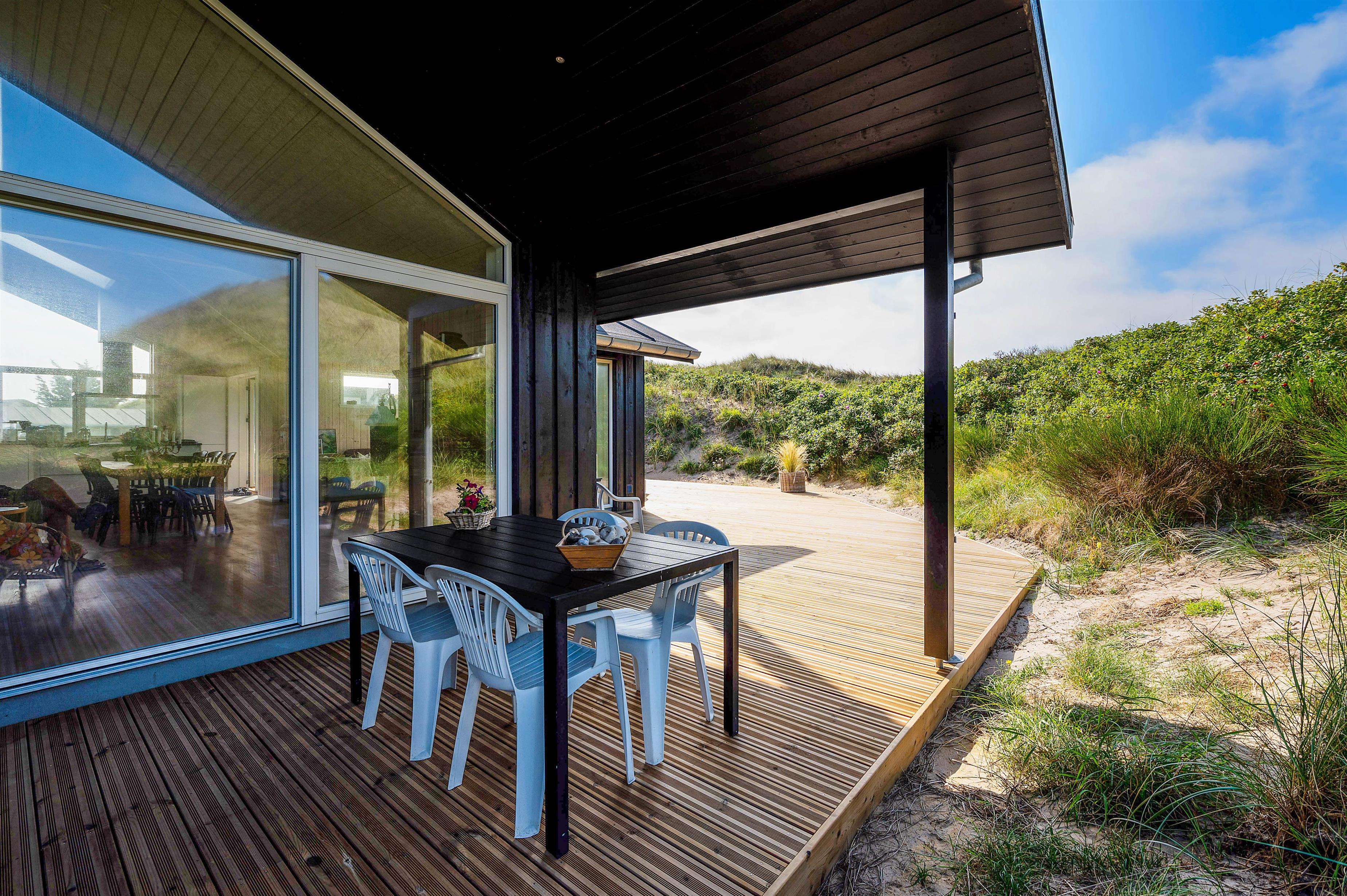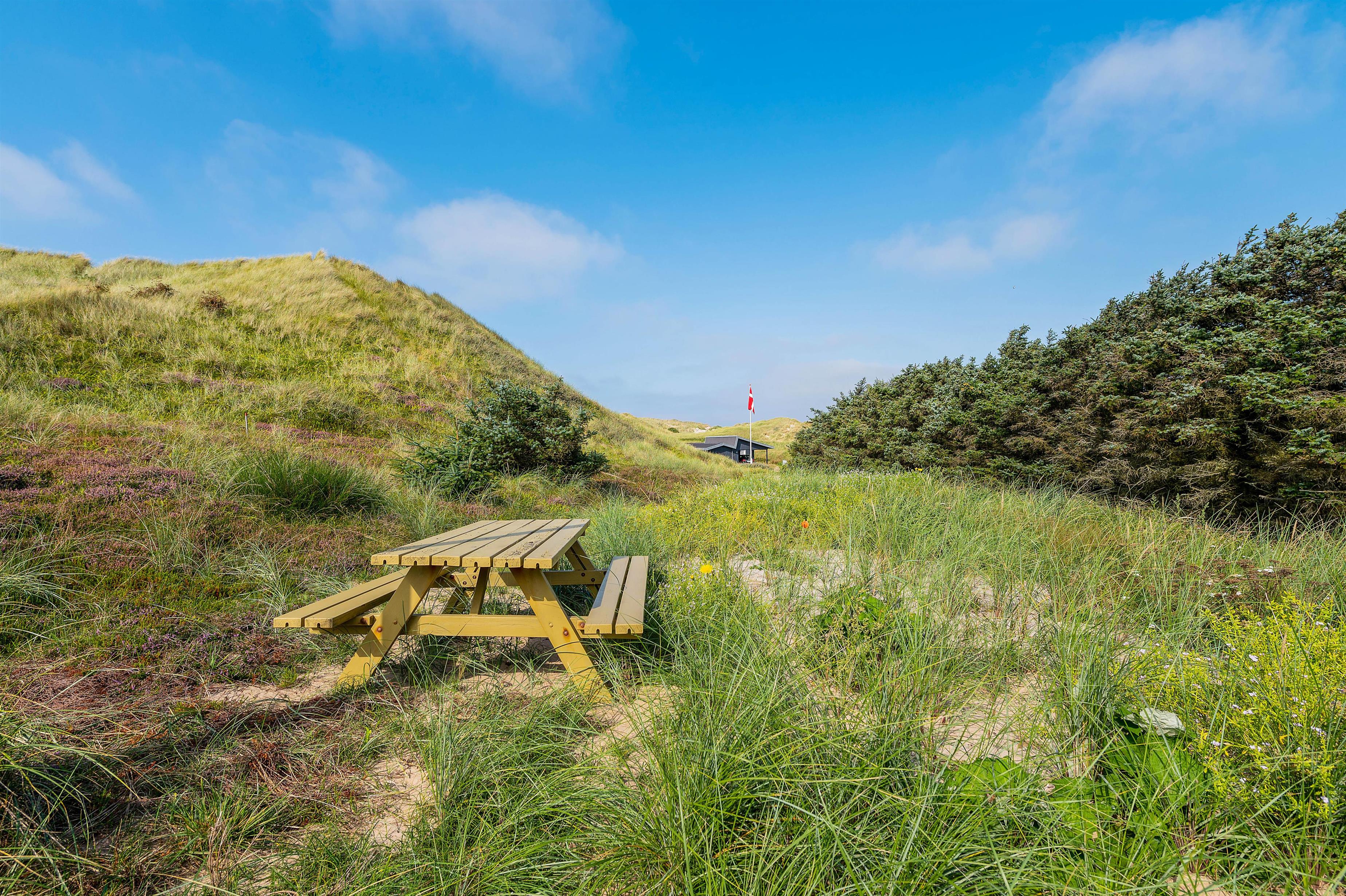 Feriehuset på Krogen 73 ligger på en godt 3000 m2 stor naturgrund, kun fem minutters gang fra stranden og det brusende Vesterhav. På grunden finder I 2 dejlige terrasser, den ene er sydvendt og overdækket, og den anden er åben og mod havet. Her kan I tilbringe mange dejlige feriestunder sammen, og der er også en gasgrill, hvor I kan tilberede en lækker middag, mens I nyder en drink i aftensolen. Feriehuset råder også over havemøbler og solvogn.