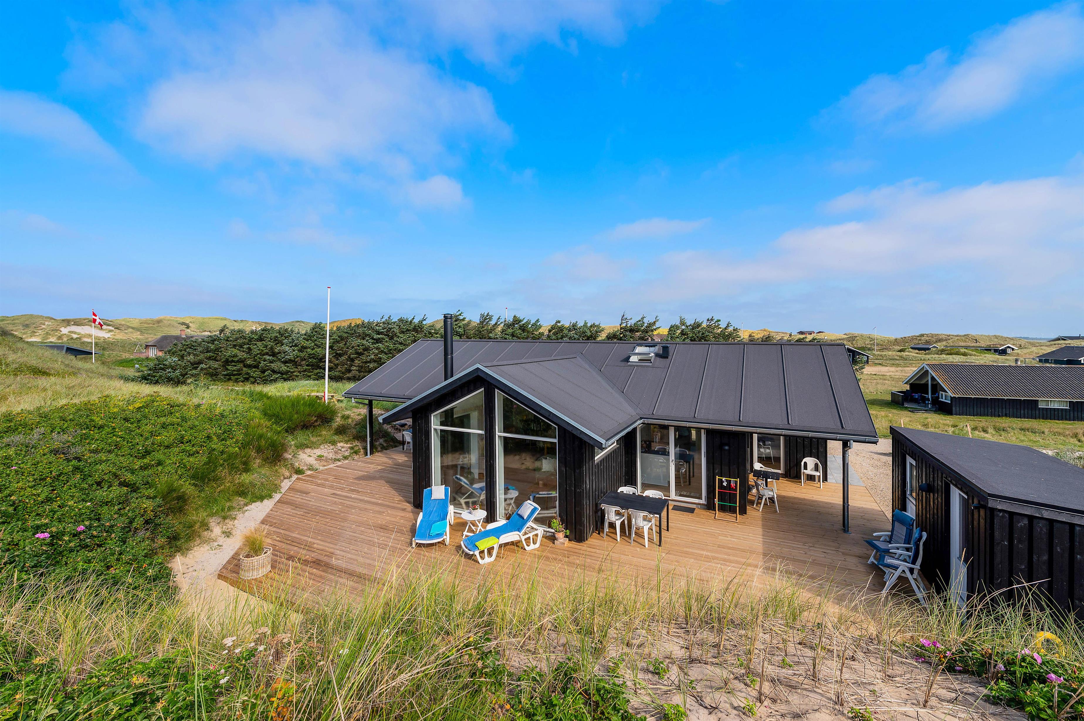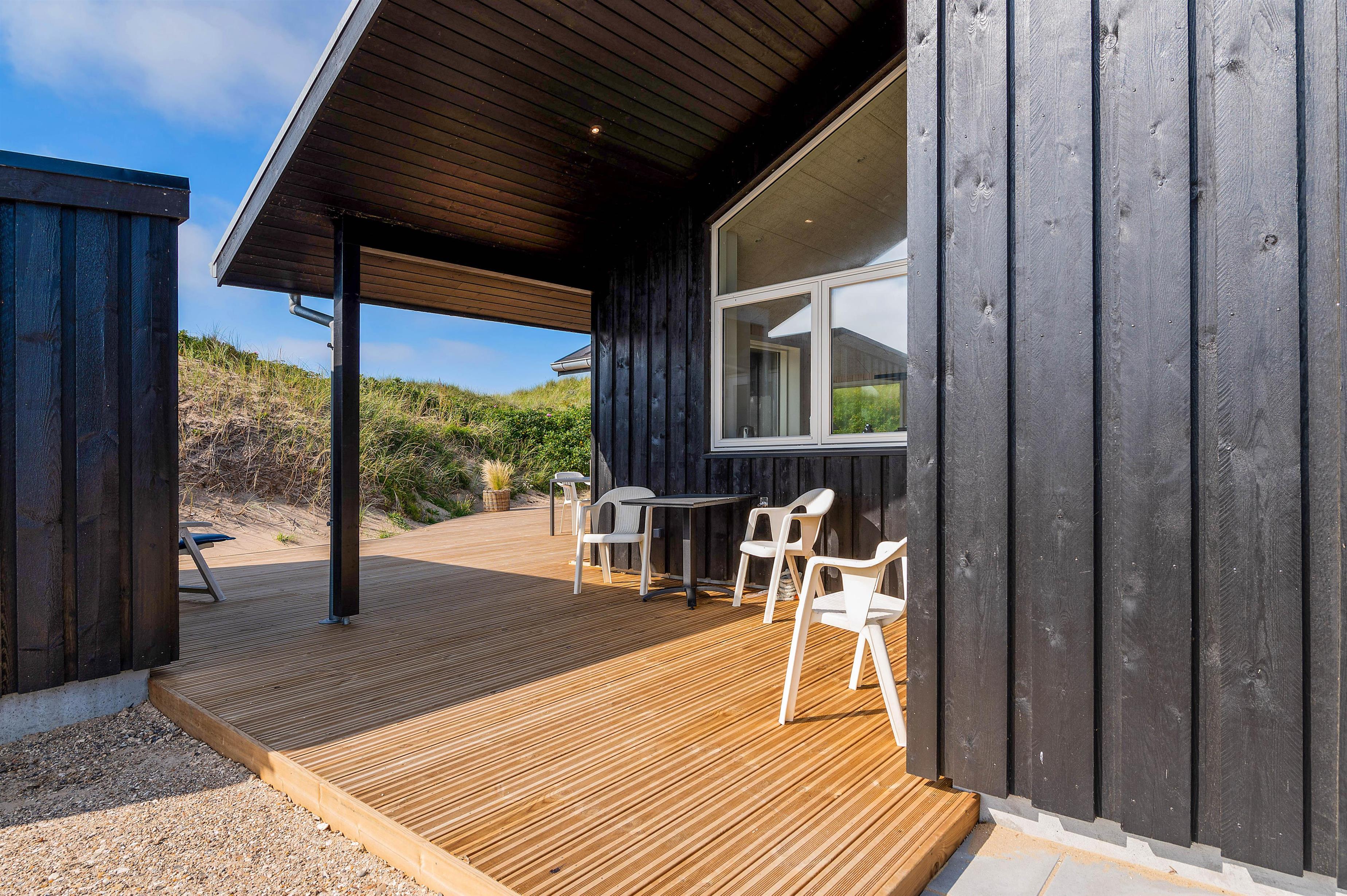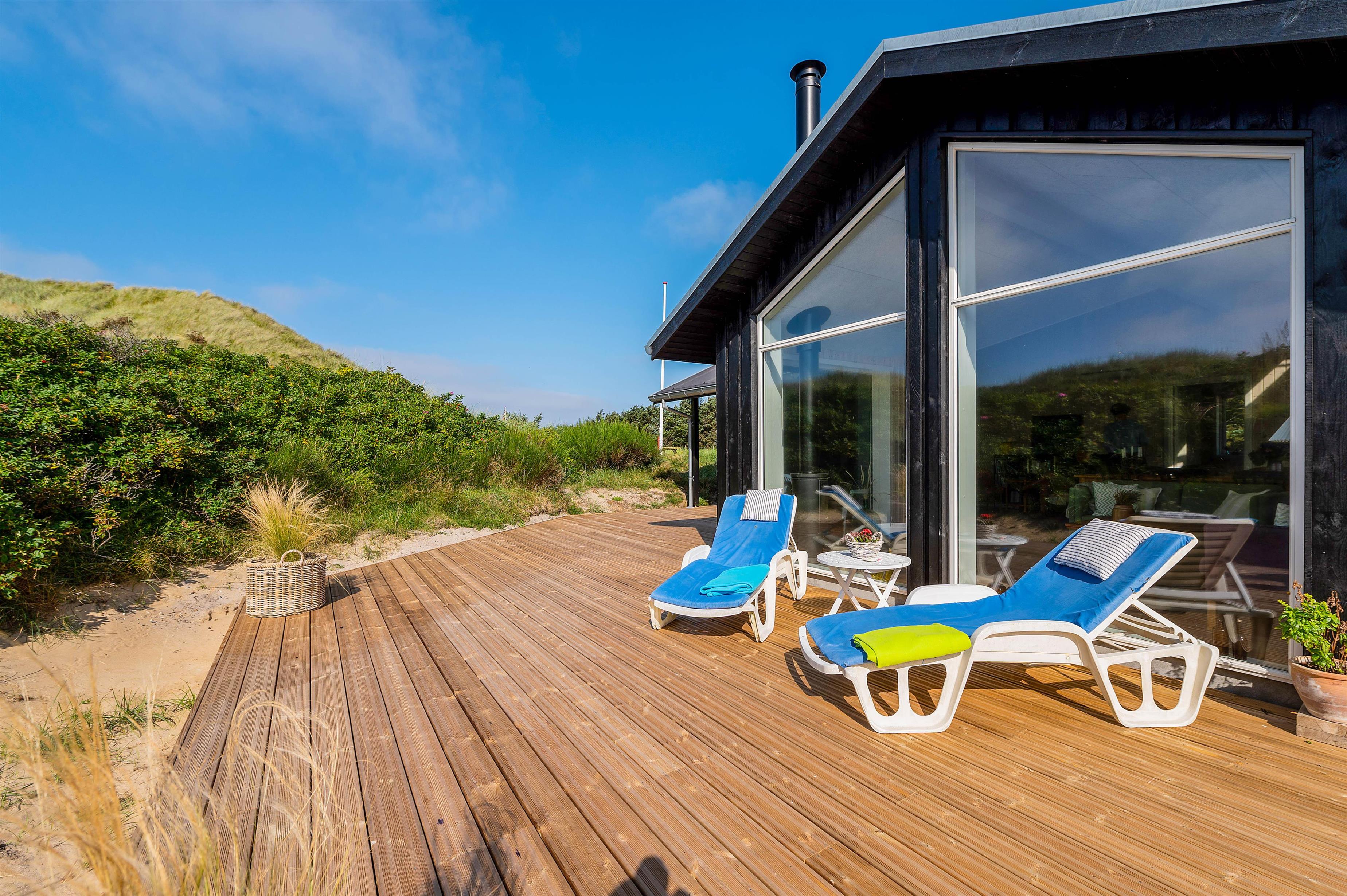 Feriehuset på Krogen 73 ligger på en godt 3000 m2 stor naturgrund, kun fem minutters gang fra stranden og det brusende Vesterhav. På grunden finder I 2 dejlige terrasser, den ene er sydvendt og overdækket, og den anden er åben og mod havet. Her kan I tilbringe mange dejlige feriestunder sammen, og der er også en gasgrill, hvor I kan tilberede en lækker middag, mens I nyder en drink i aftensolen. Feriehuset råder også over havemøbler og solvogn.