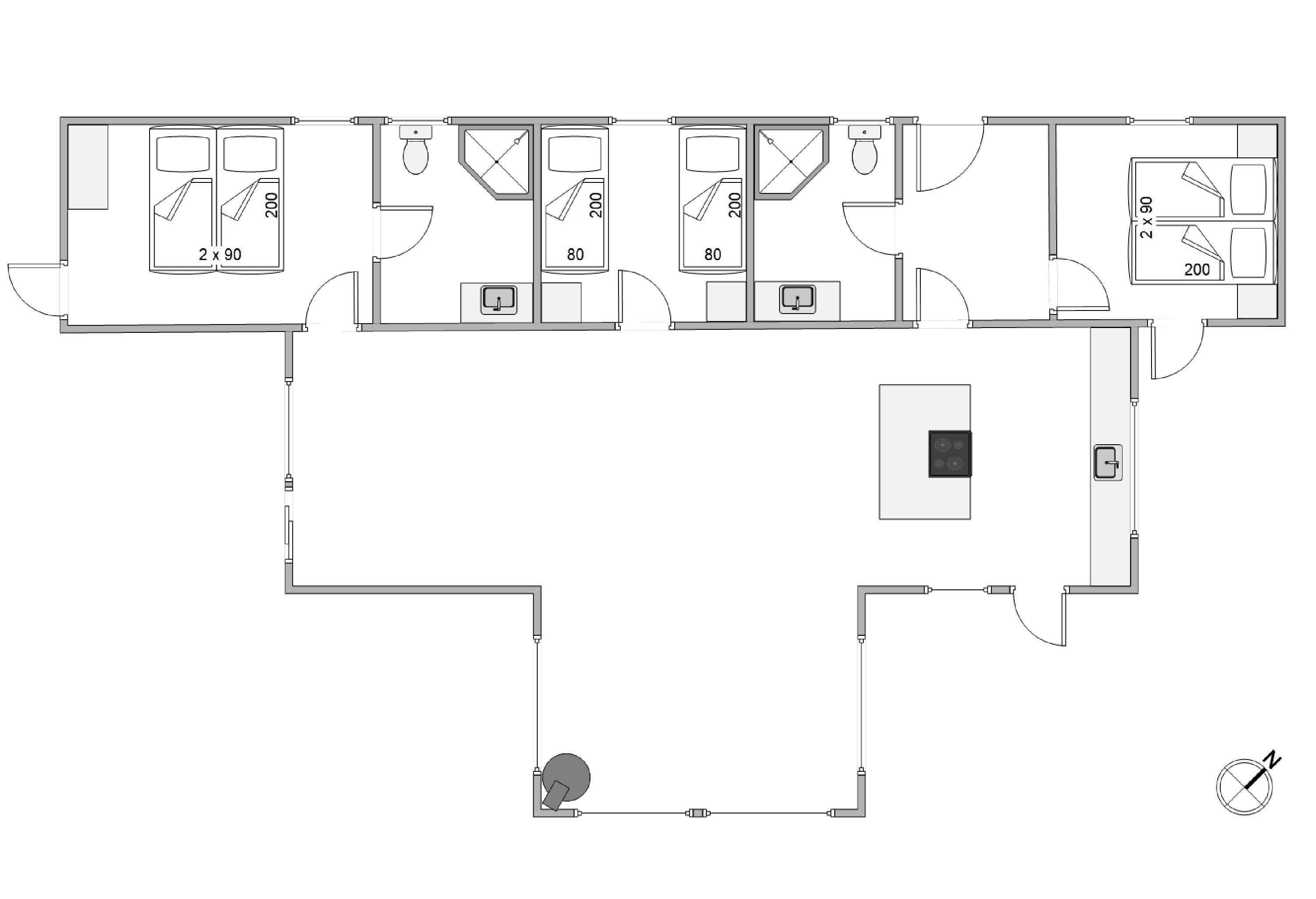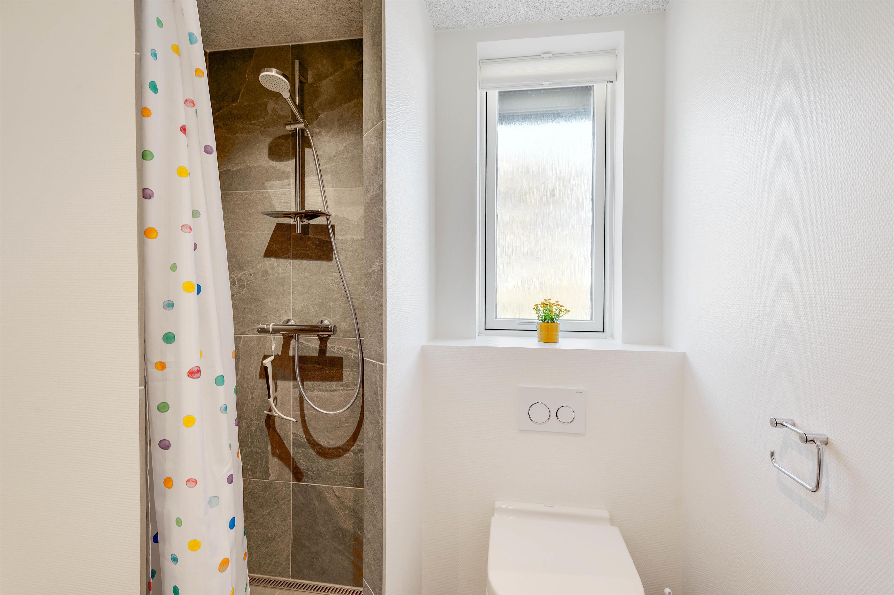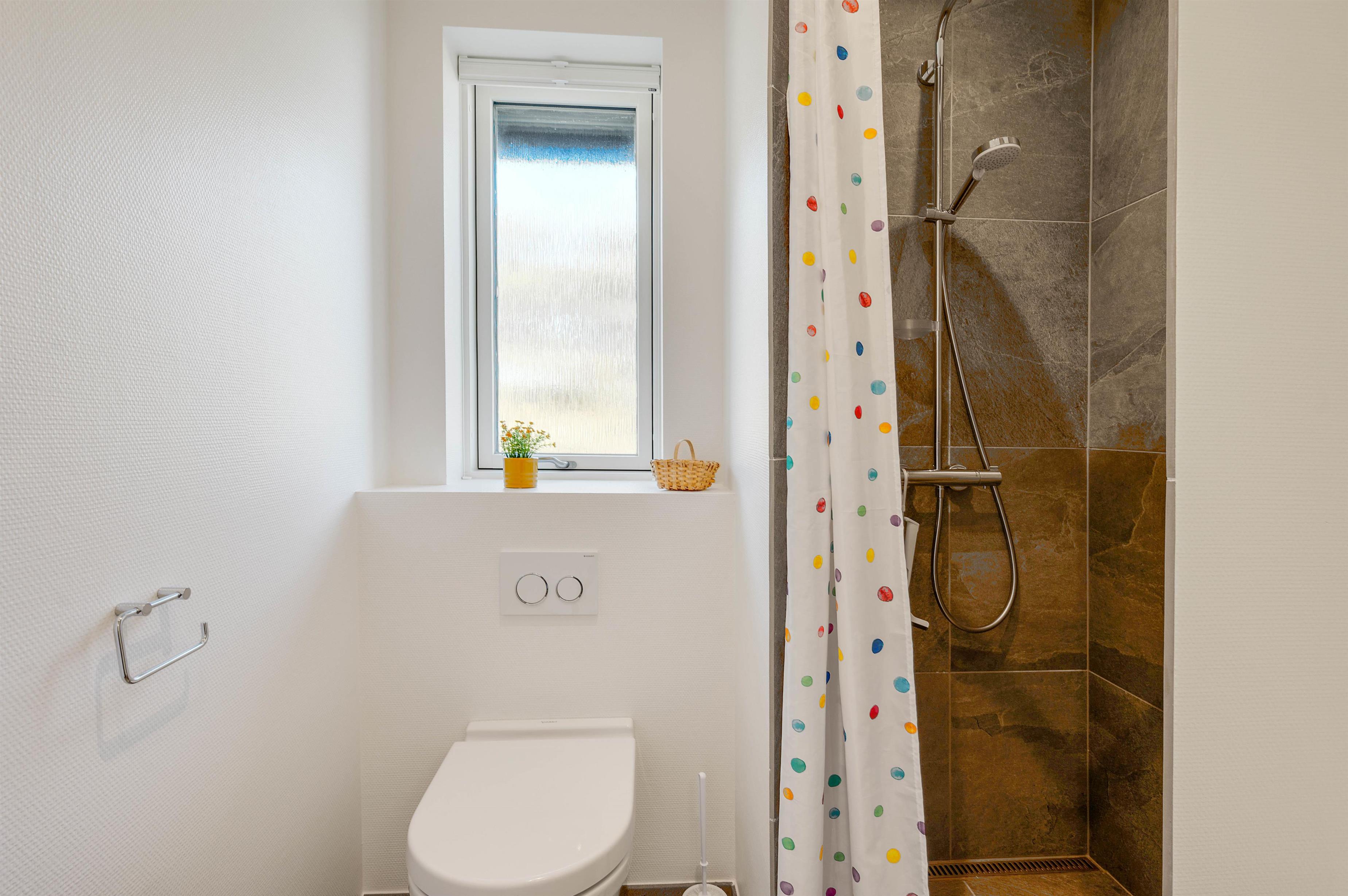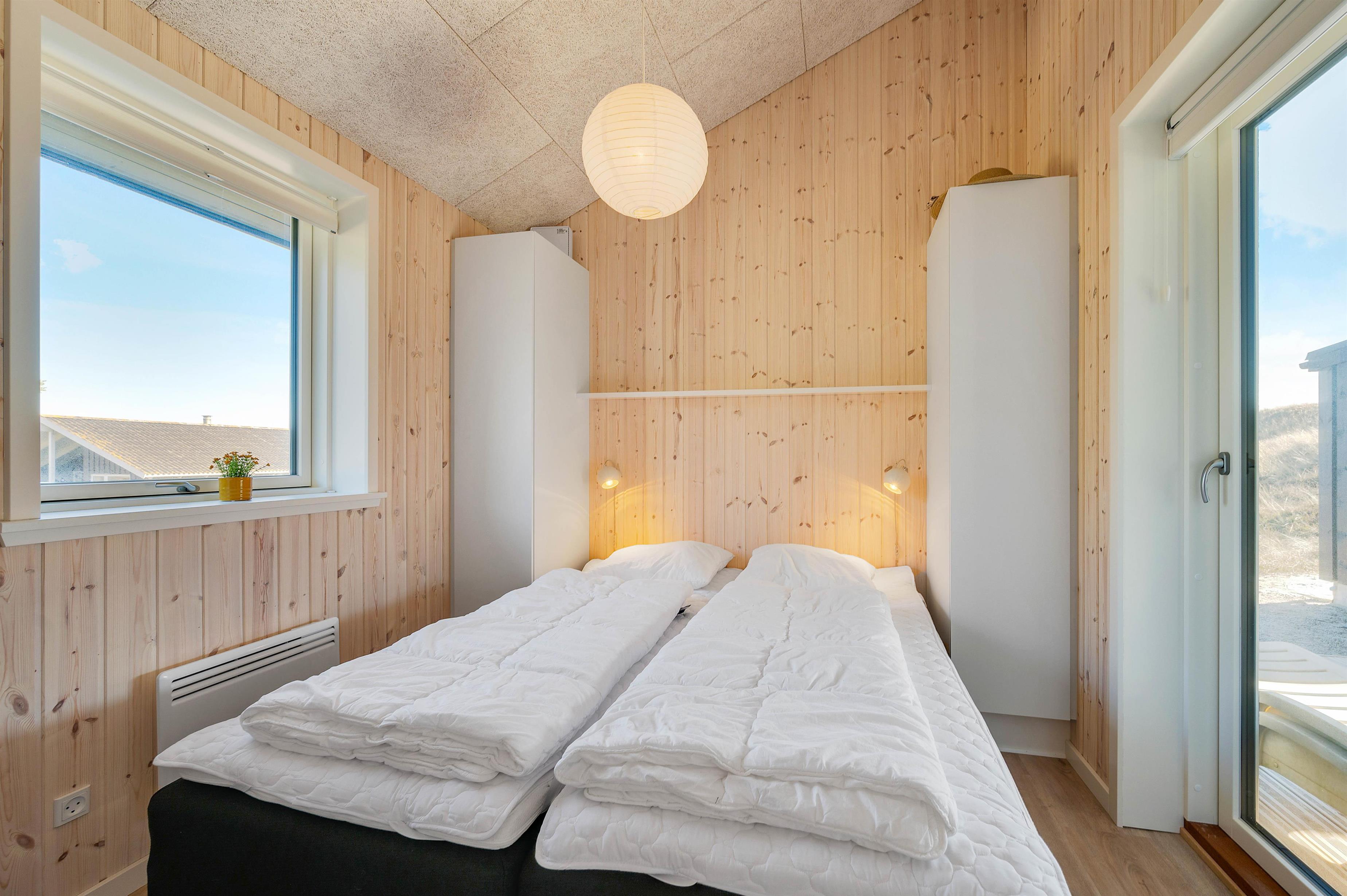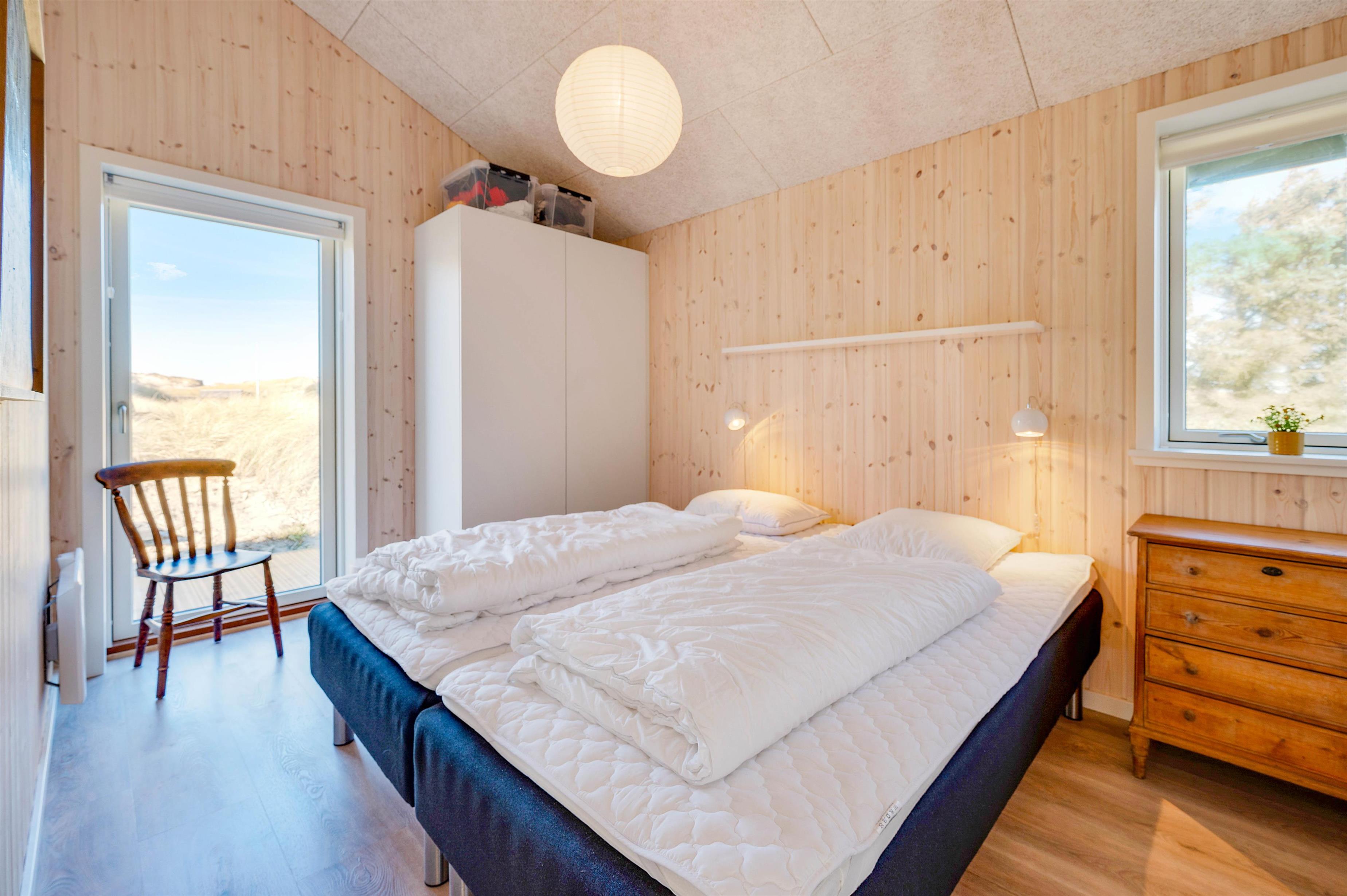 Sommerhuset har 3 soverum, hvor sovepladserne er fordelt på 2 dobbeltsenge og 2 enkeltmandssenge. De 2 badeværelser har gulvvarme, og på det ene finder I også vaskemaskine og tørretumbler. Der er gratis, lynhurtigt fibernet i feriehuset, så underholdningen er sikret på ferien.