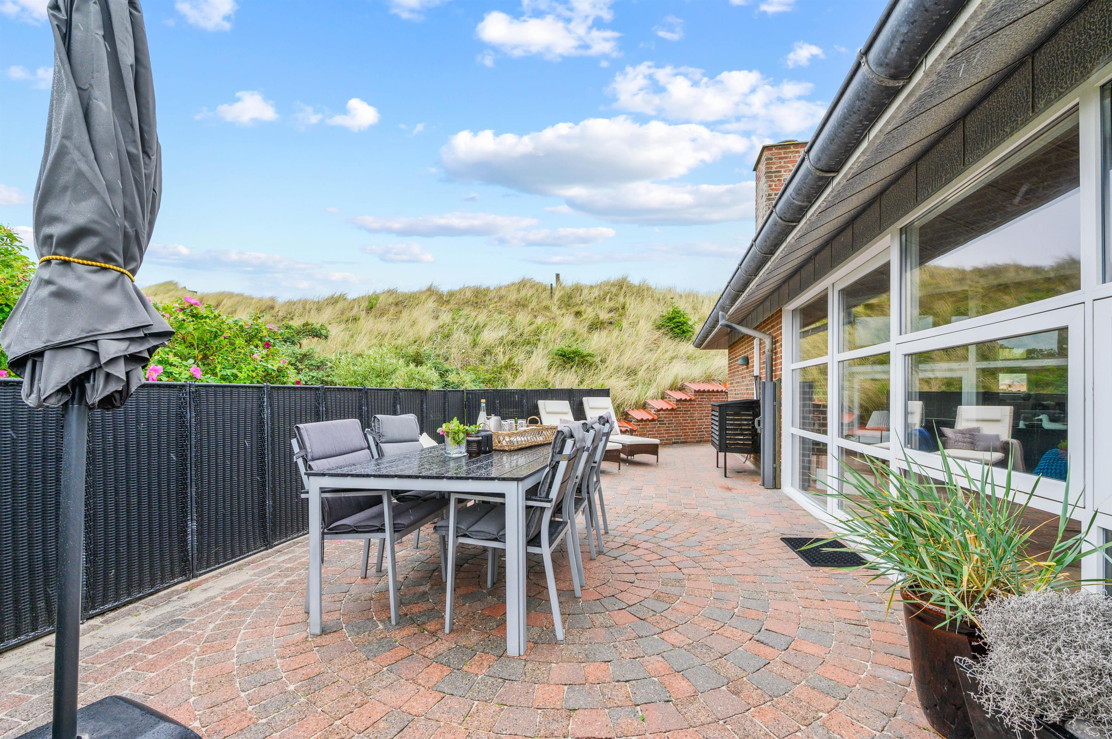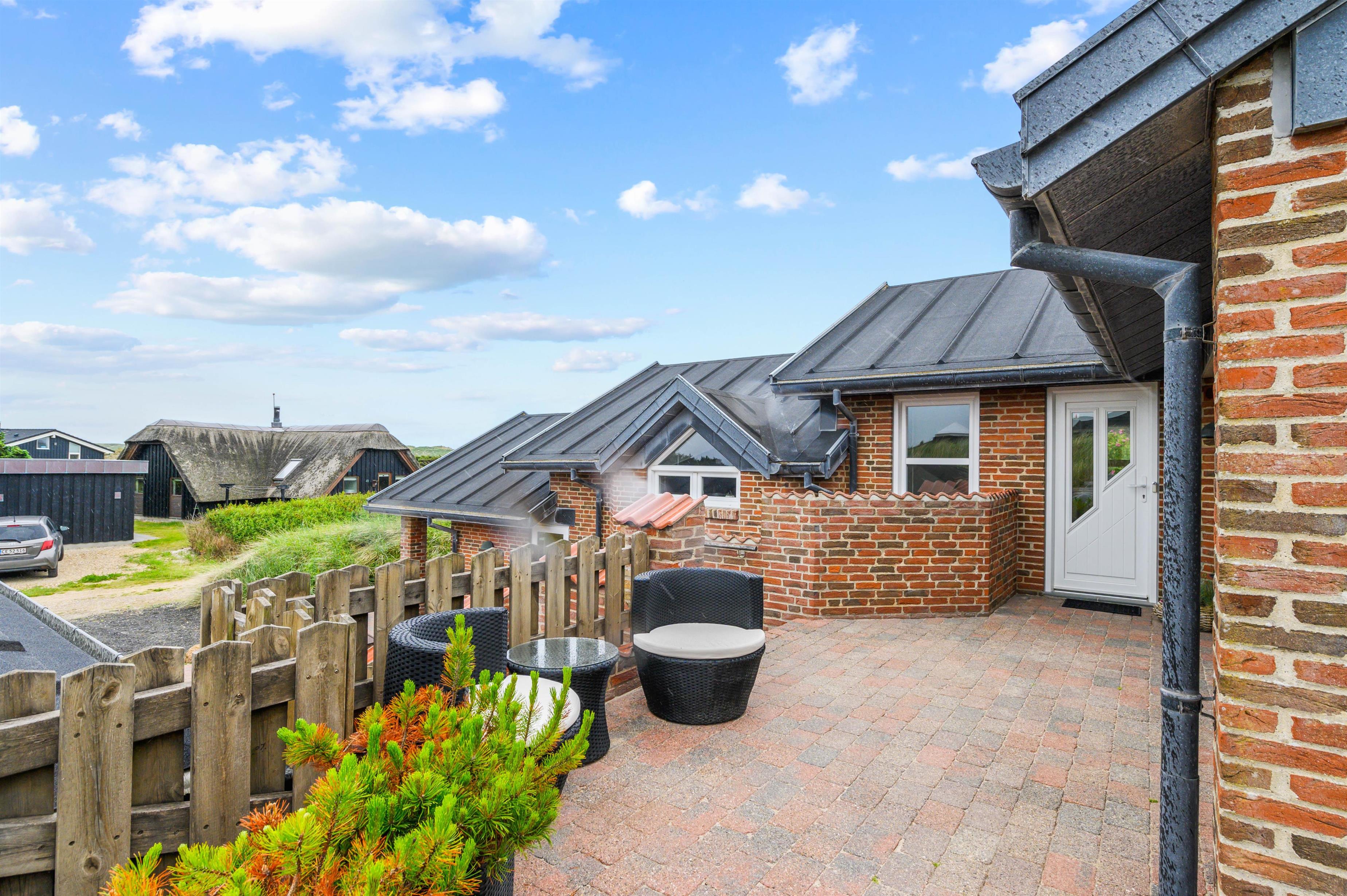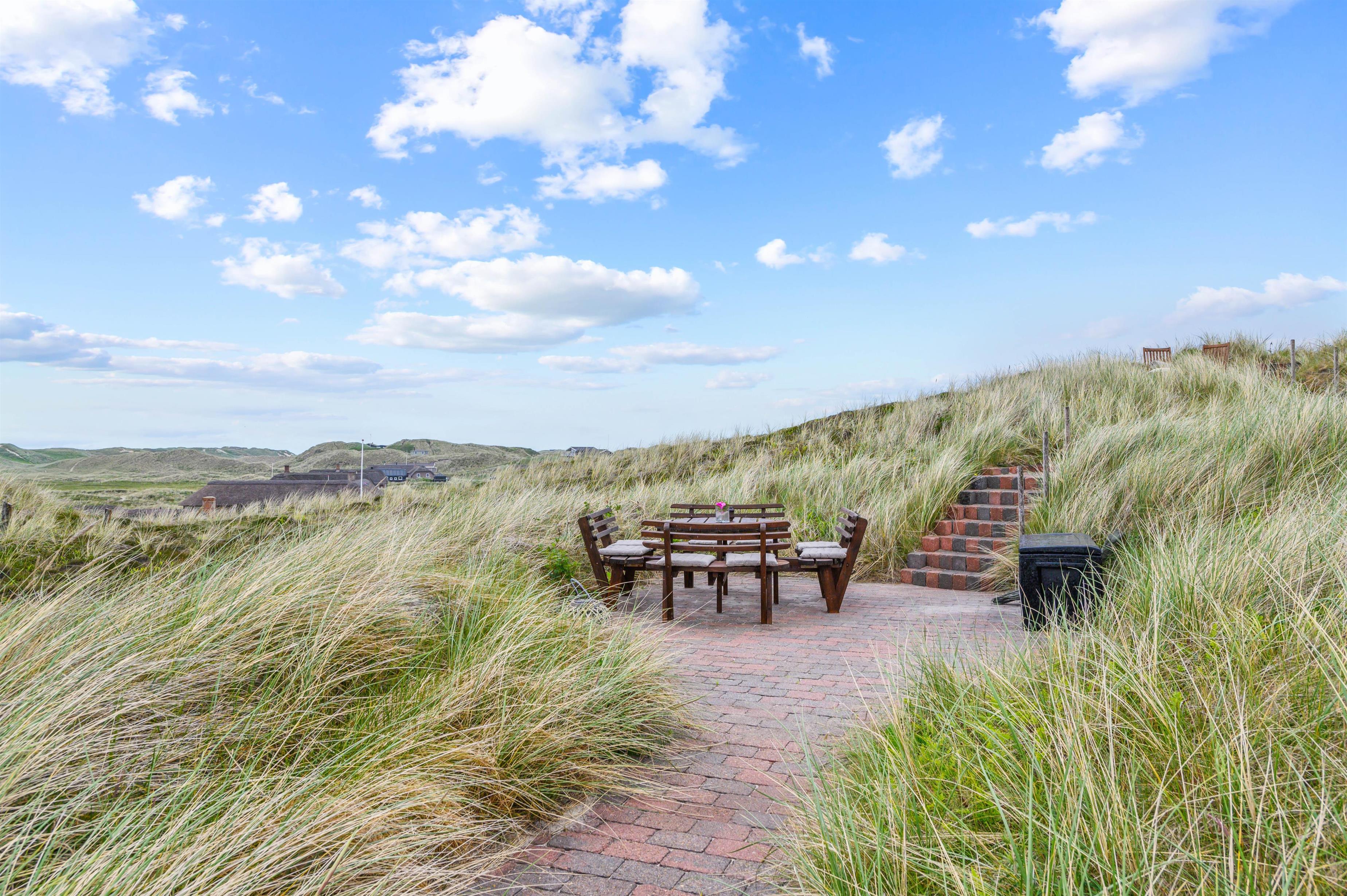 Udendørs venter jer flere gode terrasser, hvor I kan nyde feriens solrige dage. Her har I havemøbler til rådighed, som I kan finde jer godt til rette i, slappe af og nyde lyden af brændingen i baggrunden, mens børnene bygger sandslotte i sandkassen. Den ene af sommerhusets terrasser ligger på toppen af en klit, hvorfra I kan nyde en skøn udsigt over området.