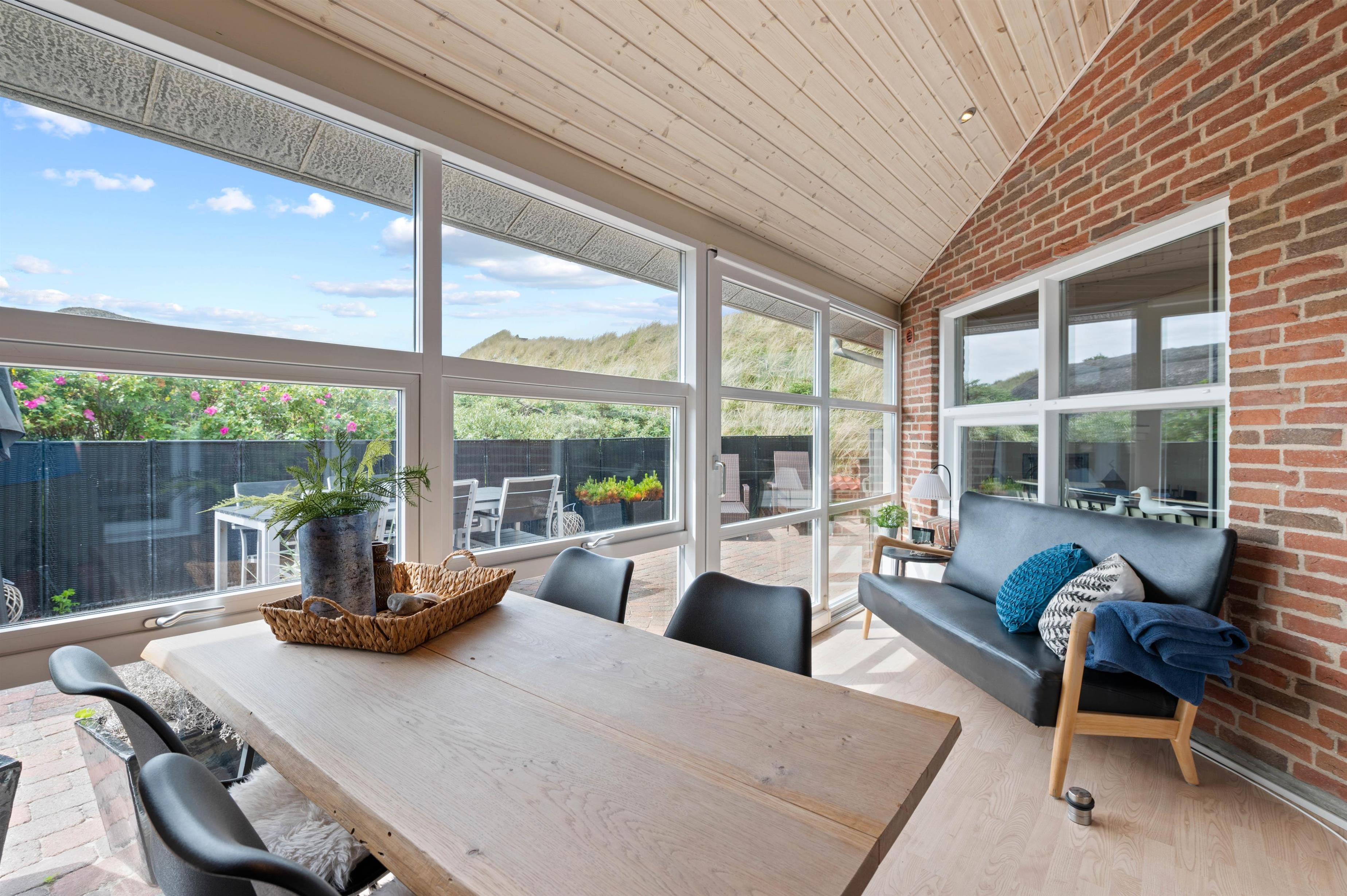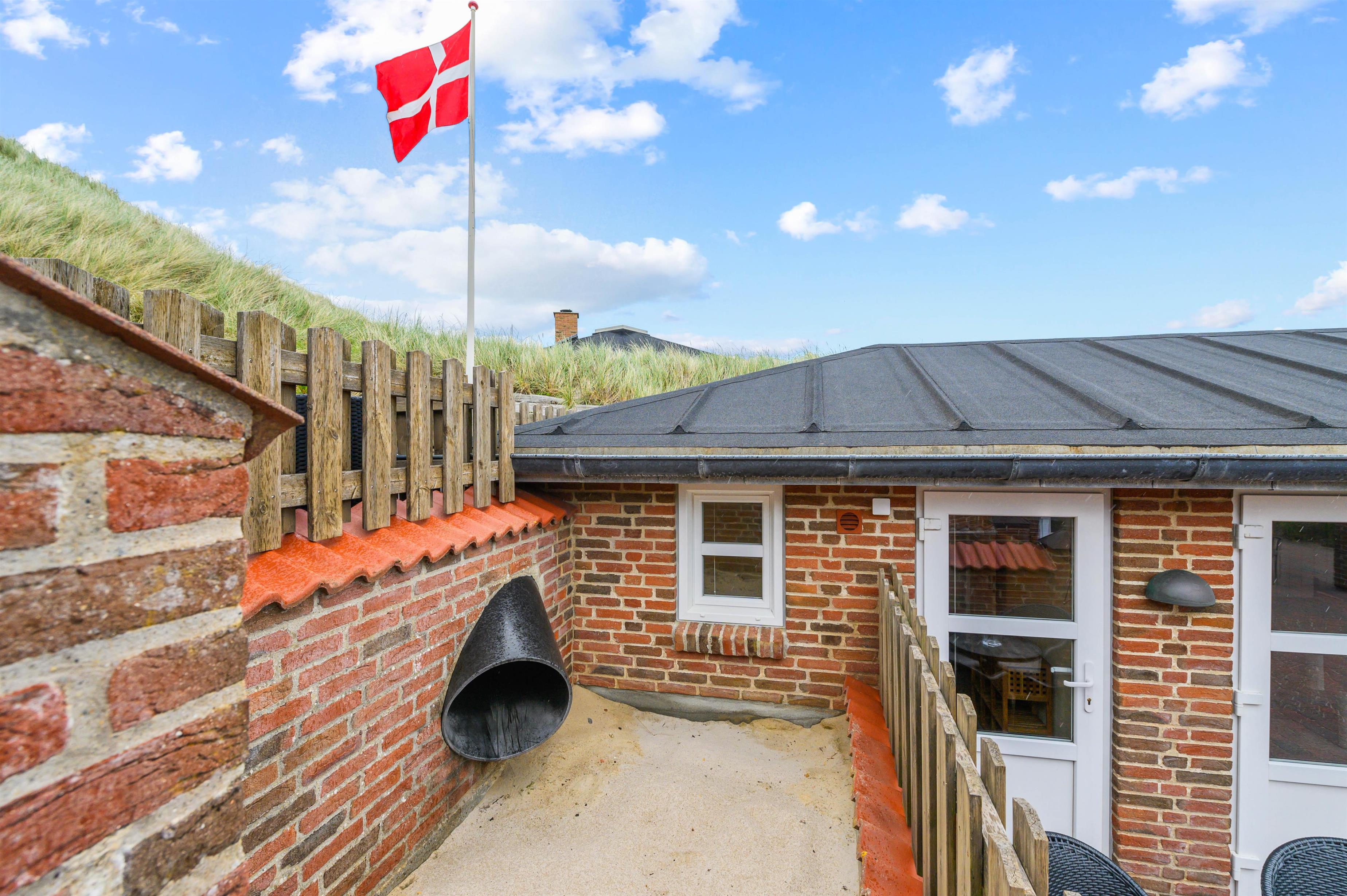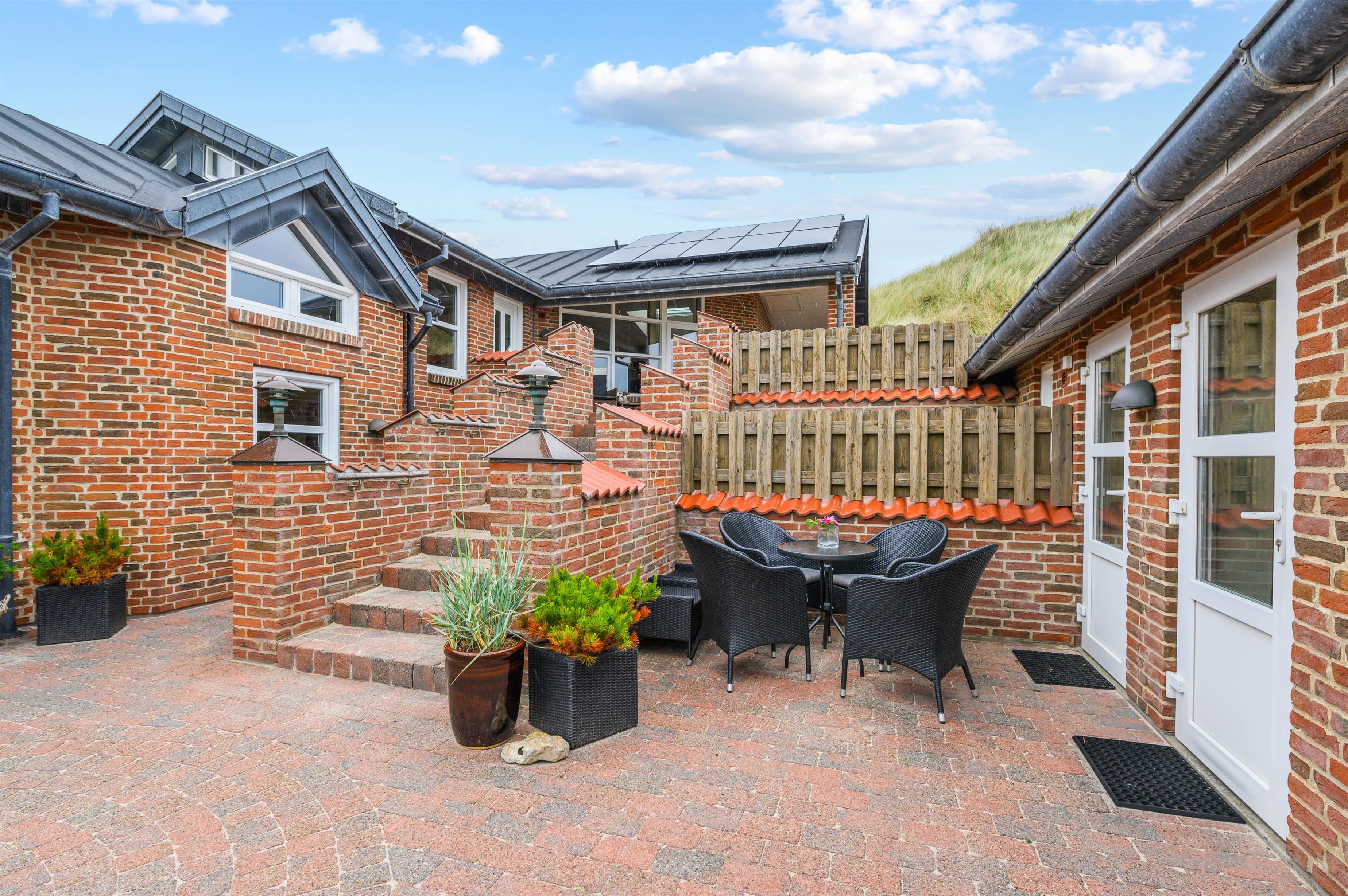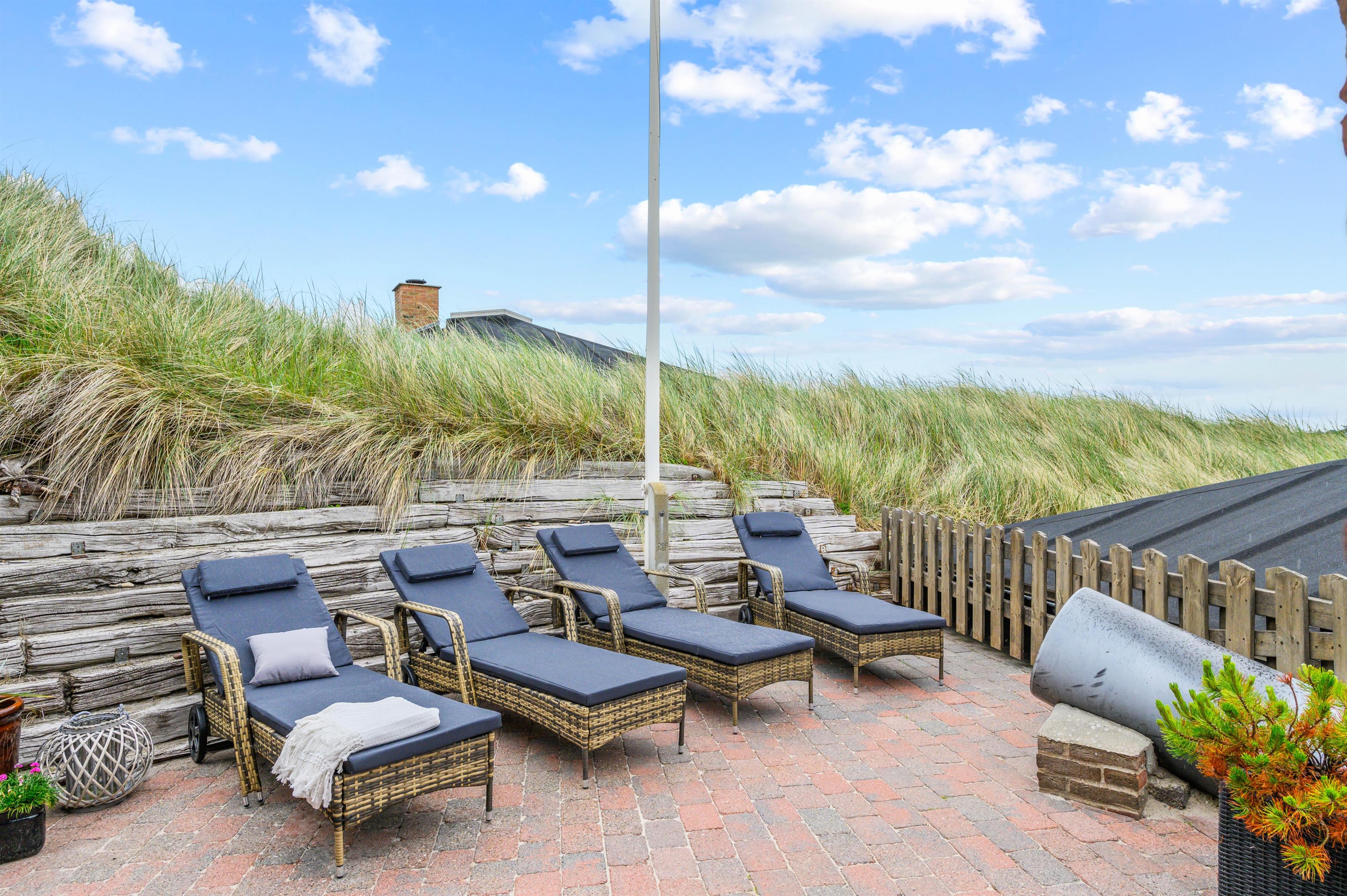 Udendørs venter jer flere gode terrasser, hvor I kan nyde feriens solrige dage. Her har I havemøbler til rådighed, som I kan finde jer godt til rette i, slappe af og nyde lyden af brændingen i baggrunden, mens børnene bygger sandslotte i sandkassen. Den ene af sommerhusets terrasser ligger på toppen af en klit, hvorfra I kan nyde en skøn udsigt over området.
