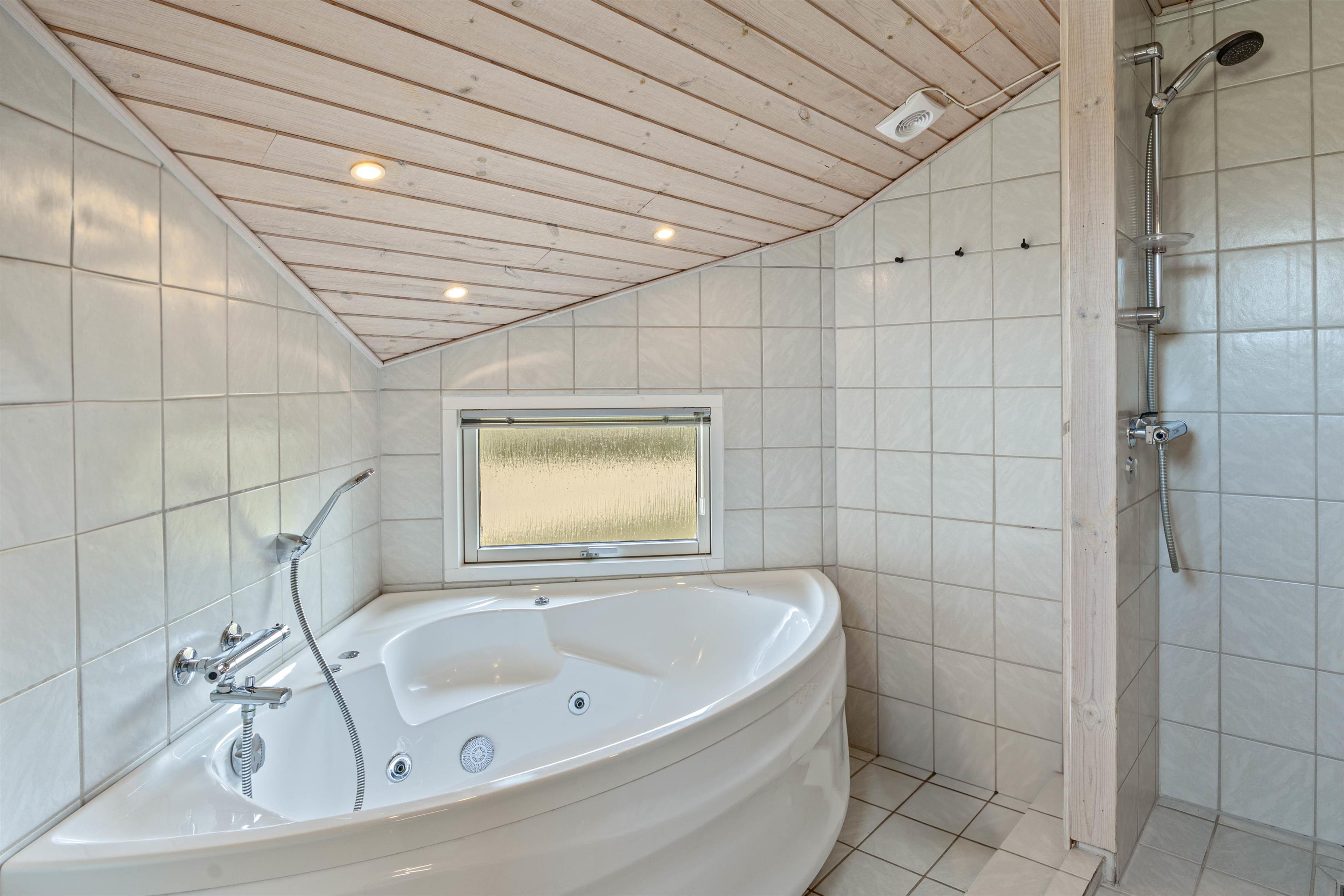 Det store opholdsrum med stue, køkken og spisebord i ét, byder op til masser af hyggelige familiestunder, og med loftet i kip og store vinduespartier bliver rummet kun endnu mere imødekommende. I centrum er den klassiske brændeovn, som vil sørge for dejlig varme og skøn feriestemning året rundt. En ekstra god overraskelse finder I på det største af de to badeværelser, hvor spabadet og saunaen står klar til at forkæle jer lidt ekstra. Og efter en lang dag ude i den friske havluft kan I hvile jer i varmen, inden det er tid til at kravle i seng.