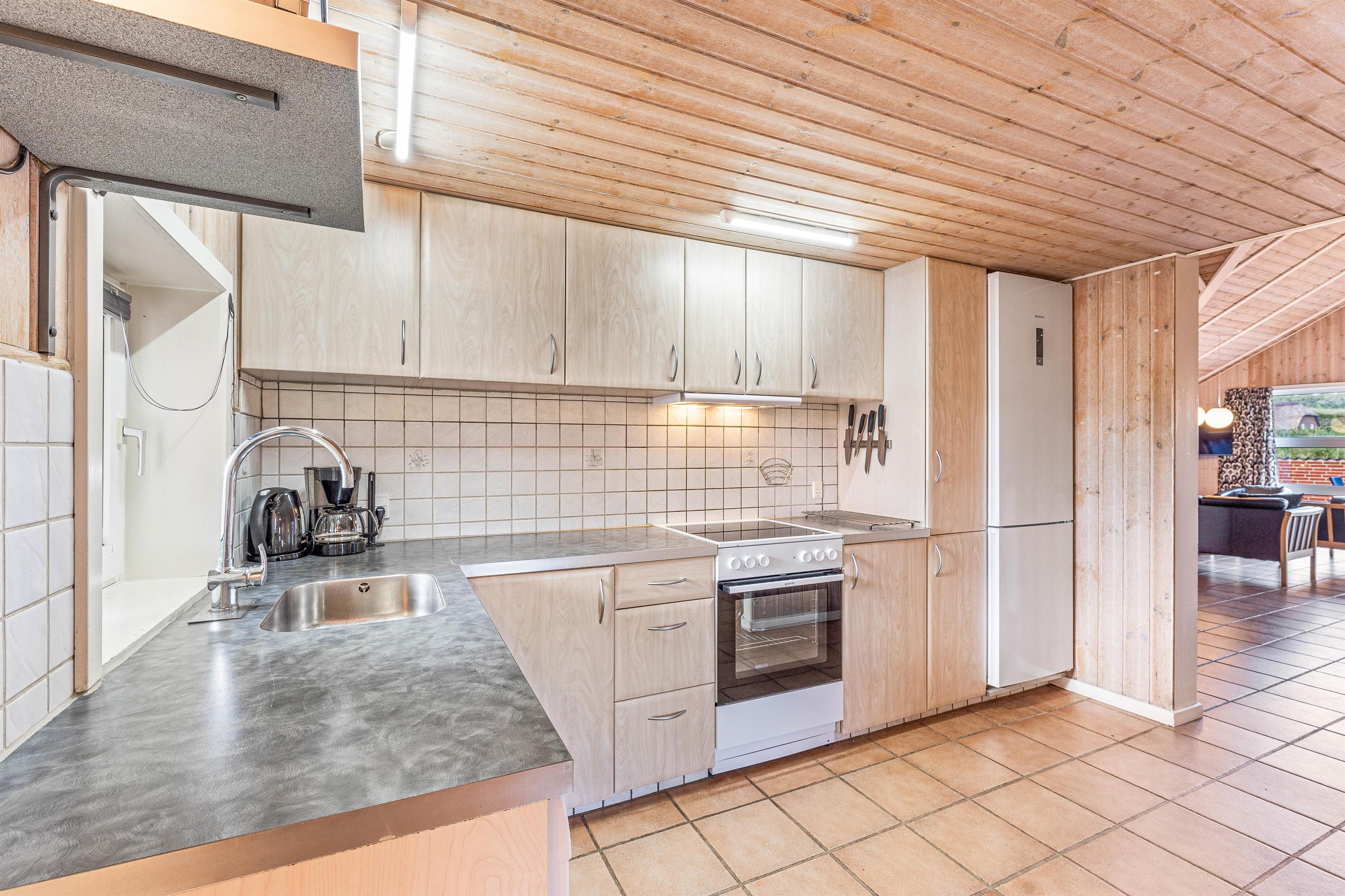 Sommerhuset på Krylen 1 har en fantastisk beliggenhed, kun godt 350 meter fra havet. Dette gør det nemt at tage en tur til stranden, nyde en dejlig svømmetur eller en gåtur langs kysten. Køkkenet i sommerhuset er fuldt udstyret med alt hvad man behøver for at lave masser af dejlig feriemad. Opvasken klares hurtigt med god hjælp fra opvaskemaskinen. Der er både vaskemaskine og tørrtumbler i huset, så I kan sagtens få vasket tøj undervejs på ferien.