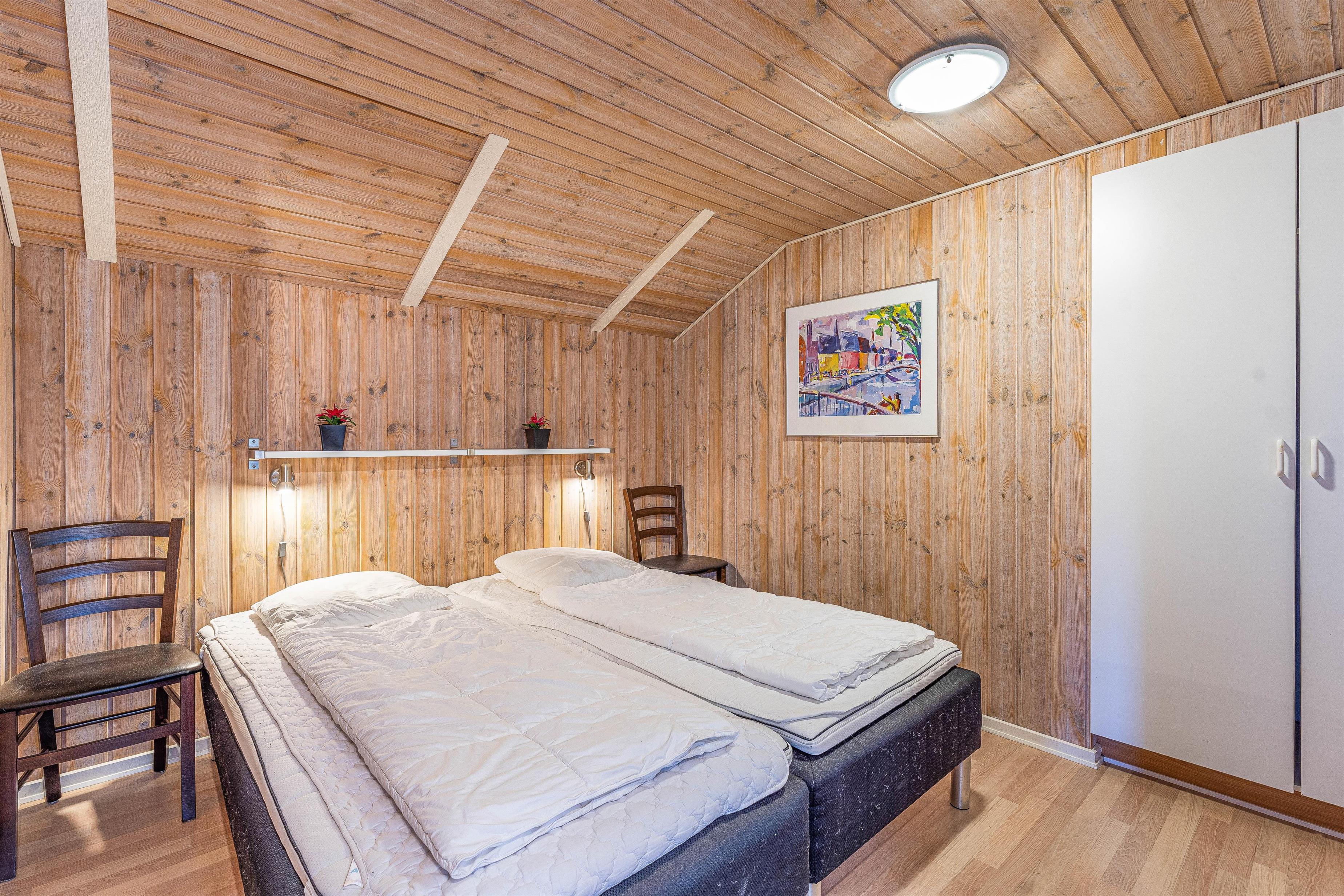 Sommerhuset indeholder 4 reelle soveværelser og en hems med plads til 4 personer. Dette giver god plads til hele familien eller en stor gruppe venner. Når man vil slappe af om aftenen, er der et dejligt sofaområde med fjernsyn og masser af plads til afslapning og film. Brændeovnen er centralt placeret og bidrager til ægte sommerhushygge, hvor I kan sidde og nyde flammernes knitren.