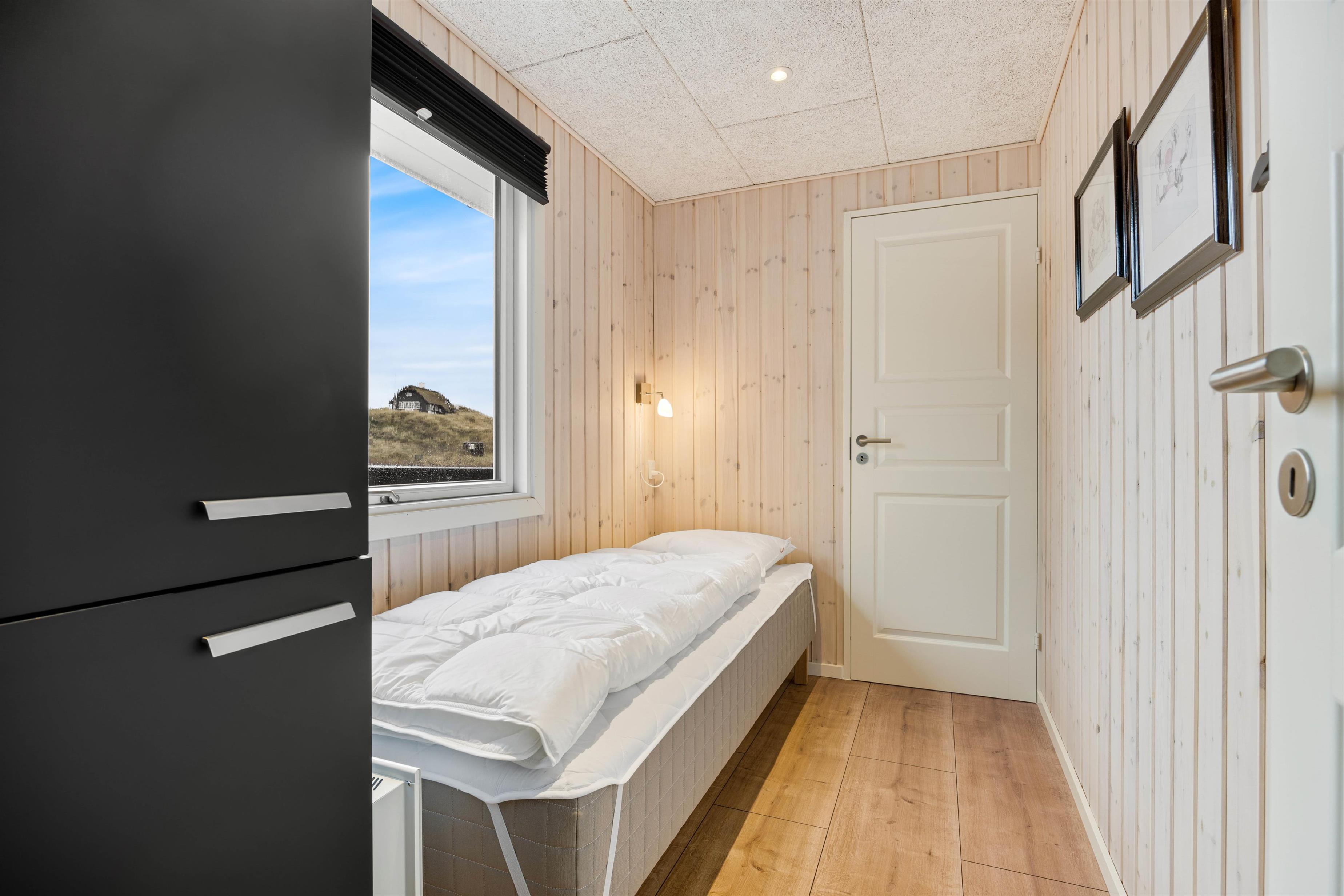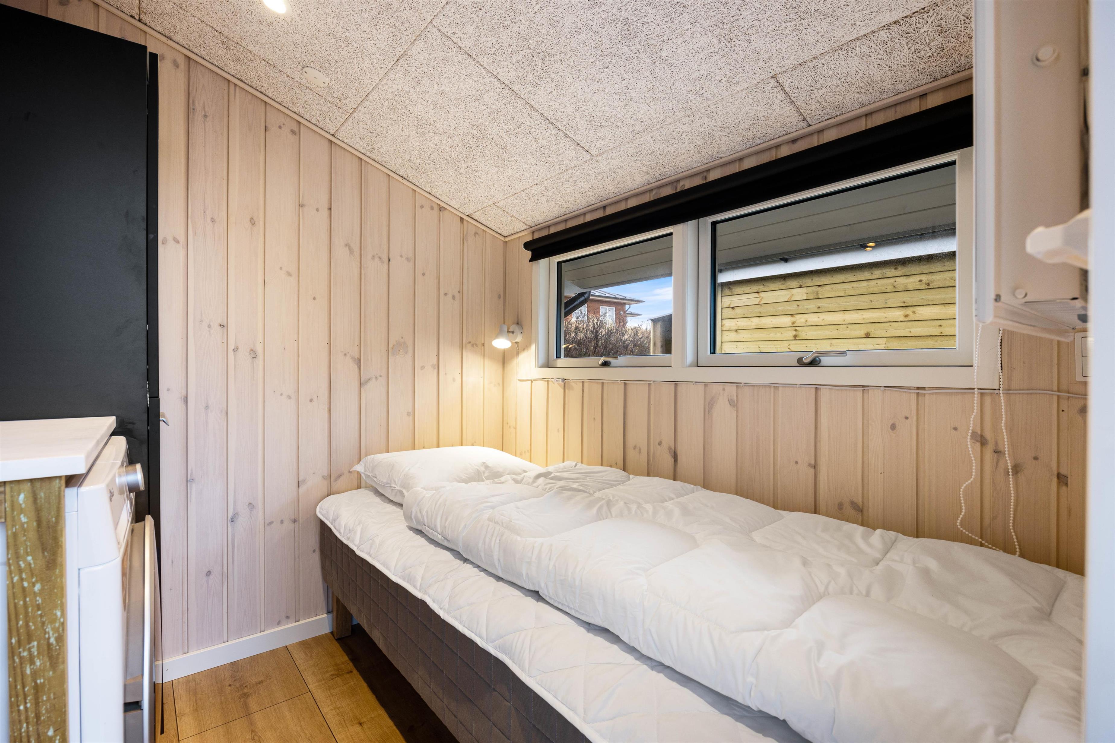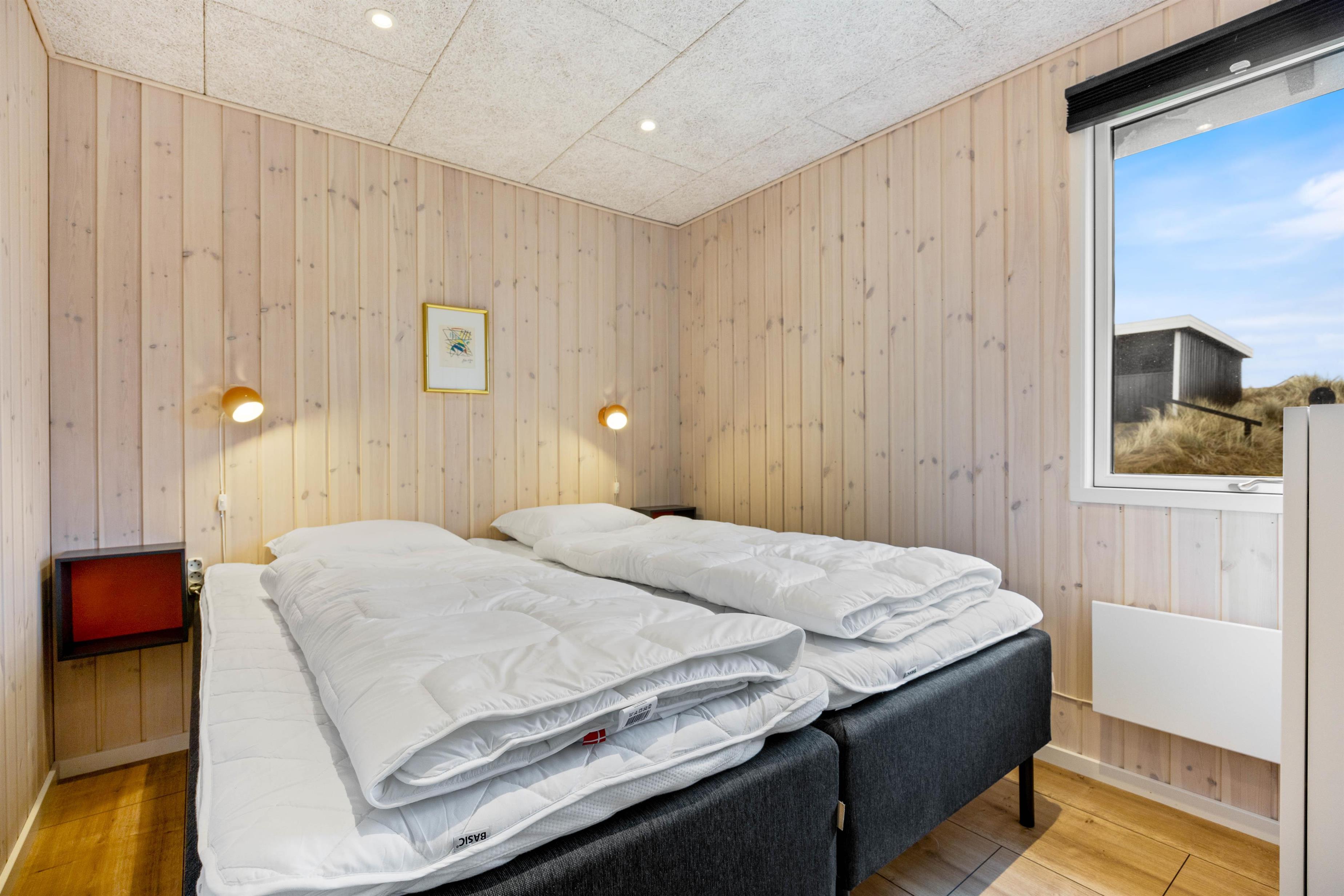 Feriehuset kan rumme op til 6 personer, som kan fordeles på de 4 soveværelser. 2 af de 4 soveværelser har hver en dobbeltseng, mens de 2 andre soveværelser hver har en enkeltseng. For at du ikke får kolde fødder om morgenen på kolde dage er badeværelset udstyret med gulvvarme.
