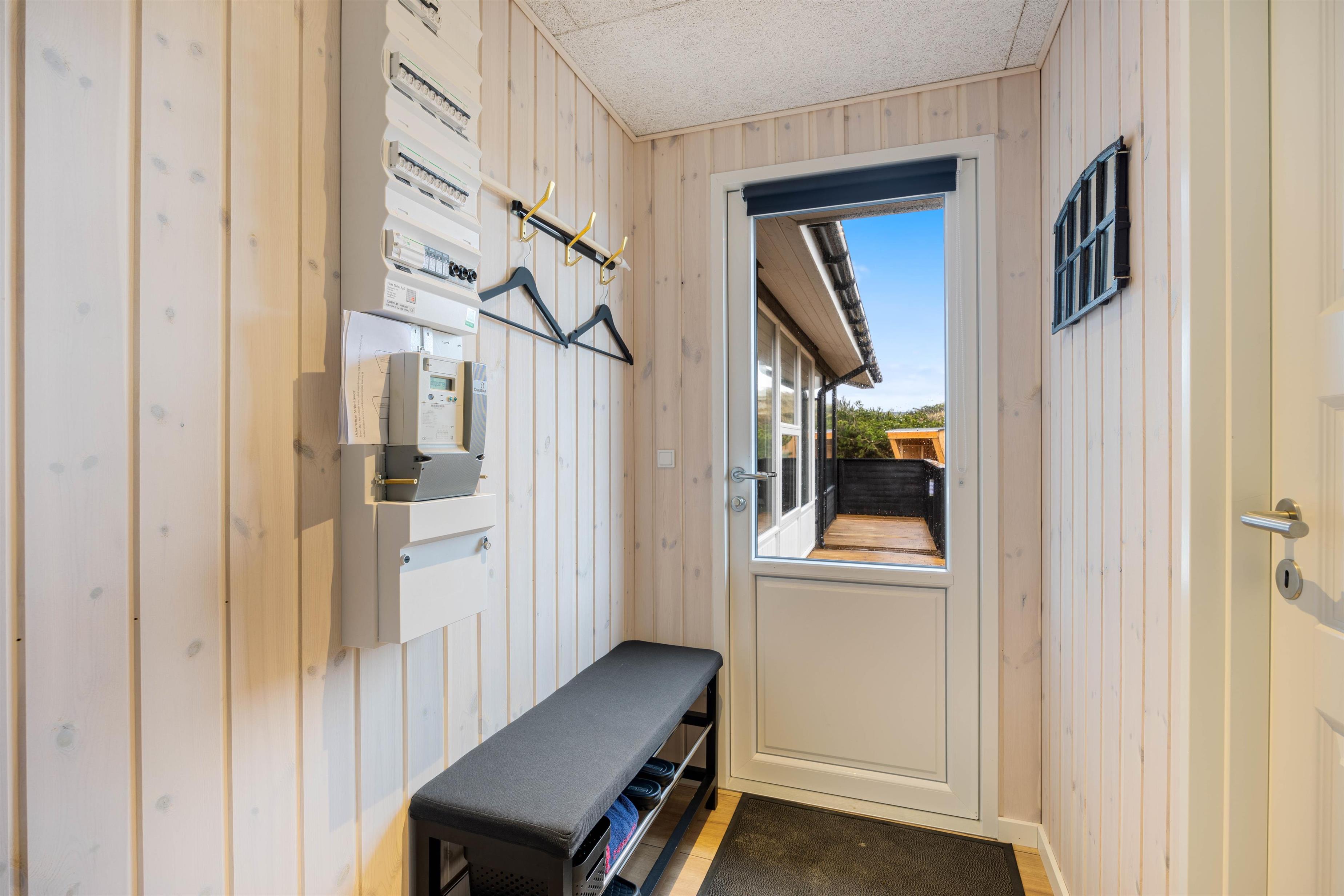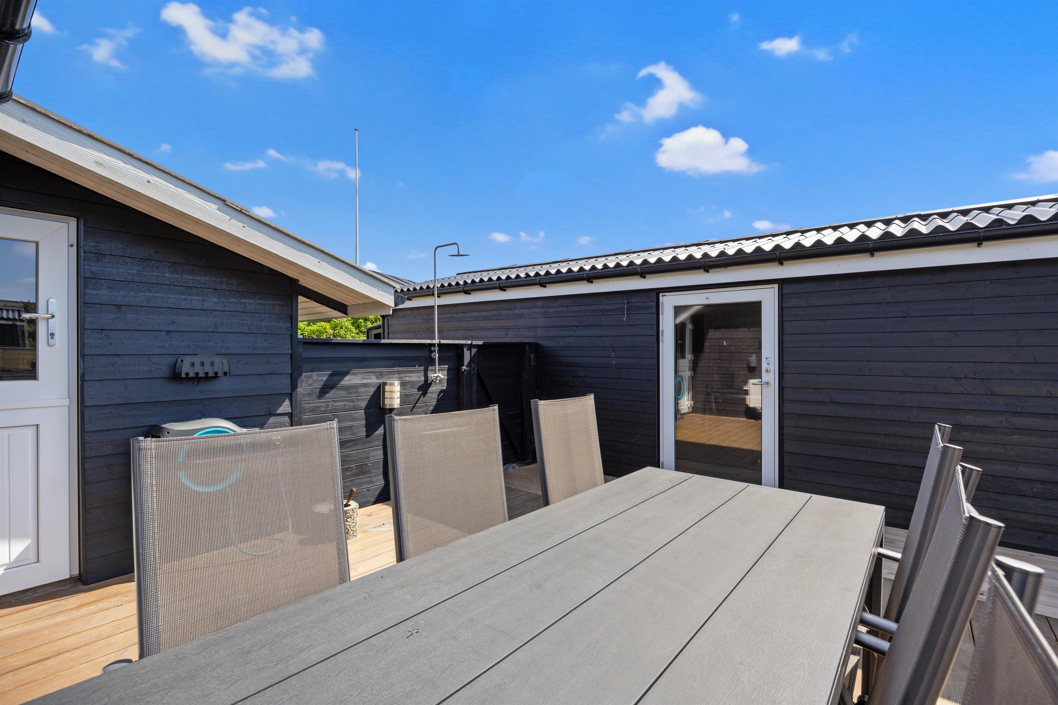 Friluftsmennesker kan også overnatte i husets tilhørende shelter. Dog skal I selv medbringe udstyr hertil, da husets madrasser og sengetøj ikke må bruges herude. Har I været en tur i vandet, på stranden, har I mulighed for at benytte jer af feriehusets udebruser, til at skylle det værste sand af kroppen. OBS. Udebruseren er kun tilgængelig i perioden april-november.
