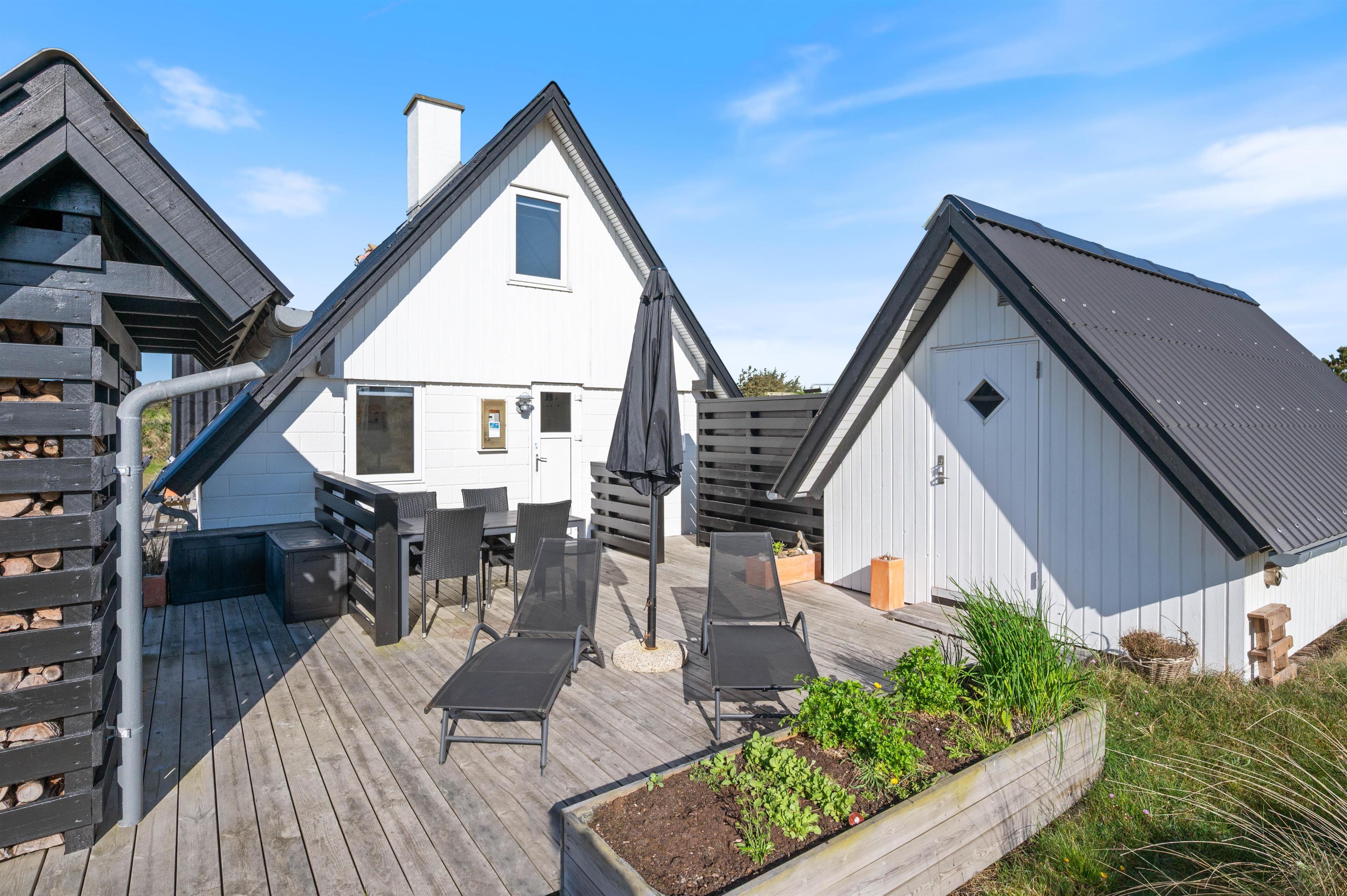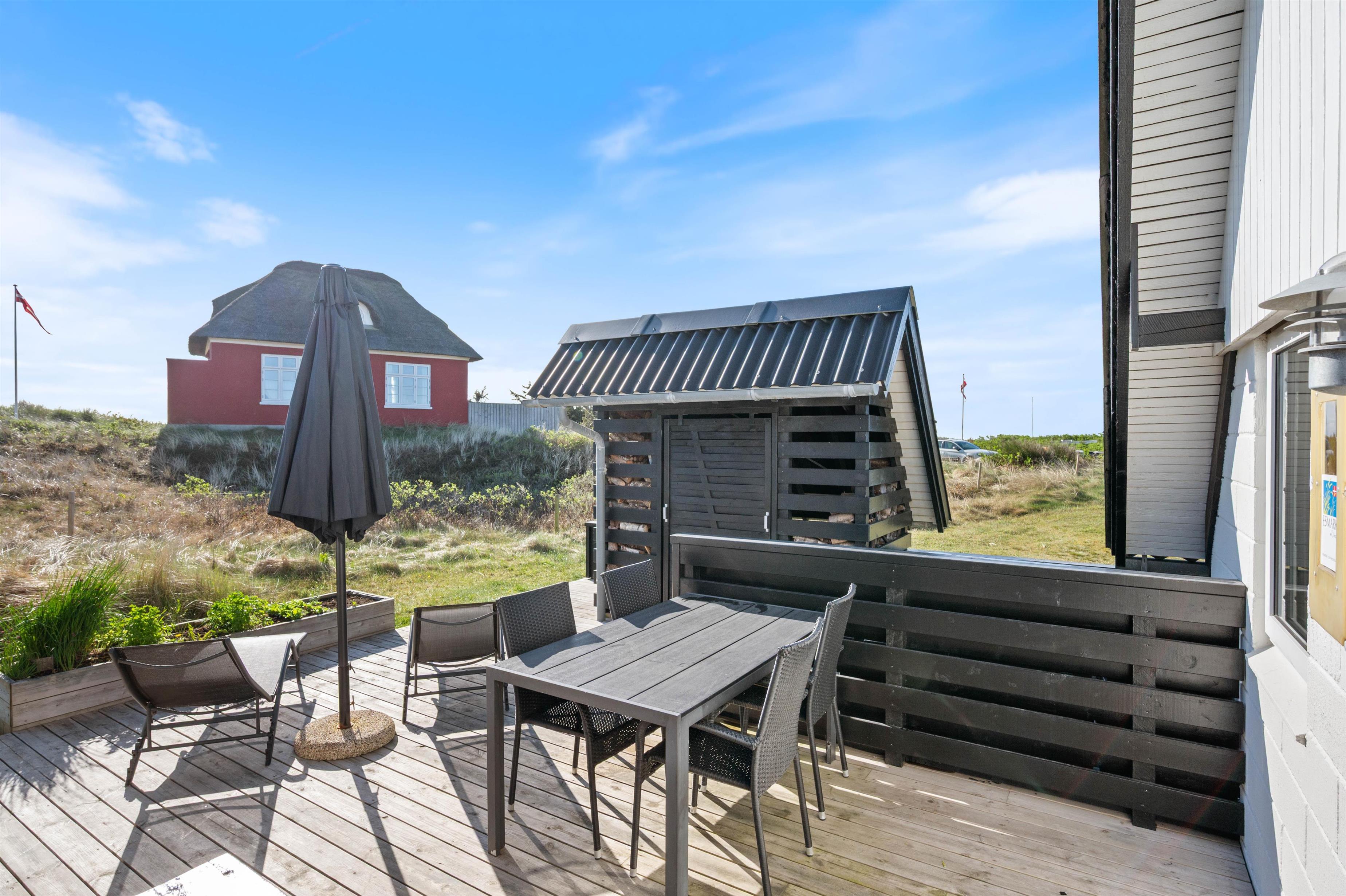 På terrassen finder I også en udebruser der er tilgængelig fra april til november. Dette er altid rart, for her kan I blive kølet af på de varme sommerdage, og efter strandbesøg på en varm sommerdag kan I få skyllet jeres tæer for sand. Stranden er nemlig kun 500 meter fra sommerhuset, så der er ikke noget der sætter en stopper for lange gåture ved det beundringsværdige Vesterhav og dets kilometerlange sandstrand.