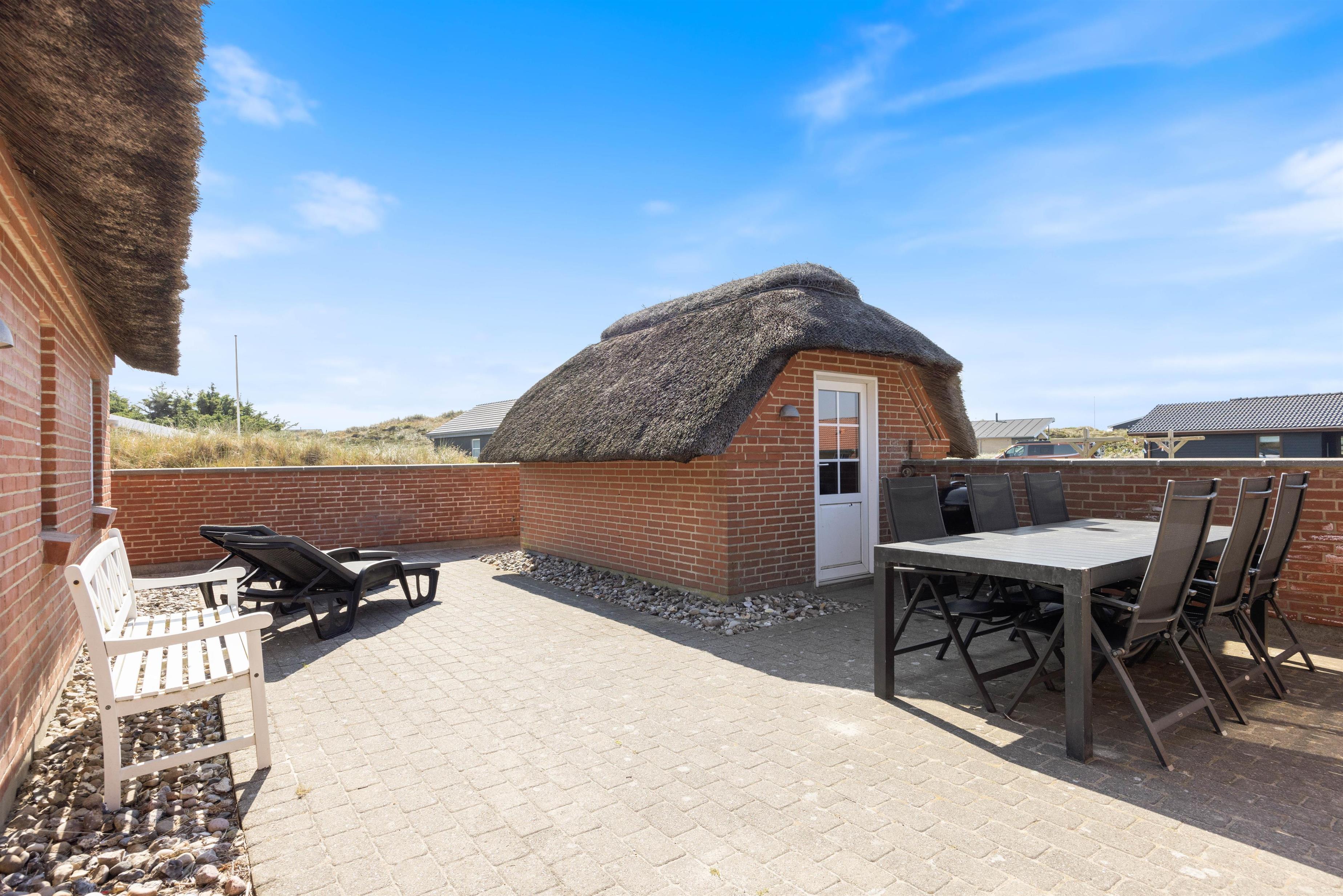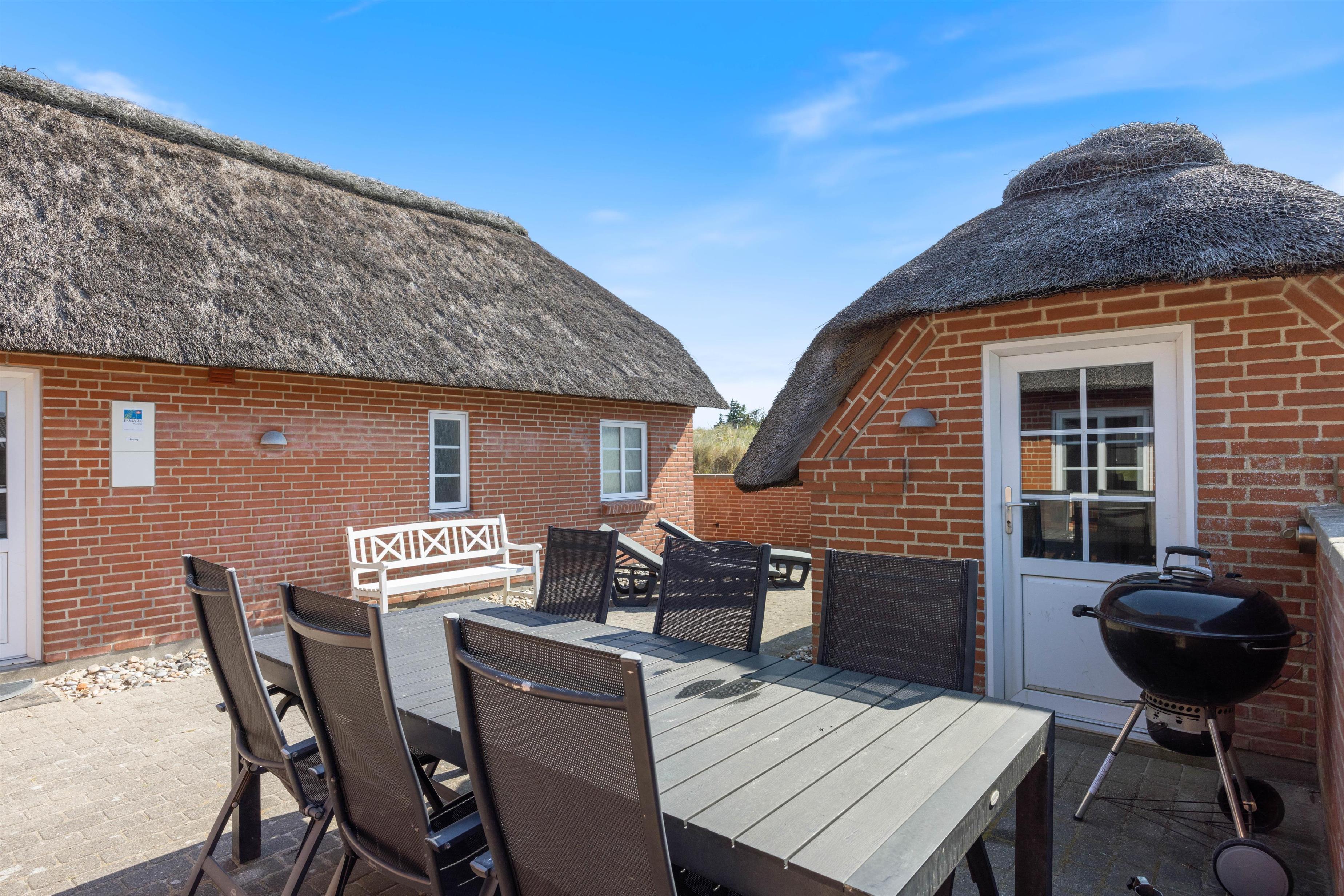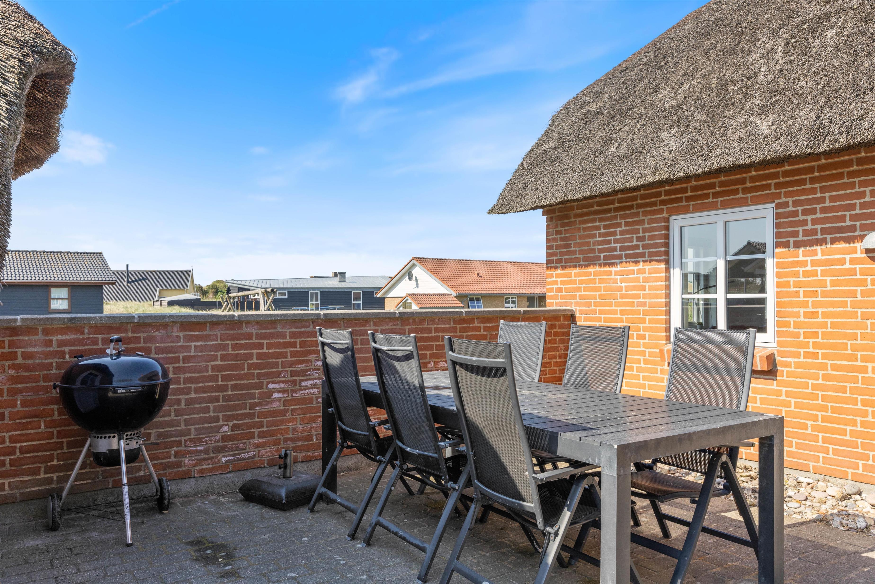 Udenfor huset finder I en skøn syd-østvendt terrasse, hvor der naturligvis er både havemøbler og grill. Ergo er I sikret de bedste rammer for den perfekte ferie, hvor solbadning og bøffer på grillen næsten burde være obligatorisk. Terrassen er praktisk lukket af i et hyggeligt gårdmiljø, så jeres hund kan komme med udenfor - uden at smutte på eventyr på egen hånd.
