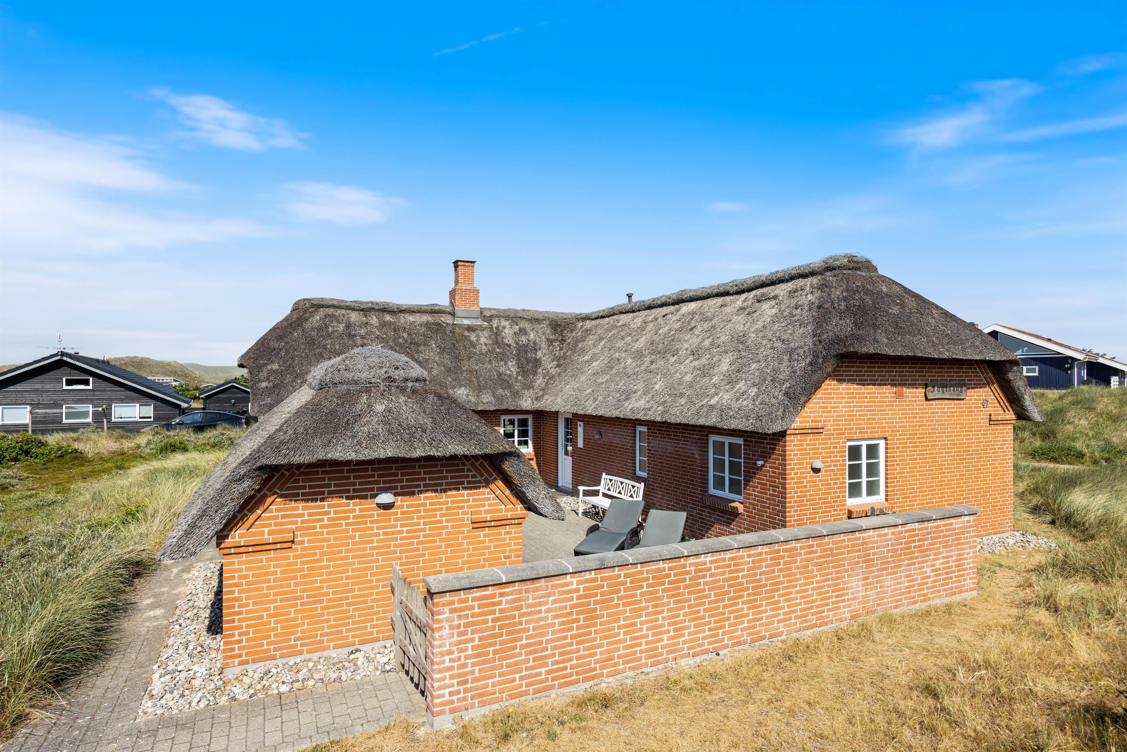 I rolige og børnevenlige omgivelser ligger dette flotte stråtækte sommerhus på Mågedalen 47 i Houvig. Sommerhuset råder over 112m2 og er opført i de bedste materialer. Her er plads til 8 personer, hvilket gør det ideelt til den udvidede familie eller vennerne, der ønsker om at holde ferie sammen. Der er ovenikøbet plads til 1 enkelt hund.