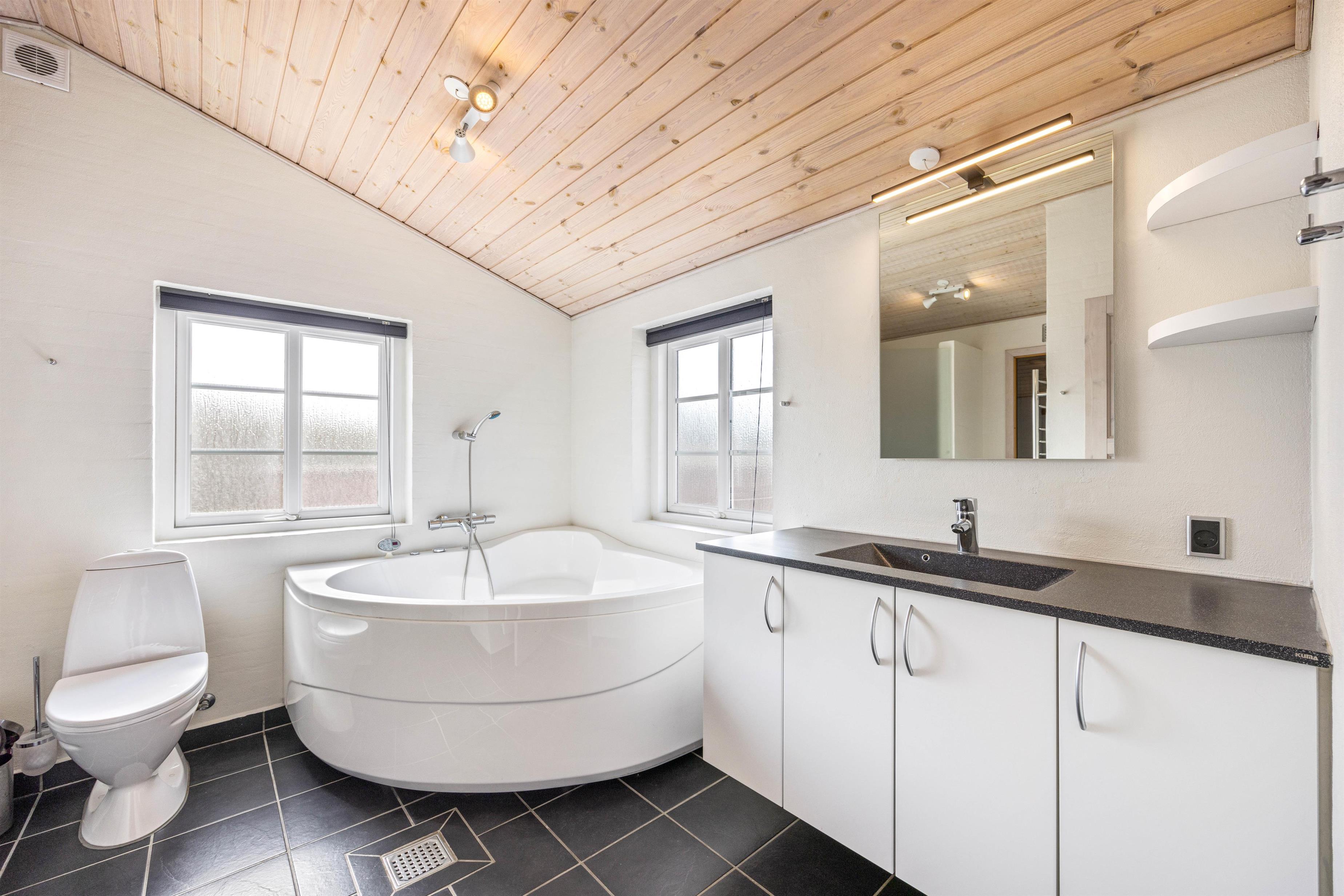 Hvis I trænger til ekstra forkælelse, har I indlogeret i det helt rigtige hus. Her er nemlig både spabad og sauna. Her kan I forkæle jer selv med en hyggelig stund i boblerne, hvor I kan slappe af. Eller I kan læne jer tilbage i saunaen efter en dag ved Vesterhavet. Både sauna og spabad ligger i forbindelse med det ene badeværelse, der også byder på bruseniche og gulvvarme. Det er endnu et gæstetoilet i sommerhuset – også med bruseniche og gulvvarme.