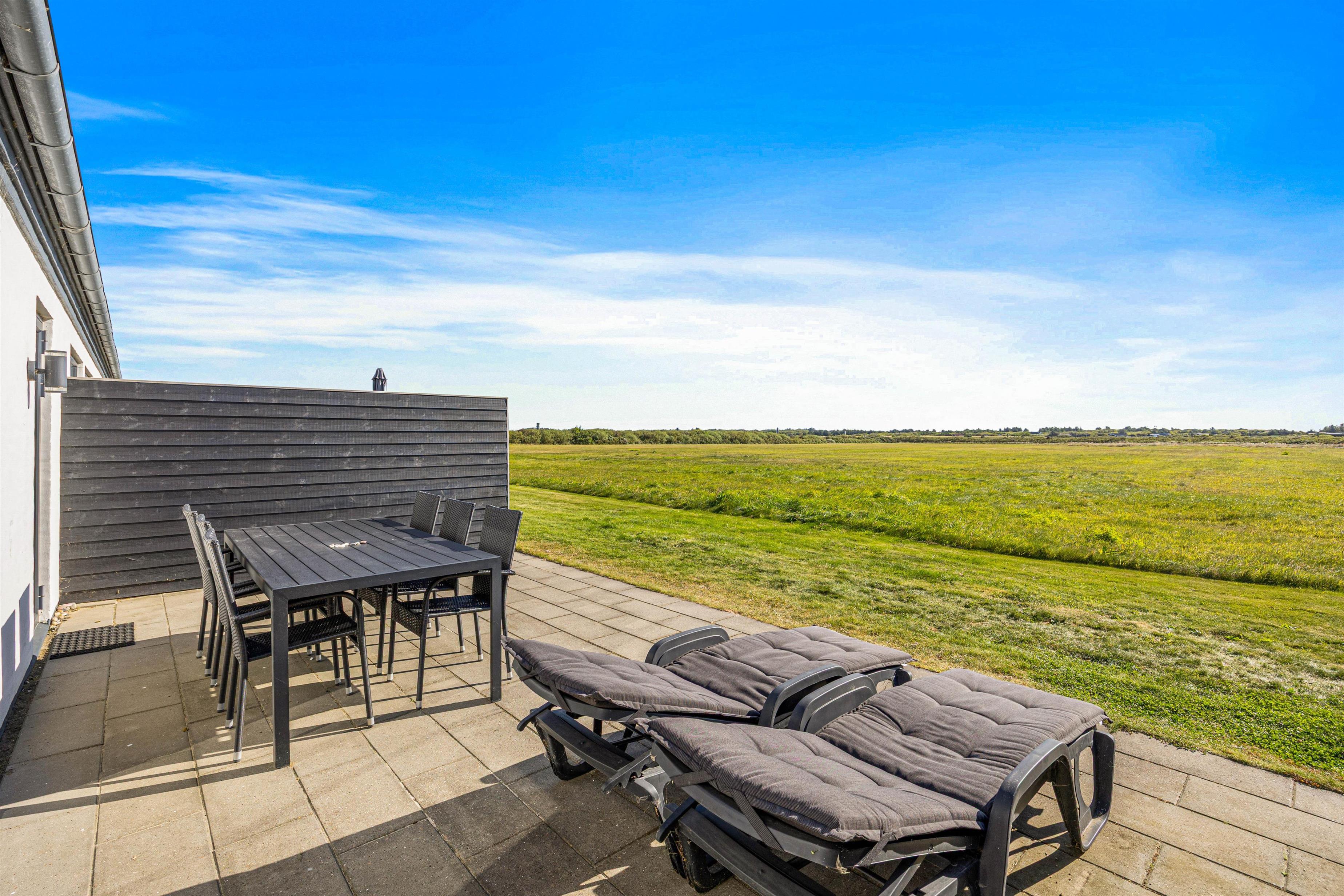 Fra opholdsrummet er der udgang til den østvendte, afskærmede terrasse. Nyd en friskbrygget kop kaffe ved havebordet i morgensolen, eller læn jer tilbage i liggestolene og tank nye kræfter på en solrig sommerdag. Mens I slapper af, kan børnene spille bold på den tilhørende fodboldbane eller volleyballbane, som deles med de to ferielejligheder ved siden af. Her er masser af mulighed for sjov og leg!