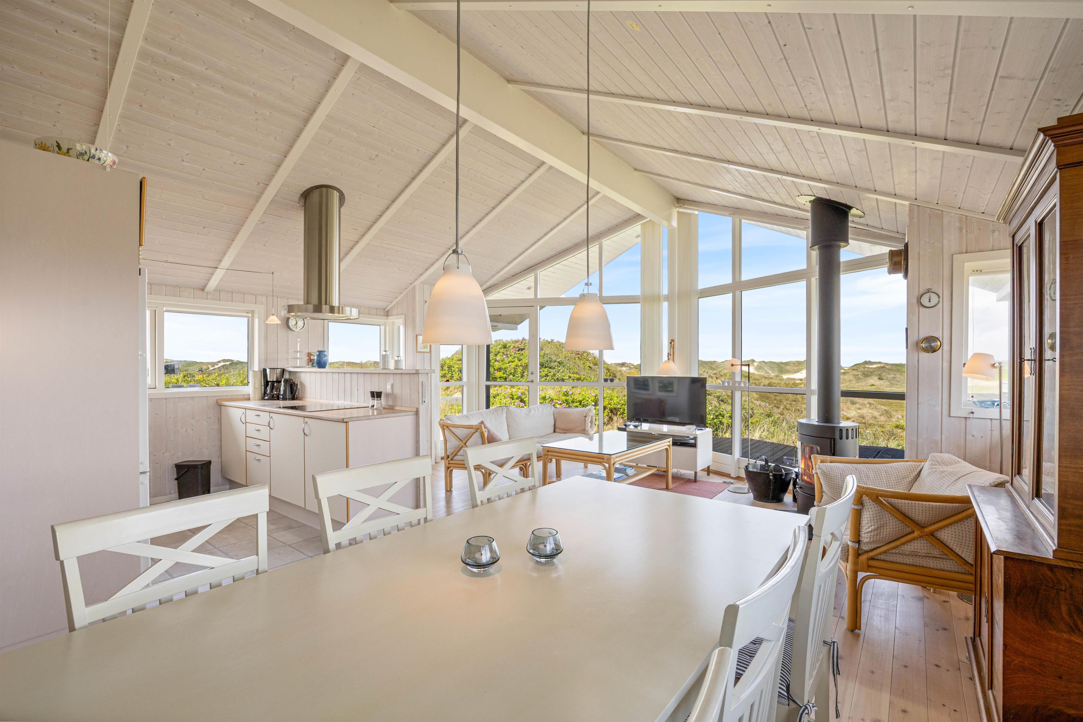 Sommerhusets uderum er også ideelle til afslapning, hvor I kan nyde en grillmiddag og spise ude på de lune aftener. Med havemøbler til rådighed kan hele familien samles omkring måltiderne udenfor. Sommerhuset er omgivet af en betagende klitgrund, som giver en følelse af privatliv og tilknytning til naturen. Takket være sommerhusets korte afstand til havet vil I også kunne nyde Vesterhavets brusen som baggrundslyd.