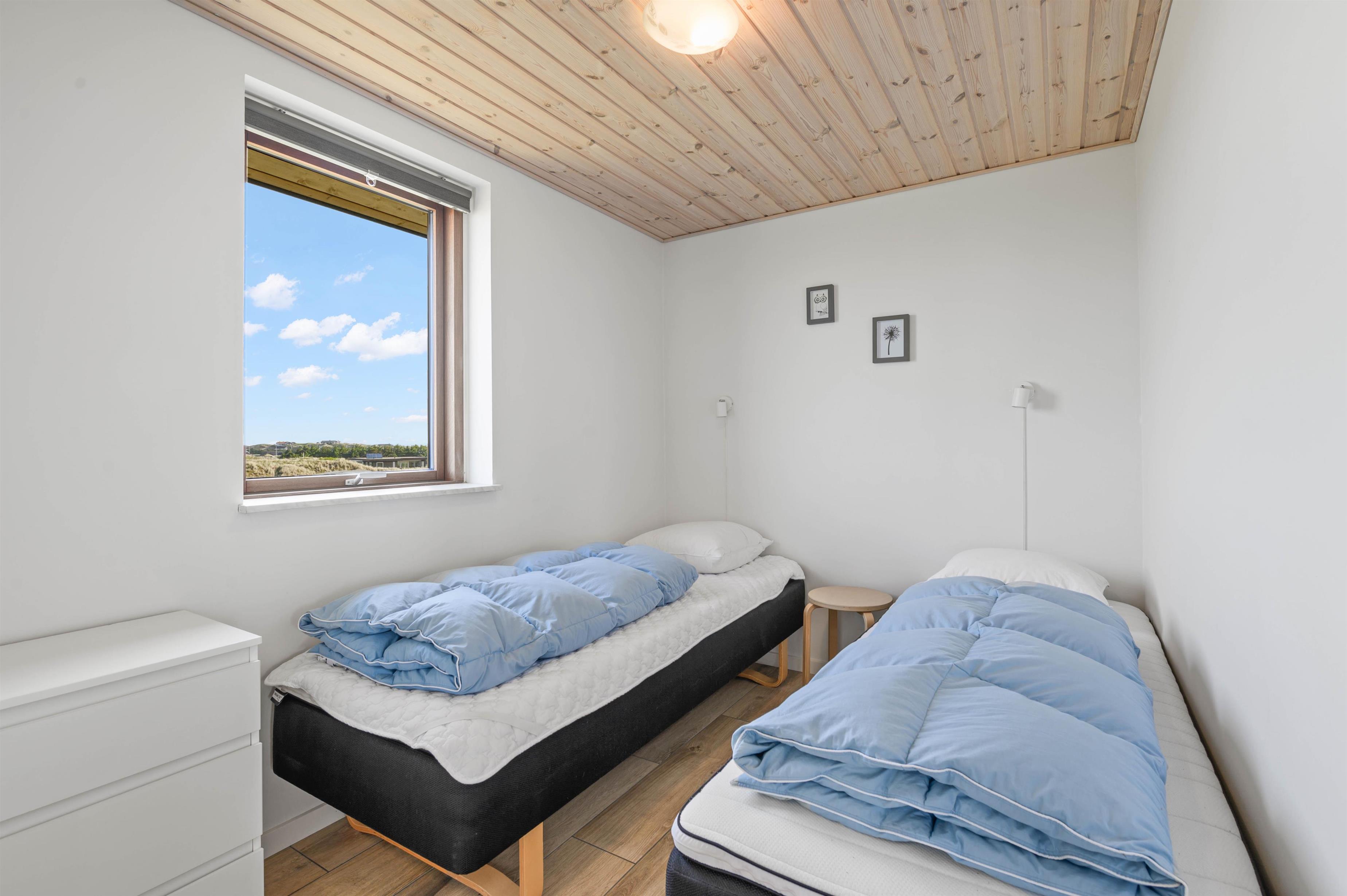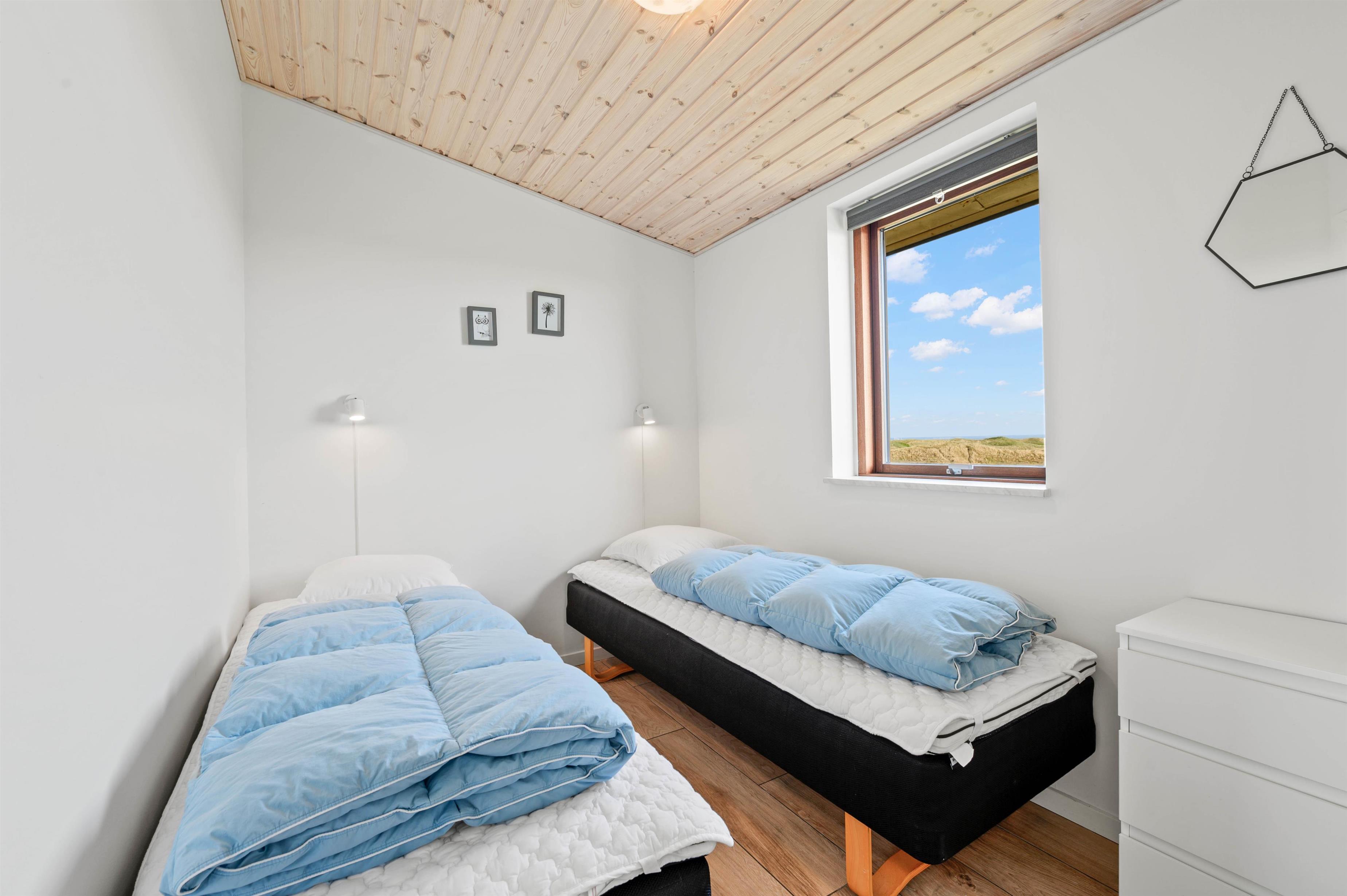 Sommerhuset kan med sine 3 værelser huse op til 6 overnattende feriegæster. Alle værelser er med enkeltsenge og en dejlig udsigt, som sikrer at I vil føle jer tilpas og nyde en dejlig ferie.