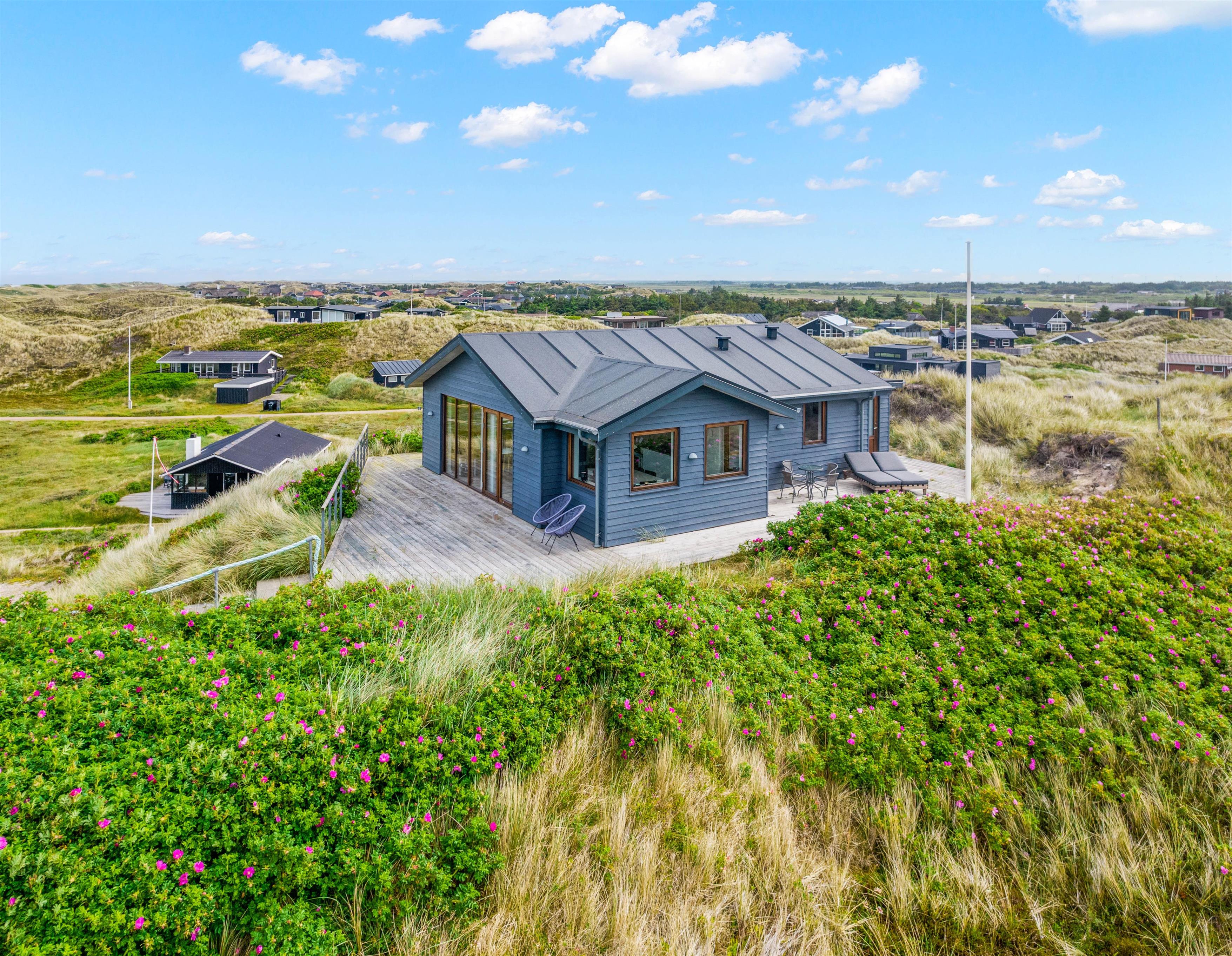 På en klittop, hævet over hele det omkringliggende område, ligger dette dejlige og charmerende arkitekttegnede feriehus. Feriehuset har en af Houvigs absolut bedste panoramaudsigter, der er noget ud over det sædvanlige, med et betagende 360 graders udsigt over hele området. Her er plads til 6 personer og jeres 2 hunde, så I sammen kan holde en god ferie sammen.