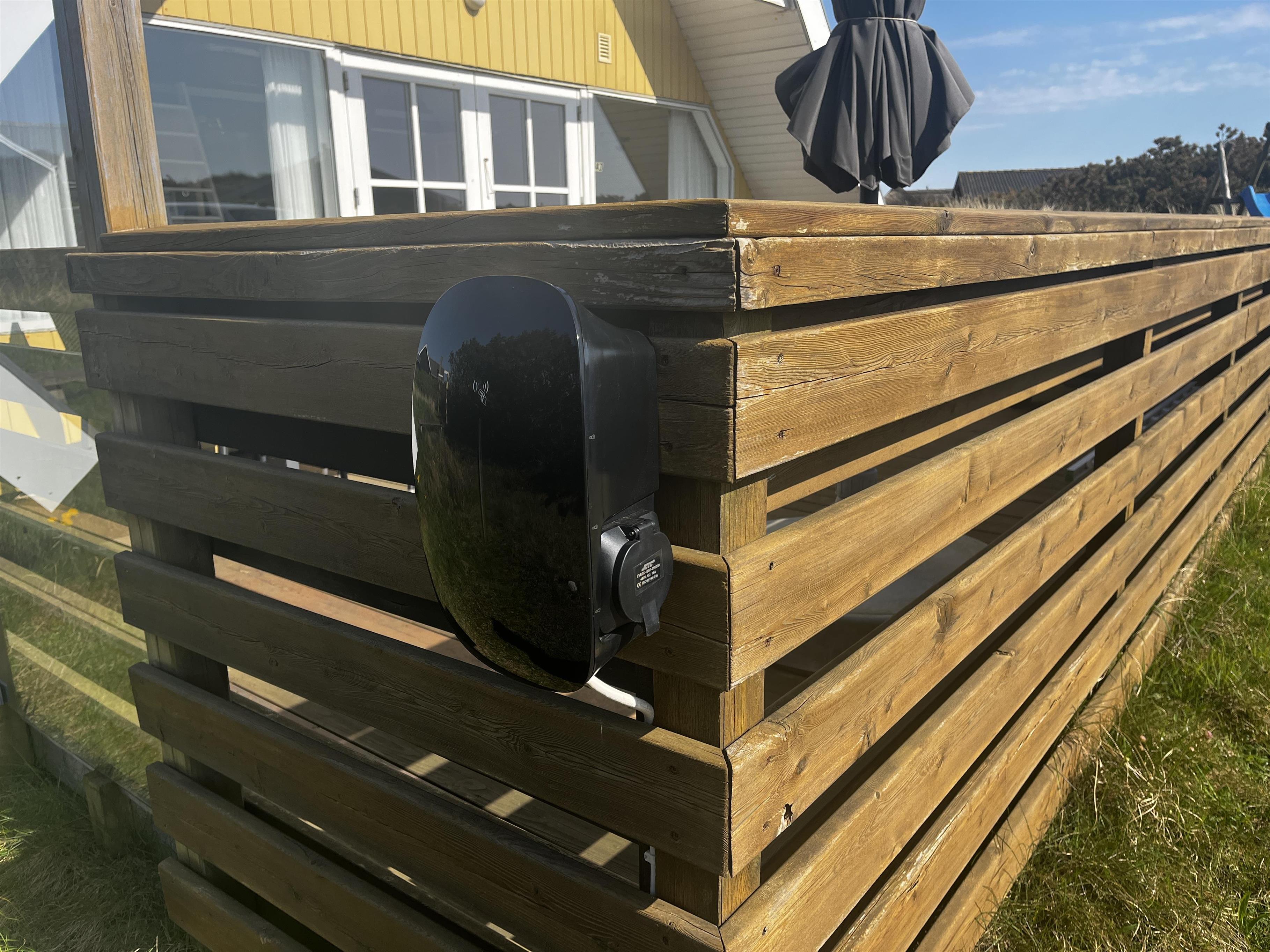 Feriehuset er udstyret med et 220 V - 6 Amp ladestik til elbil.