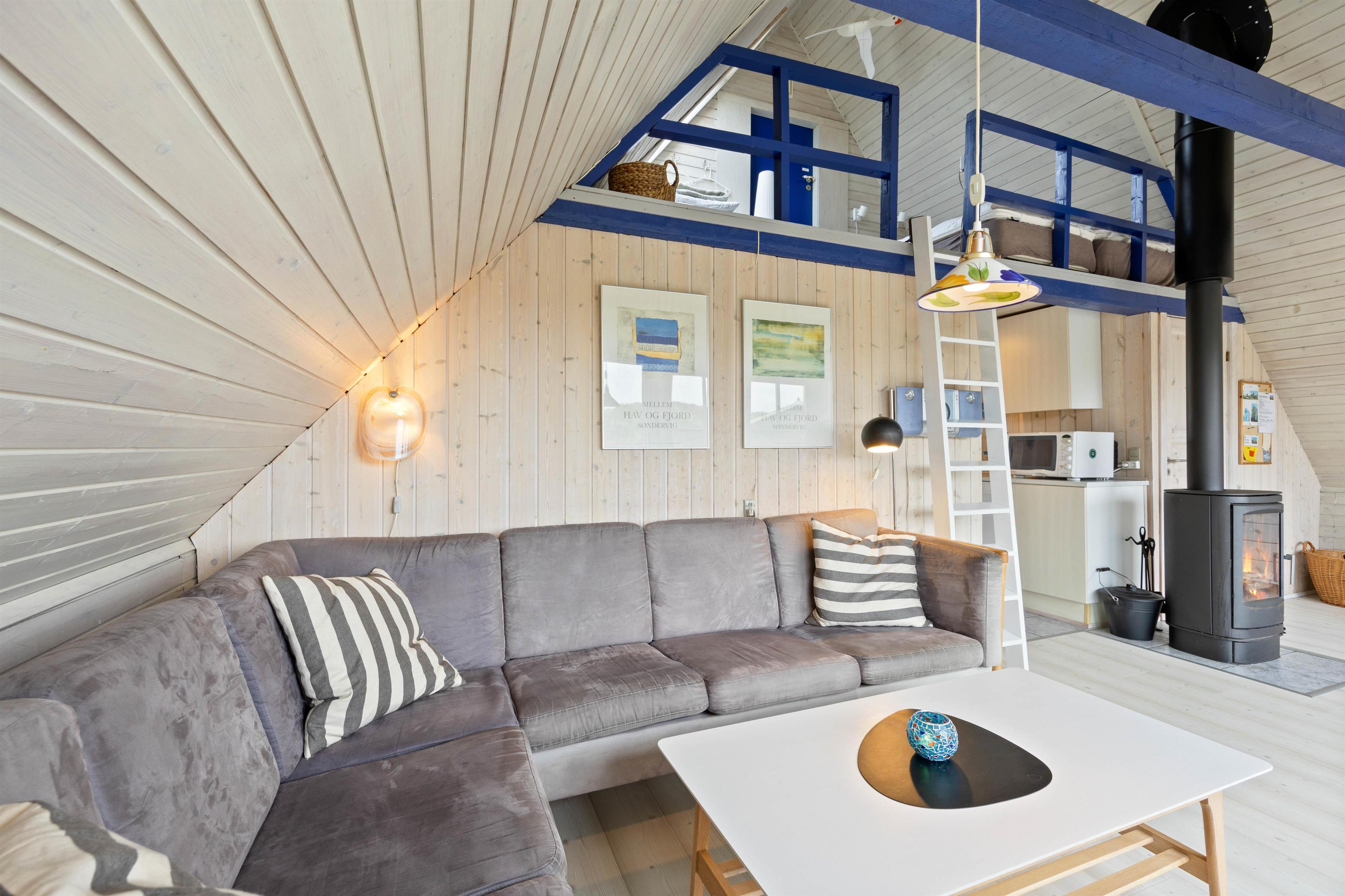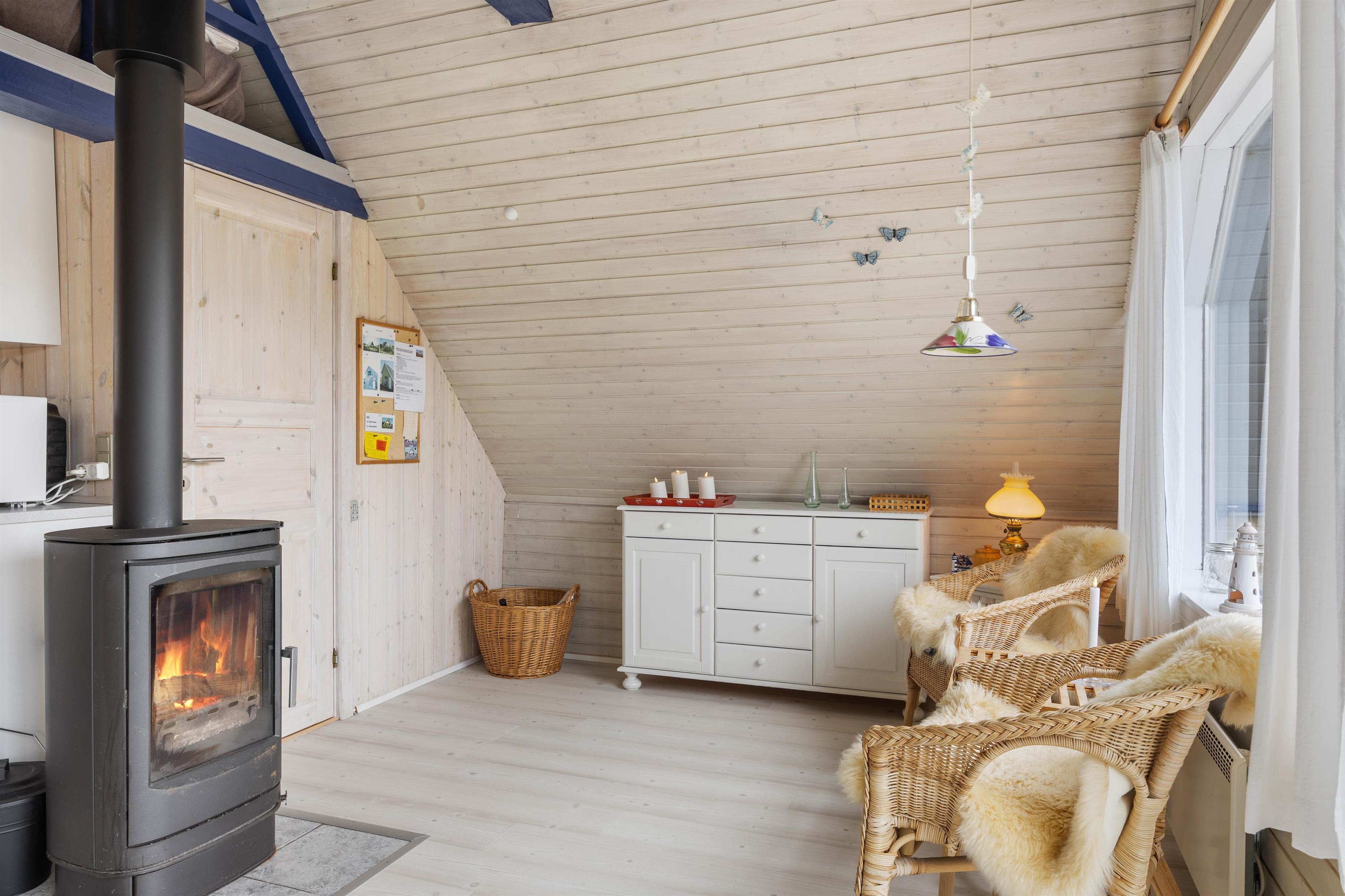 Det er ingen tvivl om, at I kan nyde jeres velfortjente afbræk fra hverdagen i de skønne rammer i sommerhuset i Houvig. Her oser af klassisk sommerhuscharme, hvilket blandt andet kan tilskrives de panelbeklædte vægge, loftet til kip og de synlige loftbjælker. Og hvis det ikke er nok, skal den knitrende brændeovn og de store vinduespartier nok sørge for at banke stemningsbarometeret yderligere op. Har i ikke gang i i brændeovnen, har i en energibesparende lugt-til-luft varmepumpe til jeres rådighed, som bidrager til et behageligt indeklima hele året rundt.